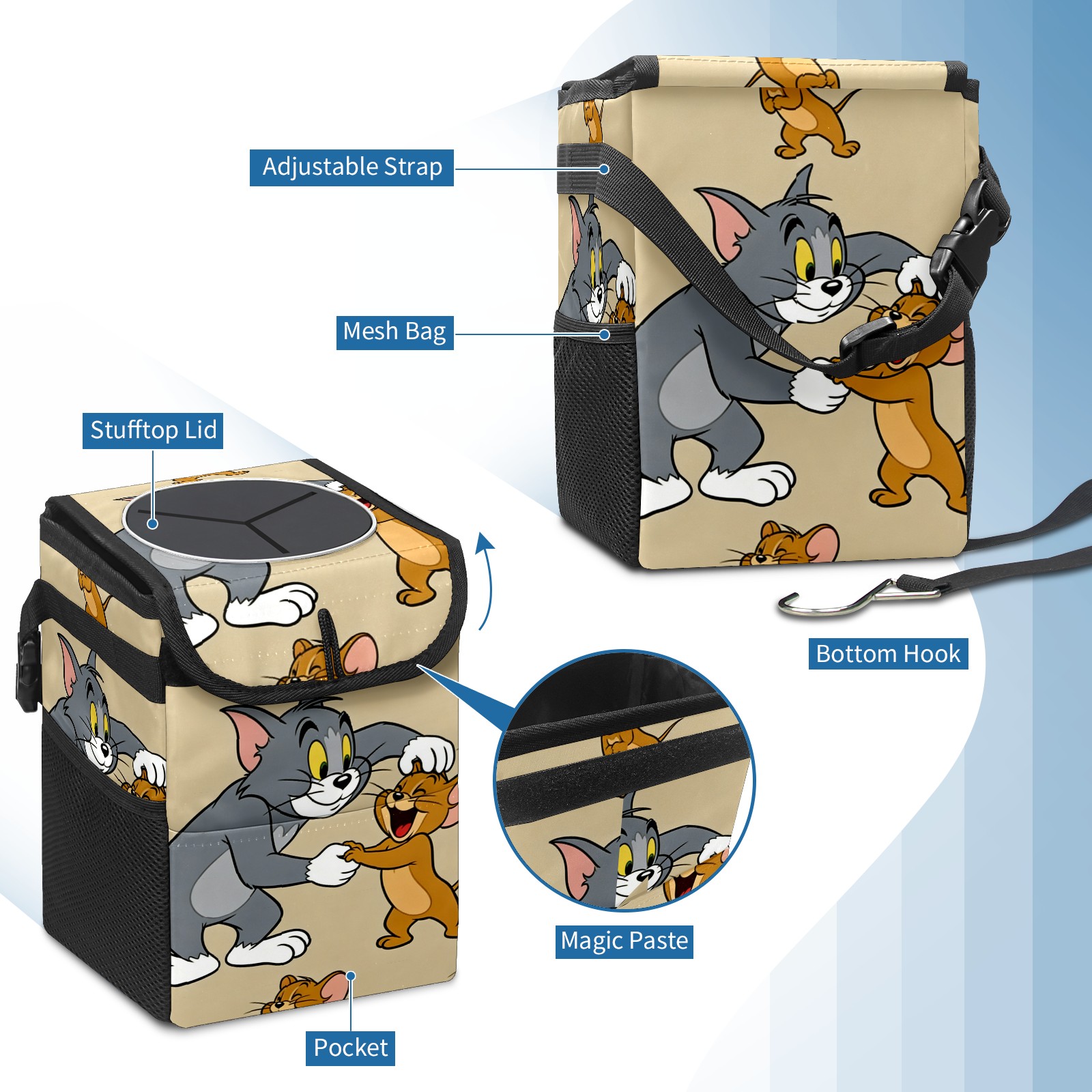 Car Trash Can with Lid, Small Portable Hanging Automotive Garbage Bin for Vehicles, Leakproof Waste Bag Container for SUV Truck Van Interior Auto Travel Road Trips(创作经典IP图 (97))