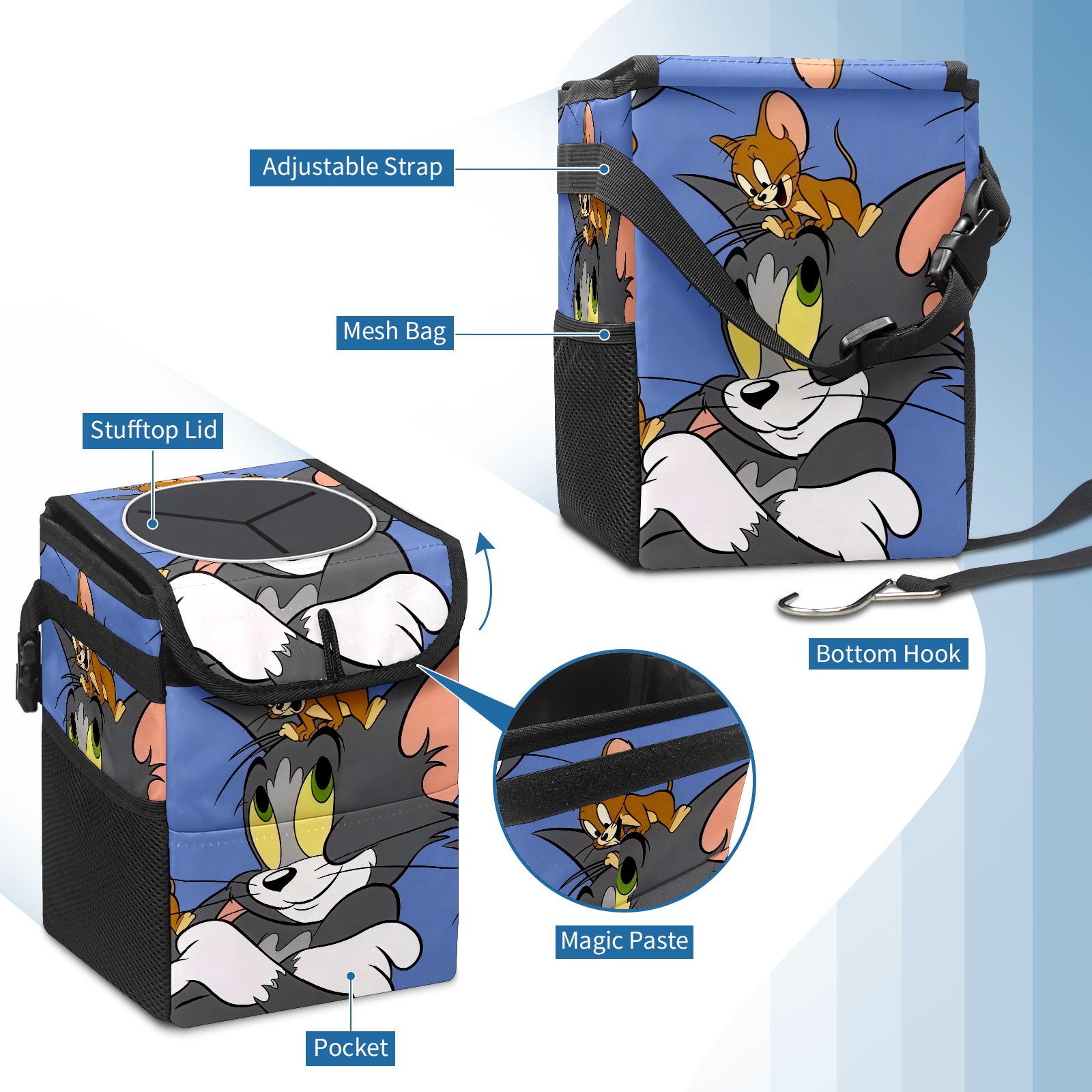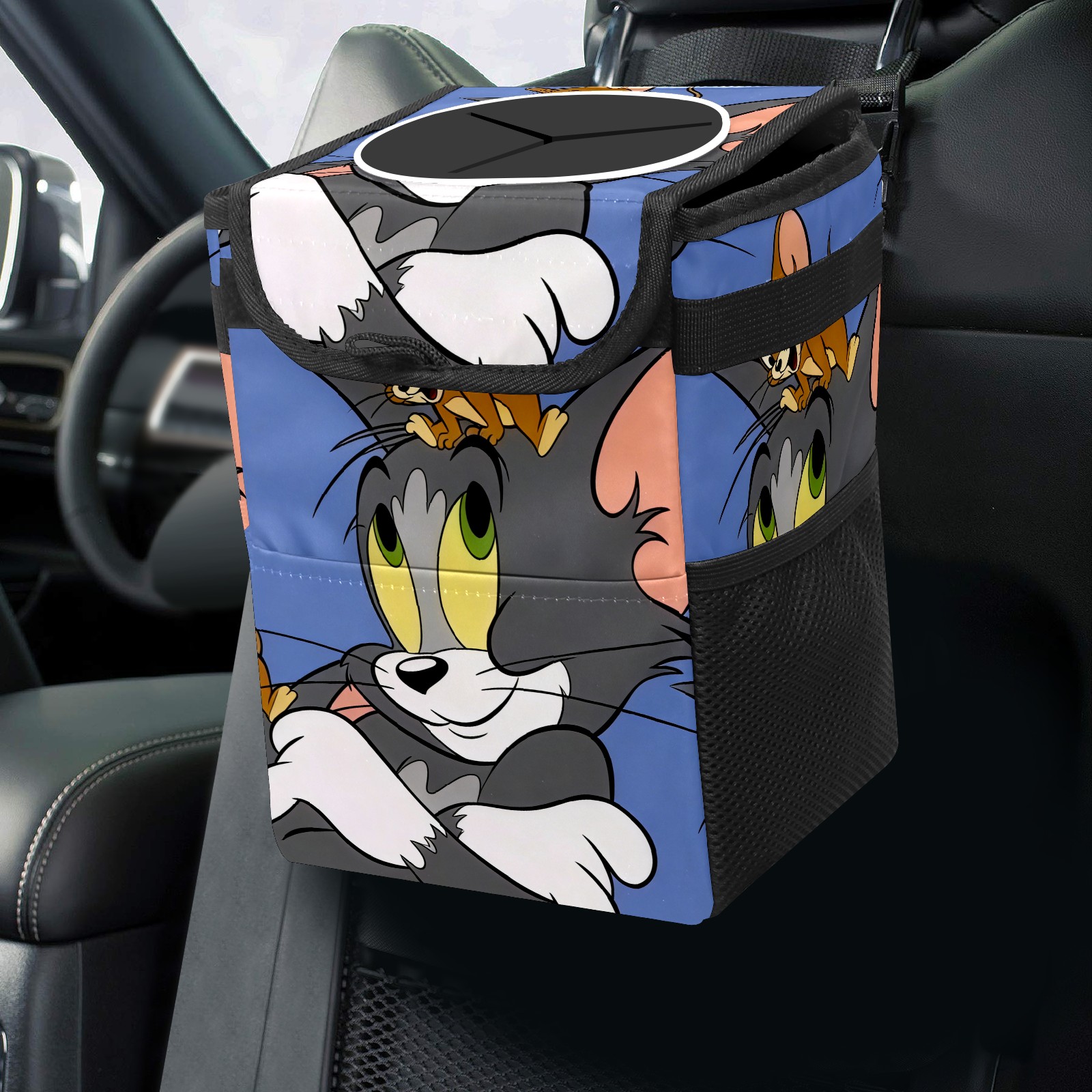 Car Trash Can with Lid, Small Portable Hanging Automotive Garbage Bin for Vehicles, Leakproof Waste Bag Container for SUV Truck Van Interior Auto Travel Road Trips(创作经典IP图 (94))