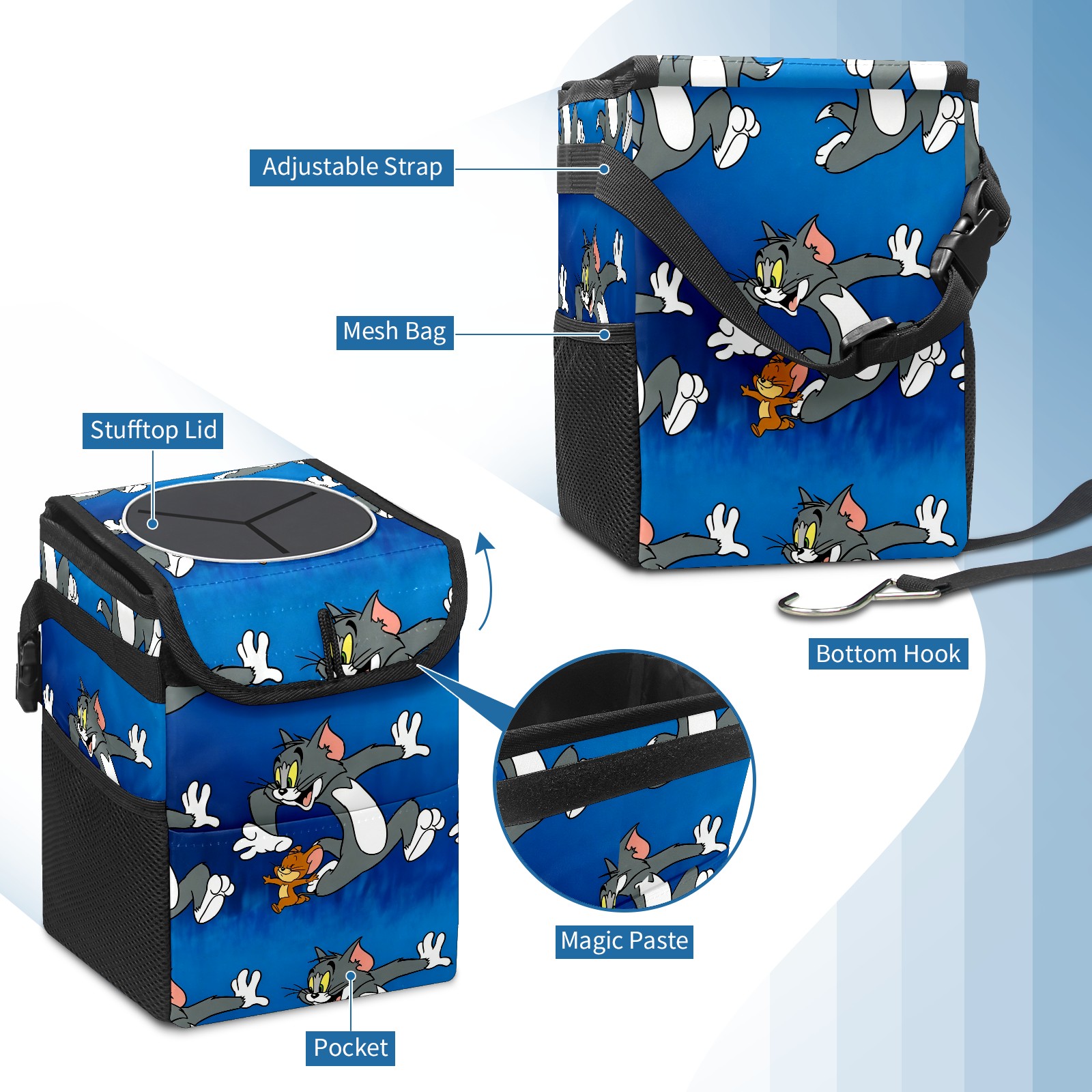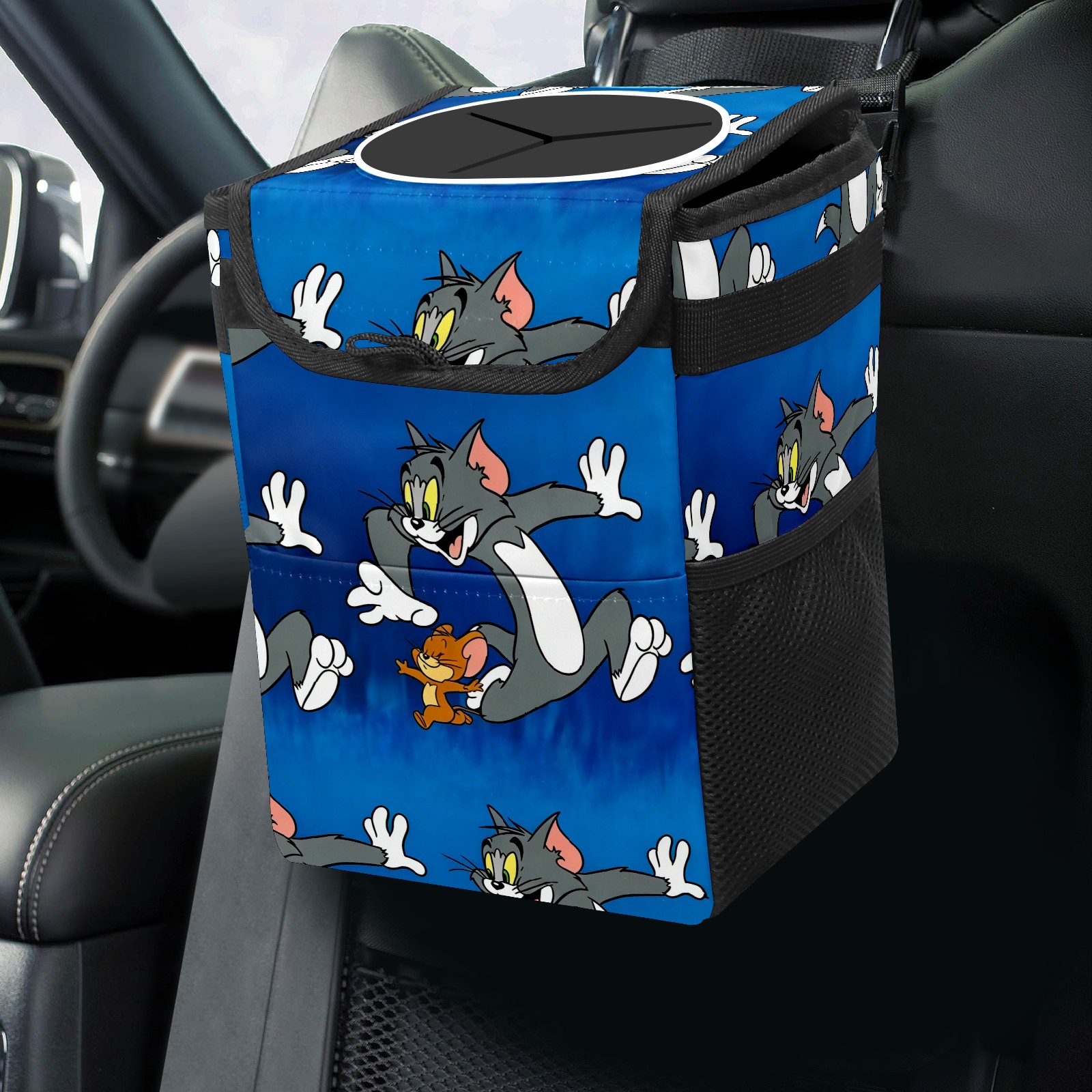 Car Trash Can with Lid, Small Portable Hanging Automotive Garbage Bin for Vehicles, Leakproof Waste Bag Container for SUV Truck Van Interior Auto Travel Road Trips(创作经典IP图 (93))