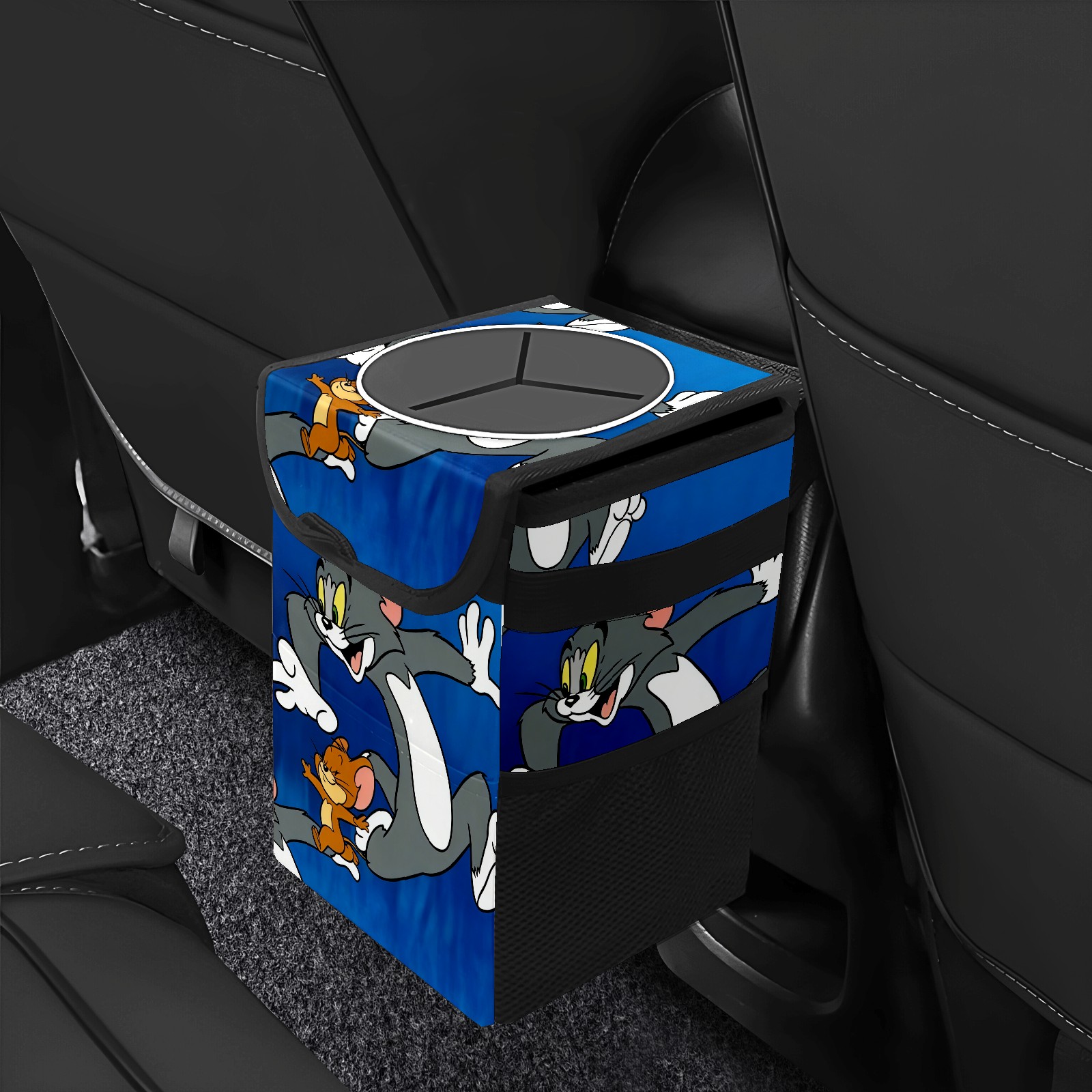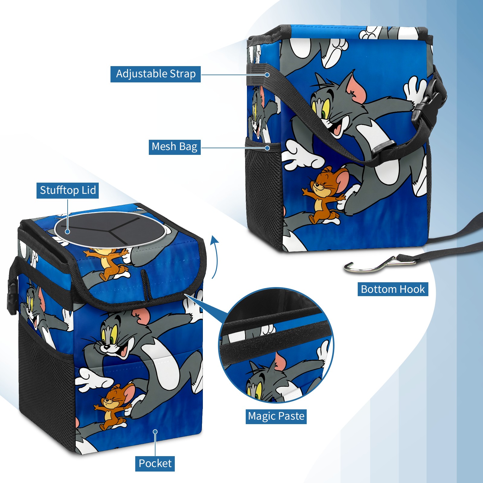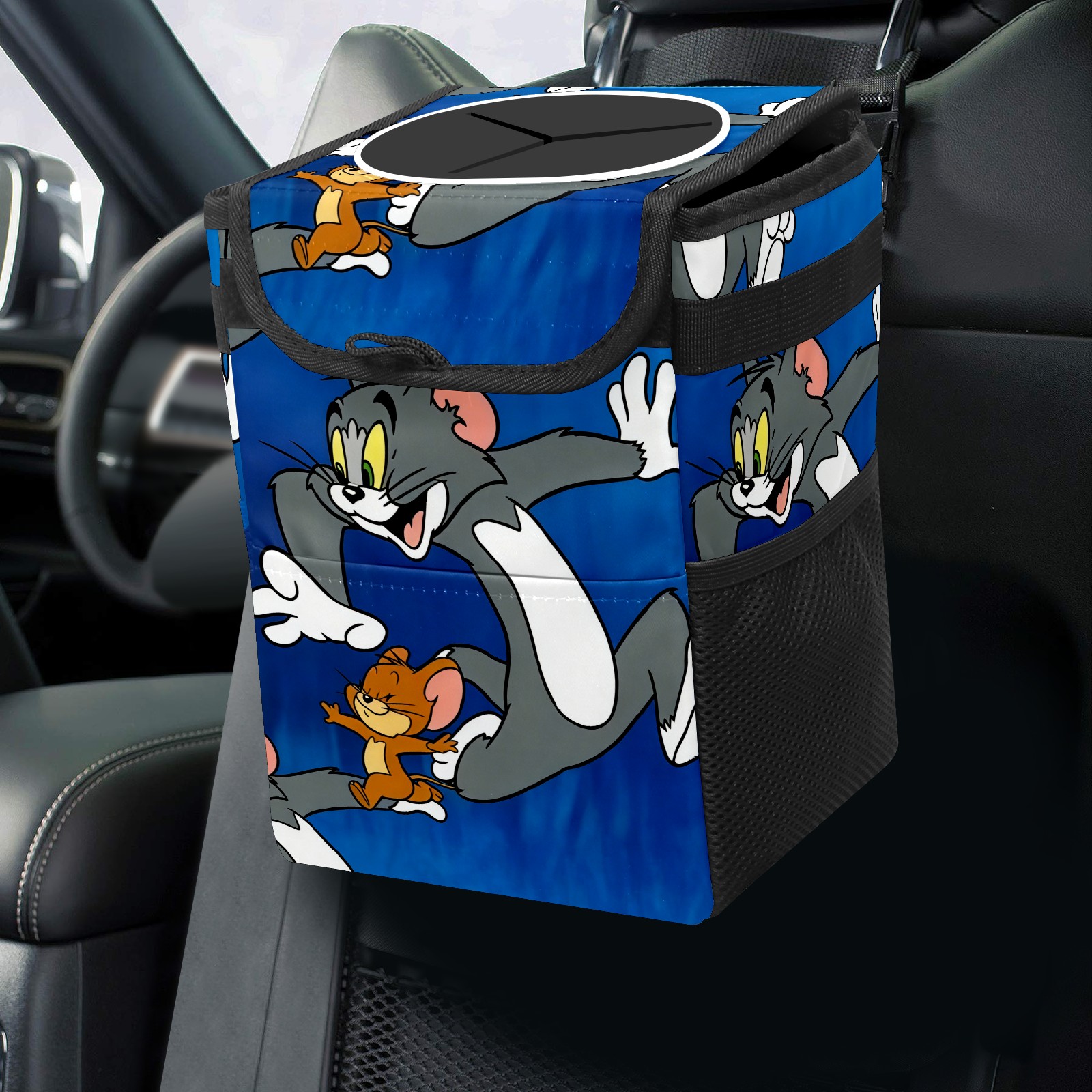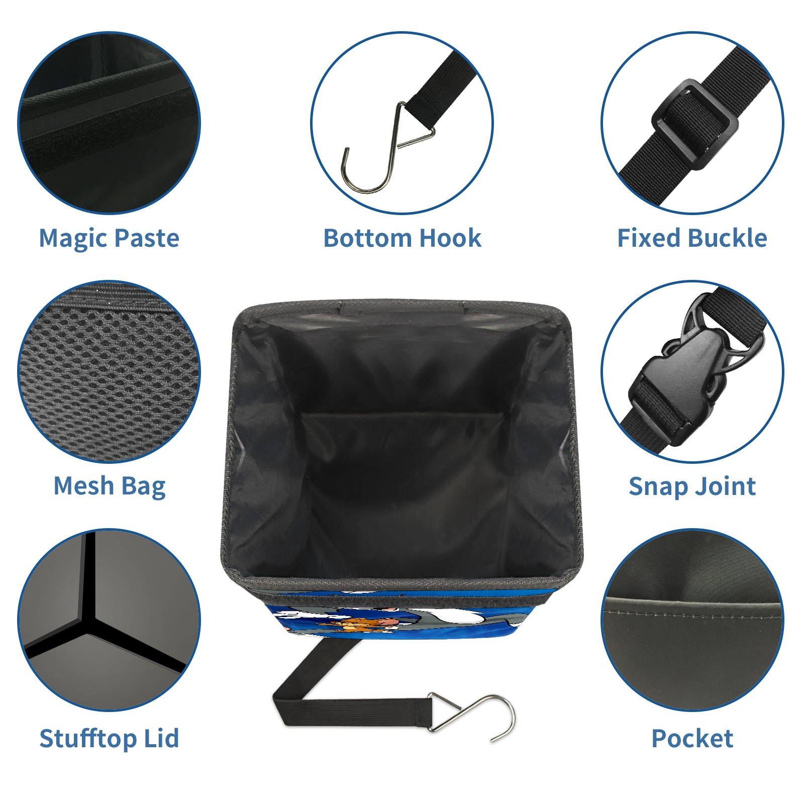 Car Trash Can with Lid, Small Portable Hanging Automotive Garbage Bin for Vehicles, Leakproof Waste Bag Container for SUV Truck Van Interior Auto Travel Road Trips(创作经典IP图 (91))