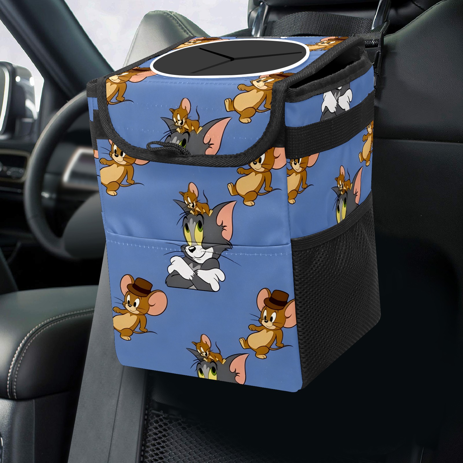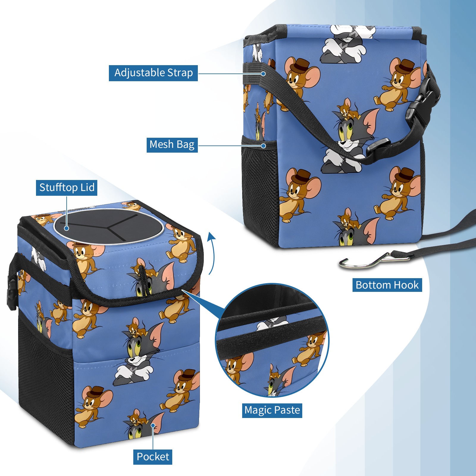Car Trash Can with Lid, Small Portable Hanging Automotive Garbage Bin for Vehicles, Leakproof Waste Bag Container for SUV Truck Van Interior Auto Travel Road Trips(创作经典IP图 (66))