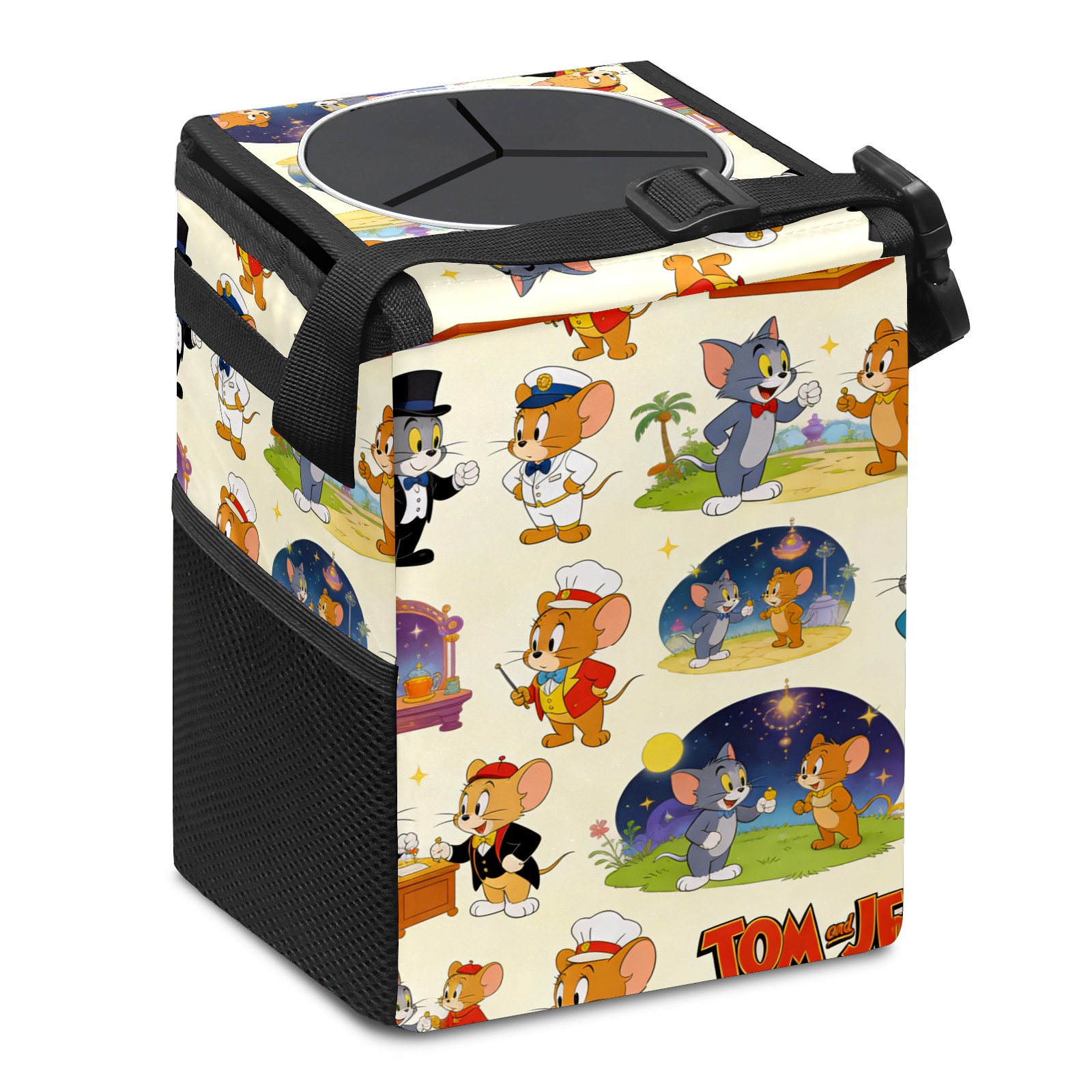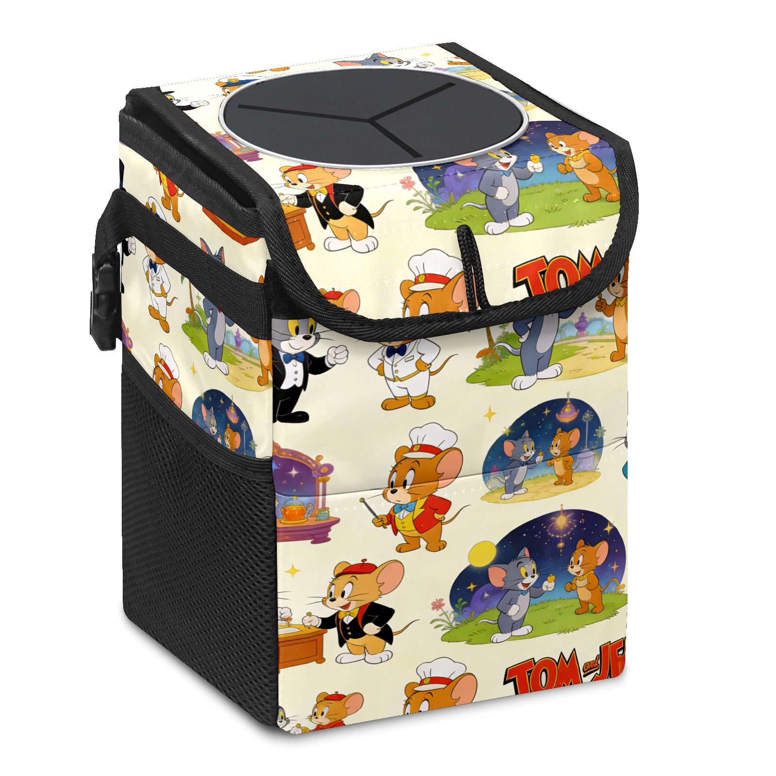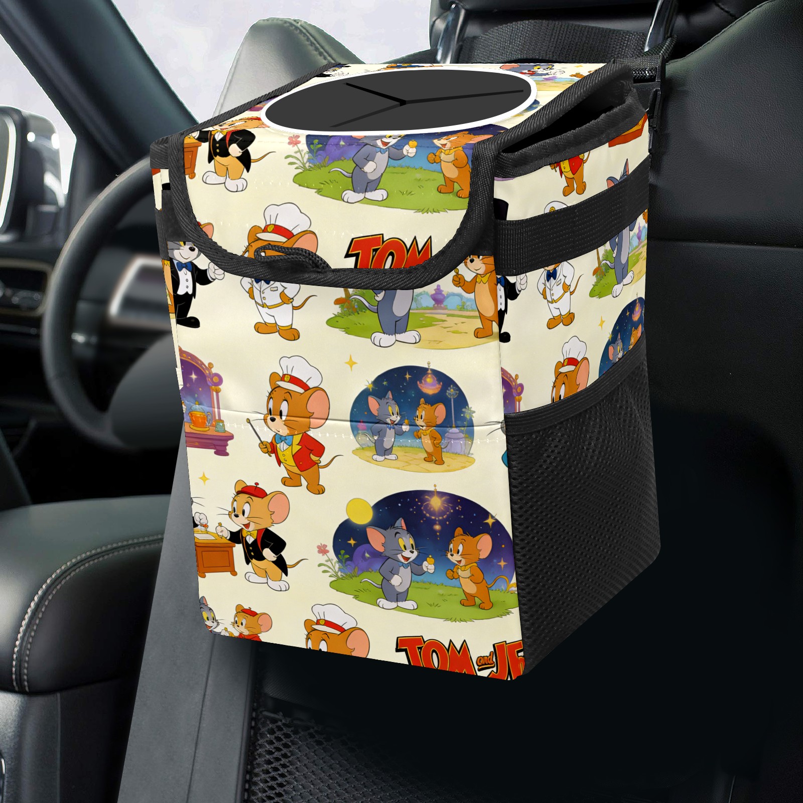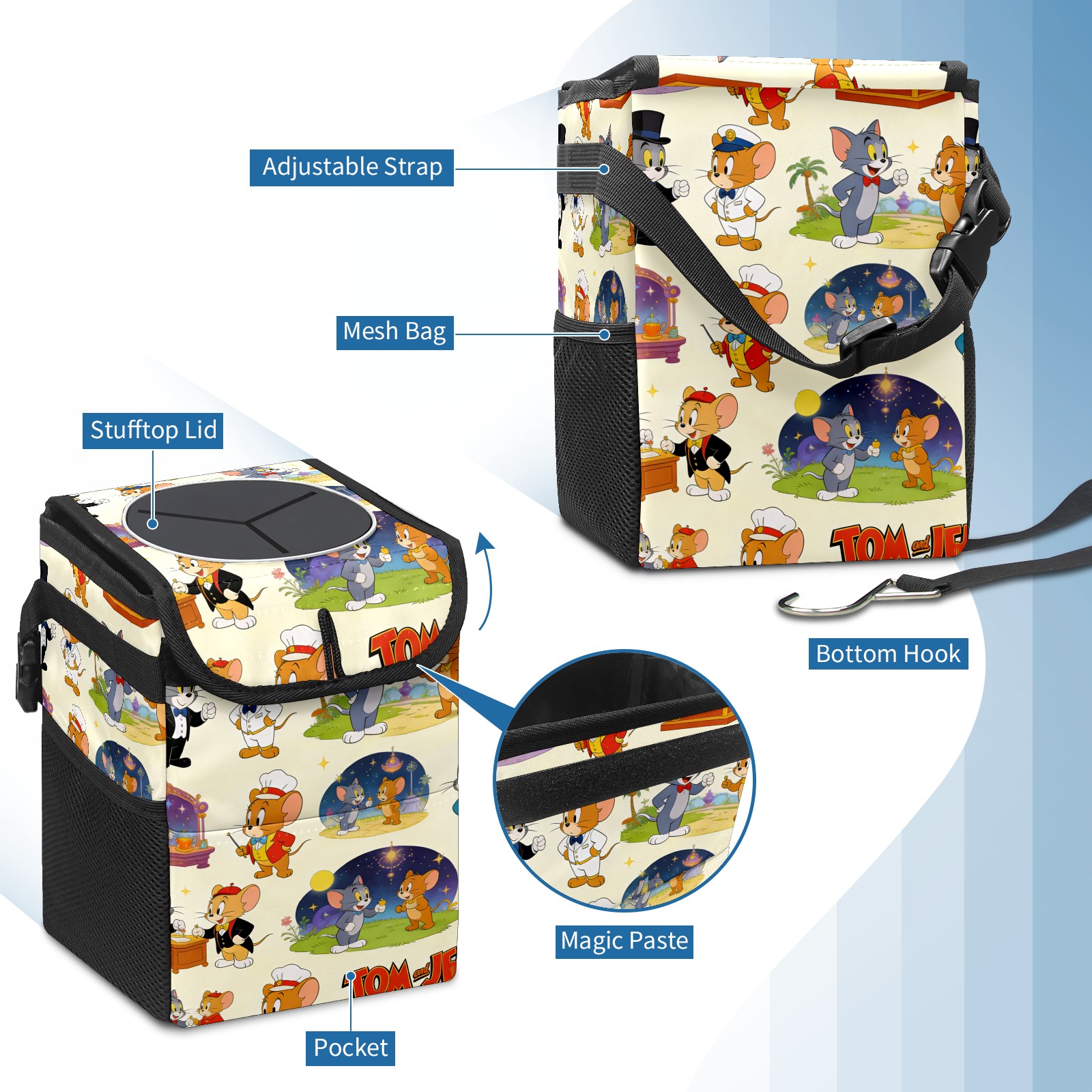 Car Trash Can with Lid, Small Portable Hanging Automotive Garbage Bin for Vehicles, Leakproof Waste Bag Container for SUV Truck Van Interior Auto Travel Road Trips(创作经典IP图 (69))