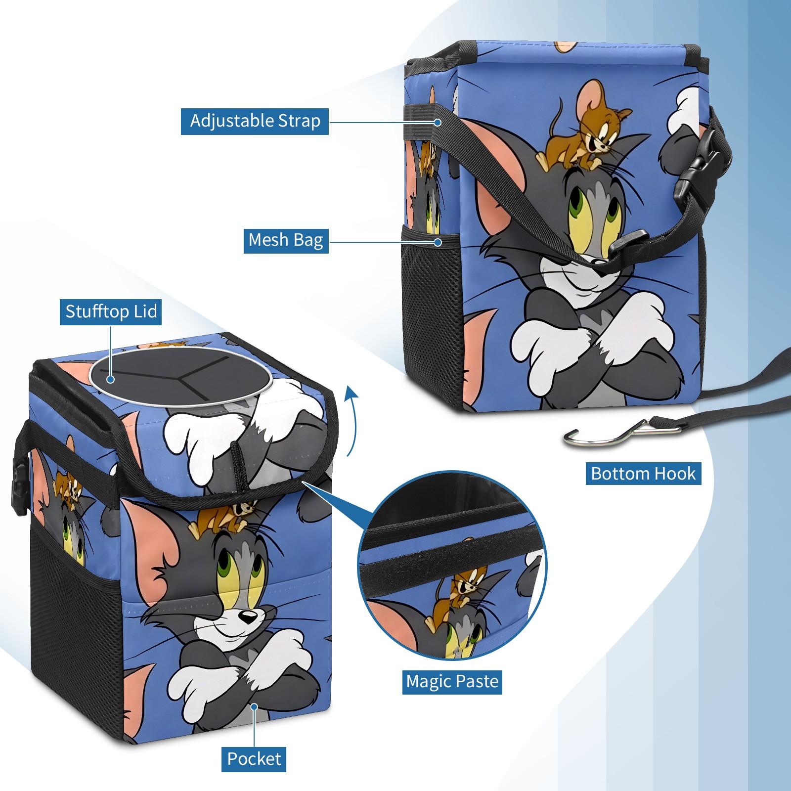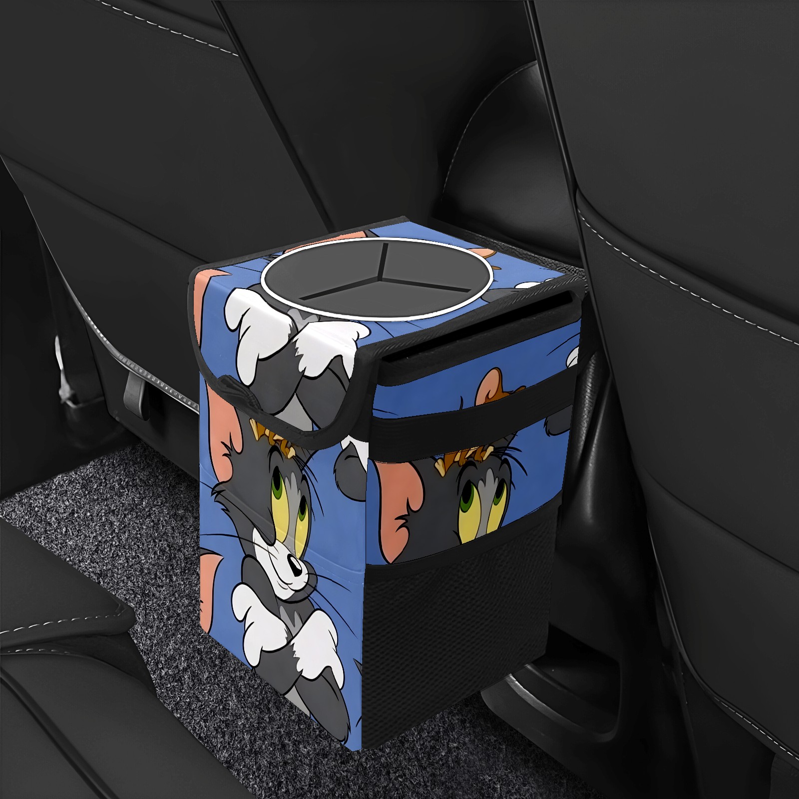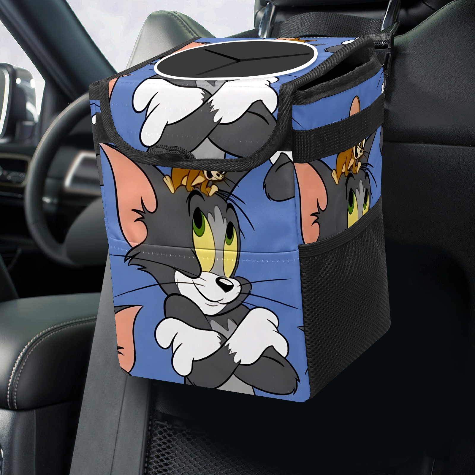 Car Trash Can with Lid, Small Portable Hanging Automotive Garbage Bin for Vehicles, Leakproof Waste Bag Container for SUV Truck Van Interior Auto Travel Road Trips(创作经典IP图 (77))