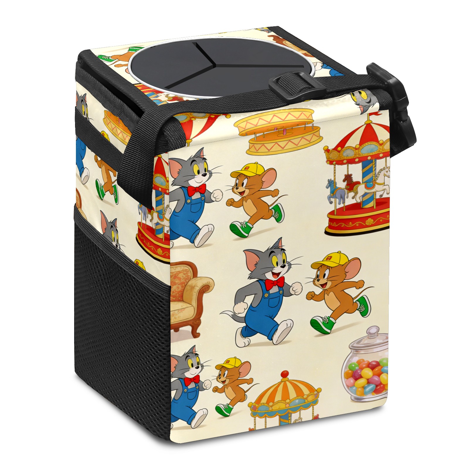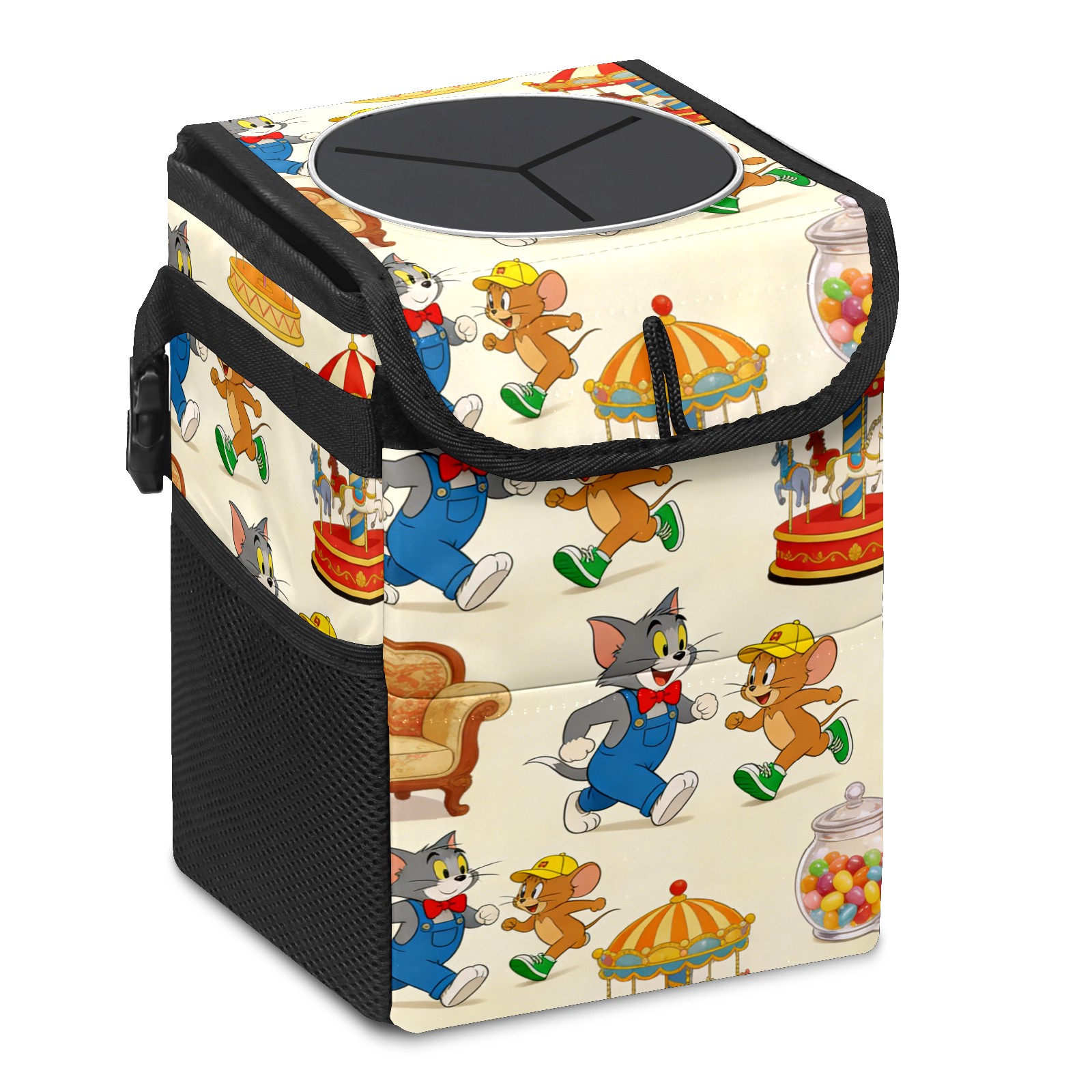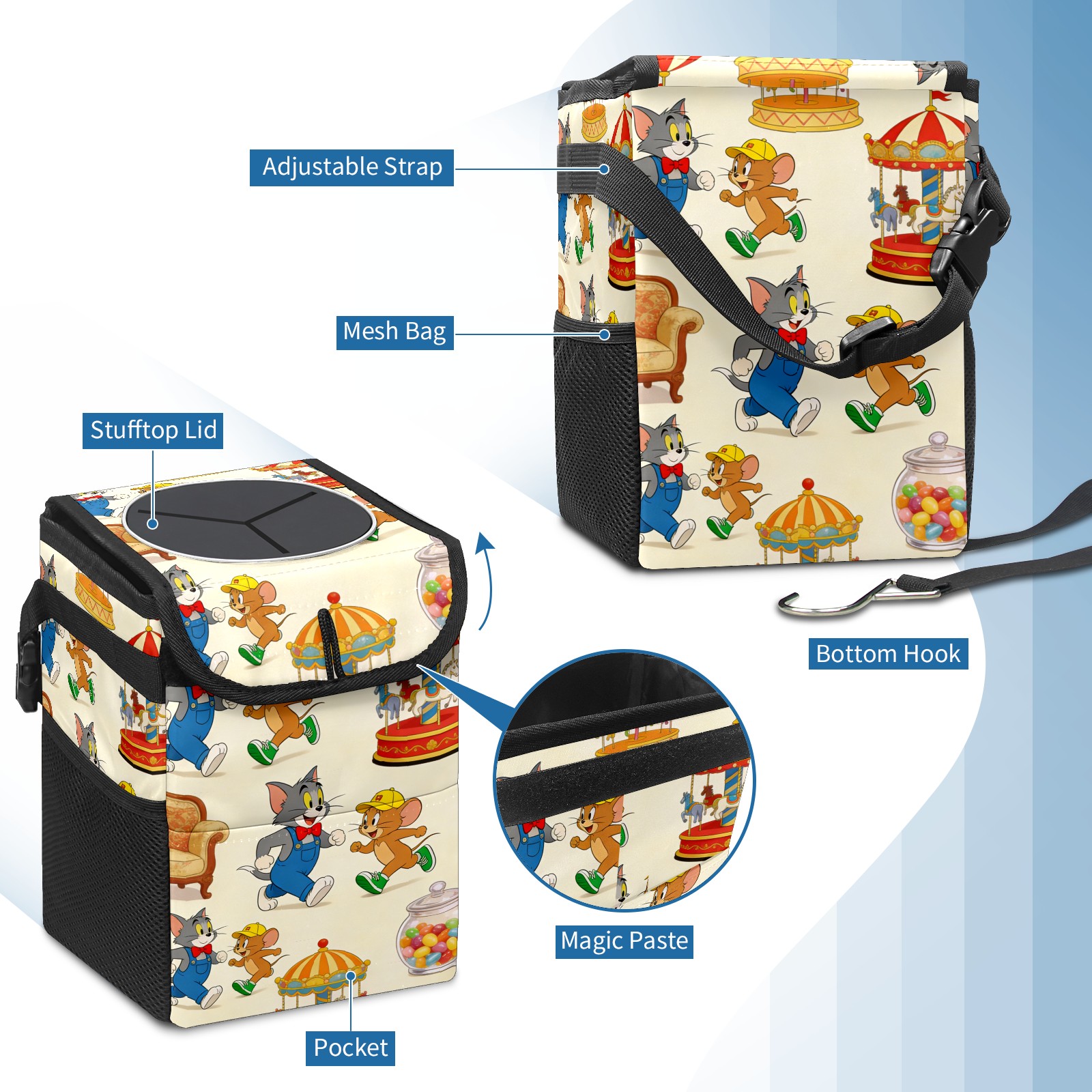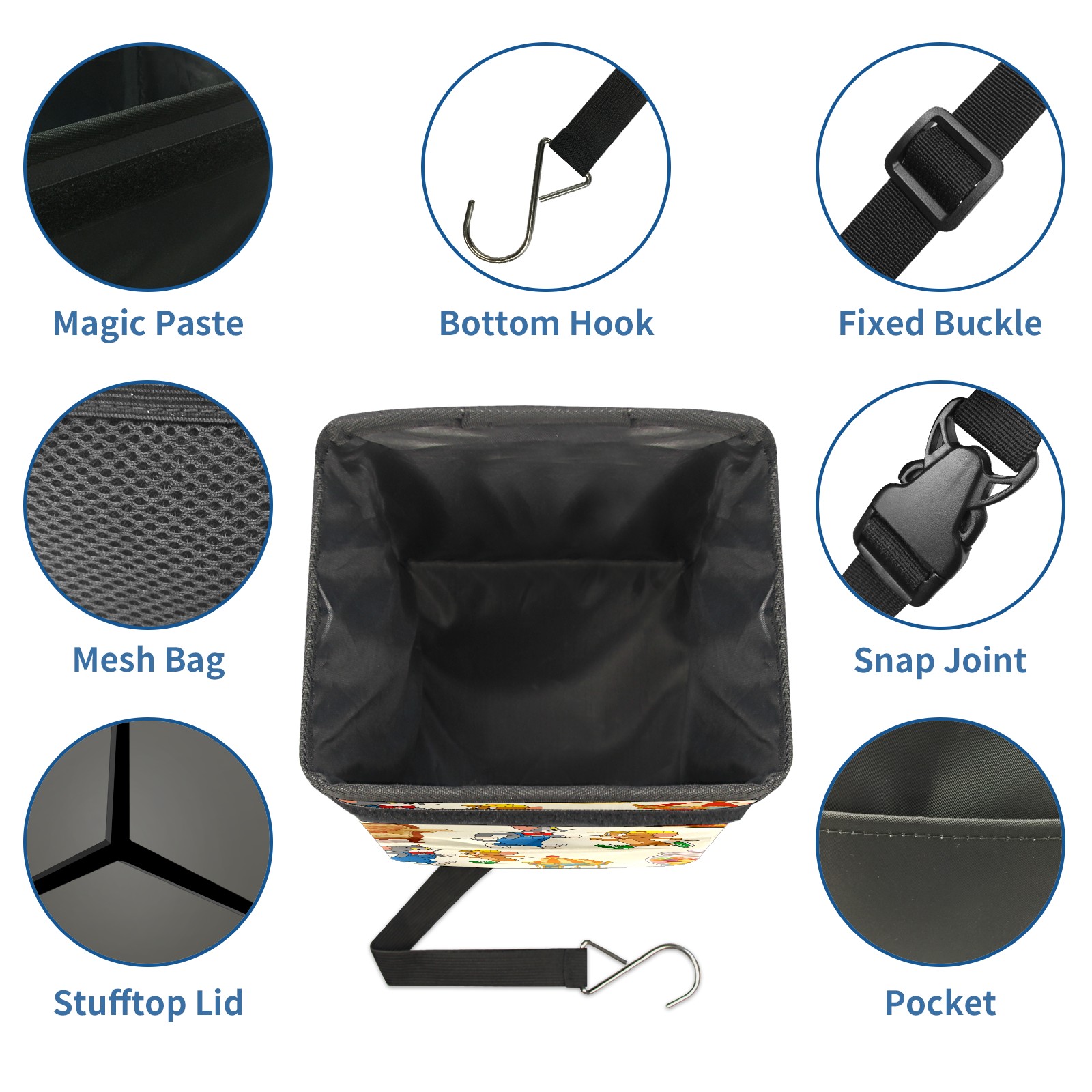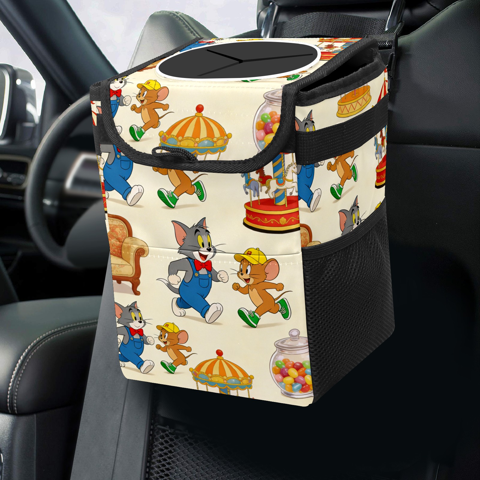 Car Trash Can with Lid, Small Portable Hanging Automotive Garbage Bin for Vehicles, Leakproof Waste Bag Container for SUV Truck Van Interior Auto Travel Road Trips(创作经典IP图 (64))