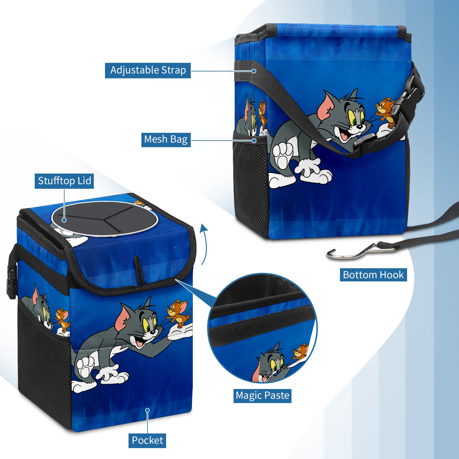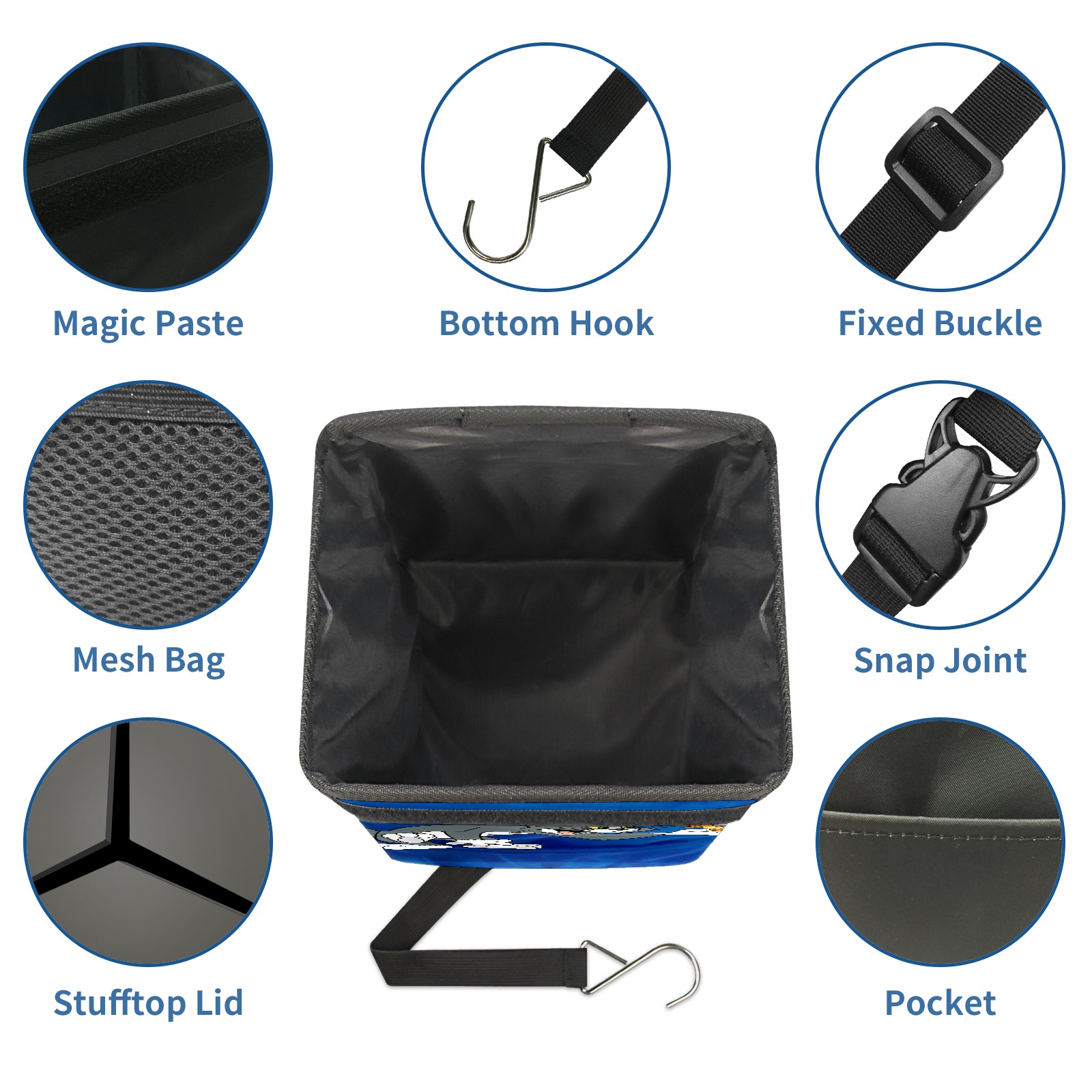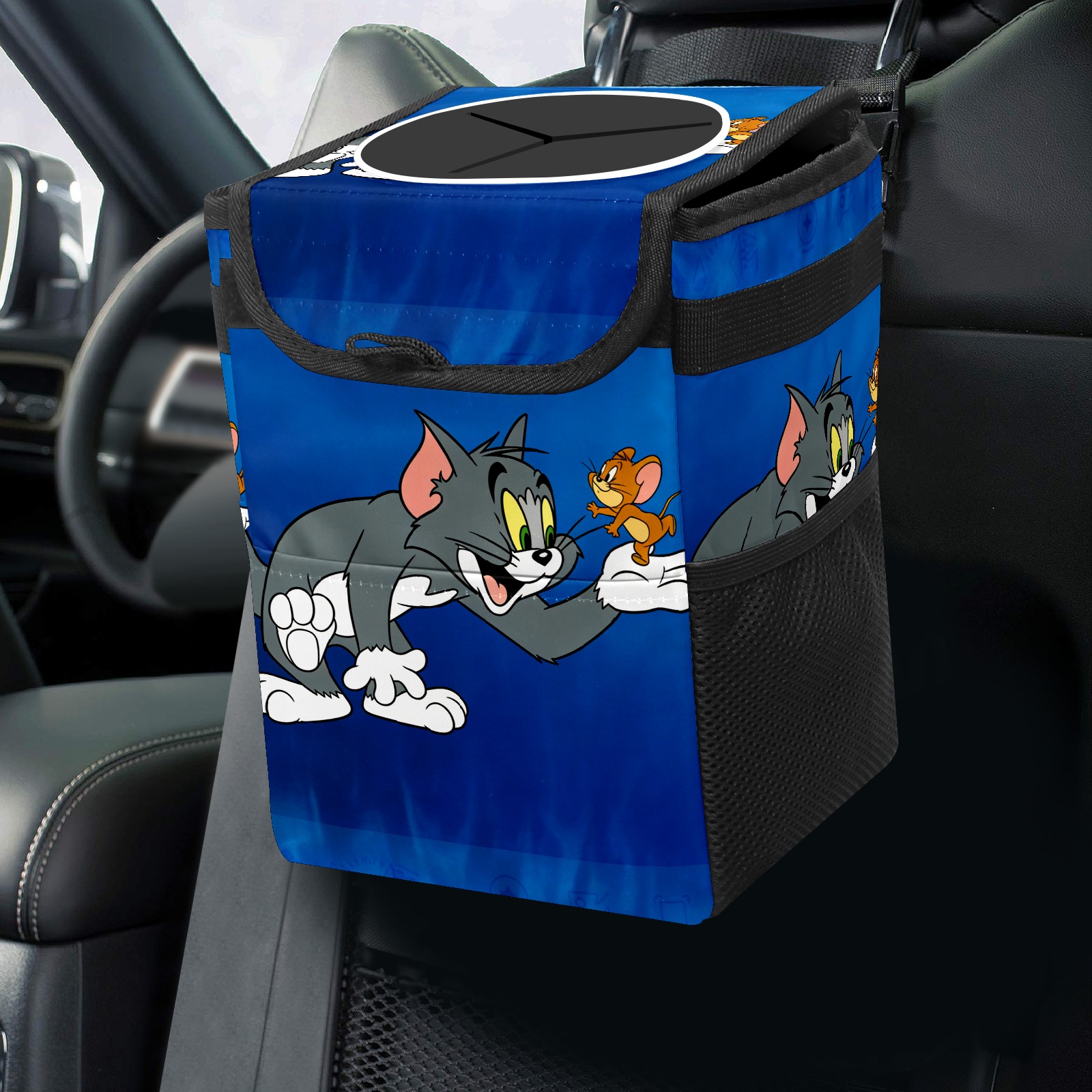 Car Trash Can with Lid, Small Portable Hanging Automotive Garbage Bin for Vehicles, Leakproof Waste Bag Container for SUV Truck Van Interior Auto Travel Road Trips(创作经典IP图 (90))