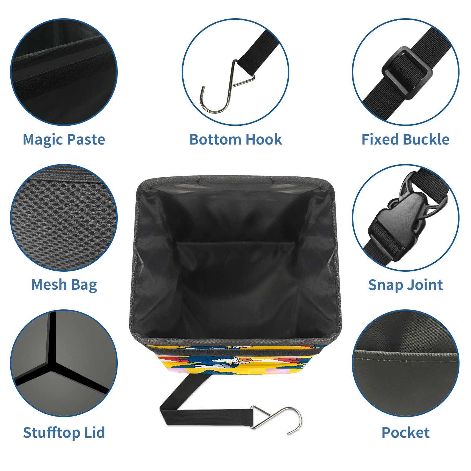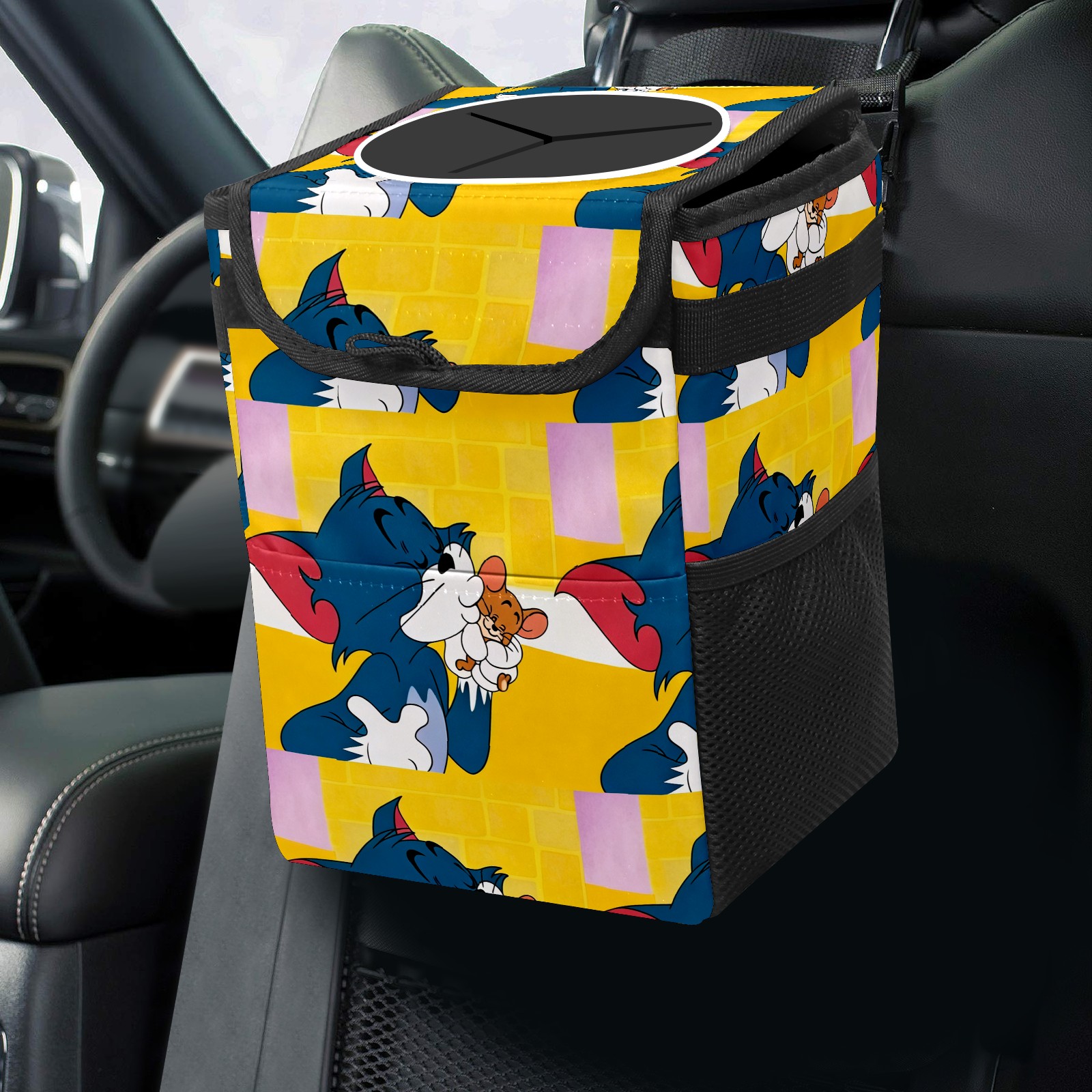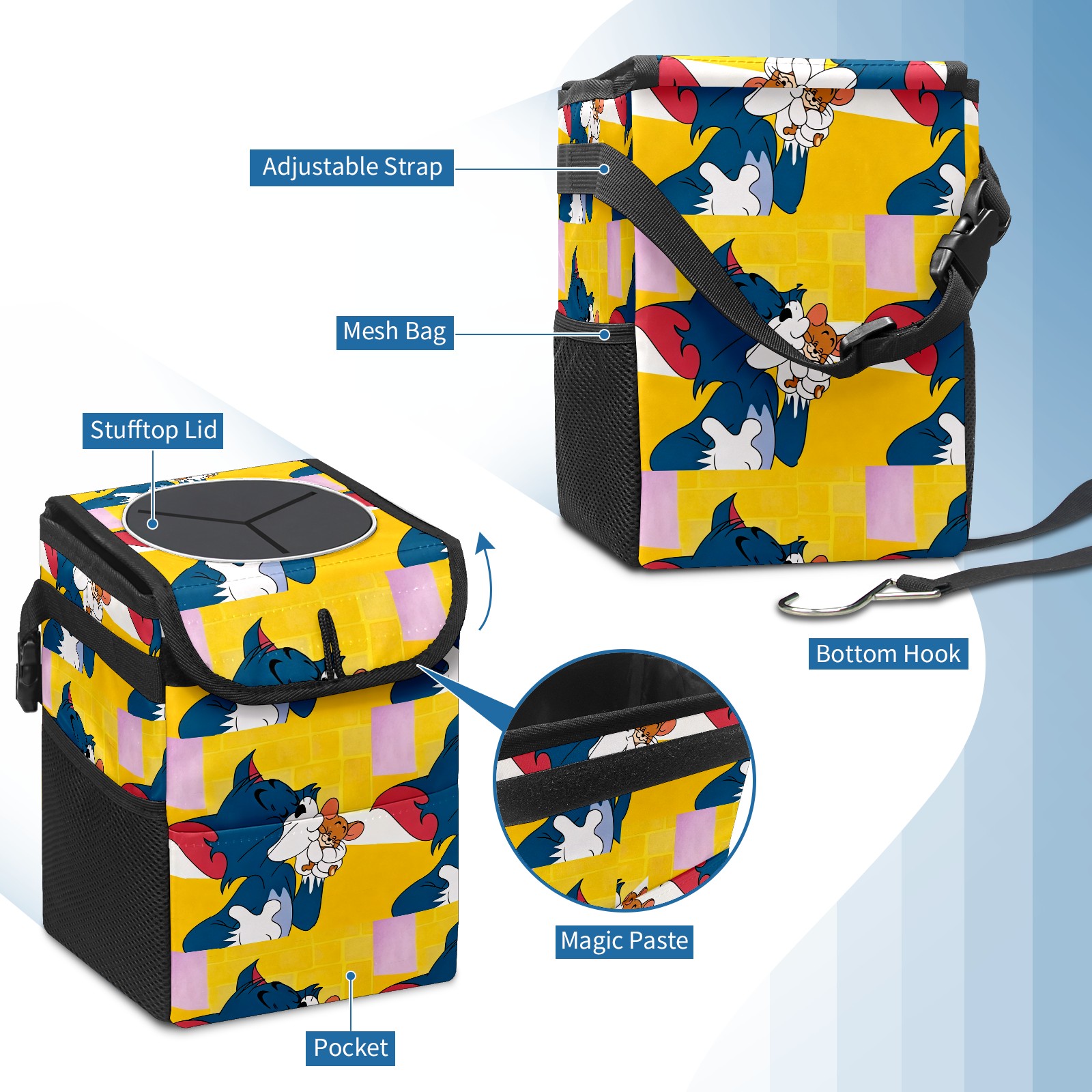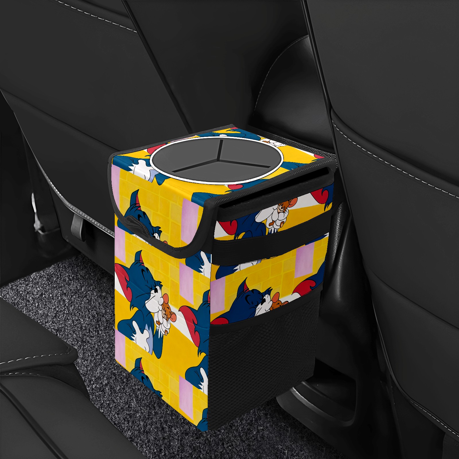 Car Trash Can with Lid, Small Portable Hanging Automotive Garbage Bin for Vehicles, Leakproof Waste Bag Container for SUV Truck Van Interior Auto Travel Road Trips(创作经典IP图 (84))
