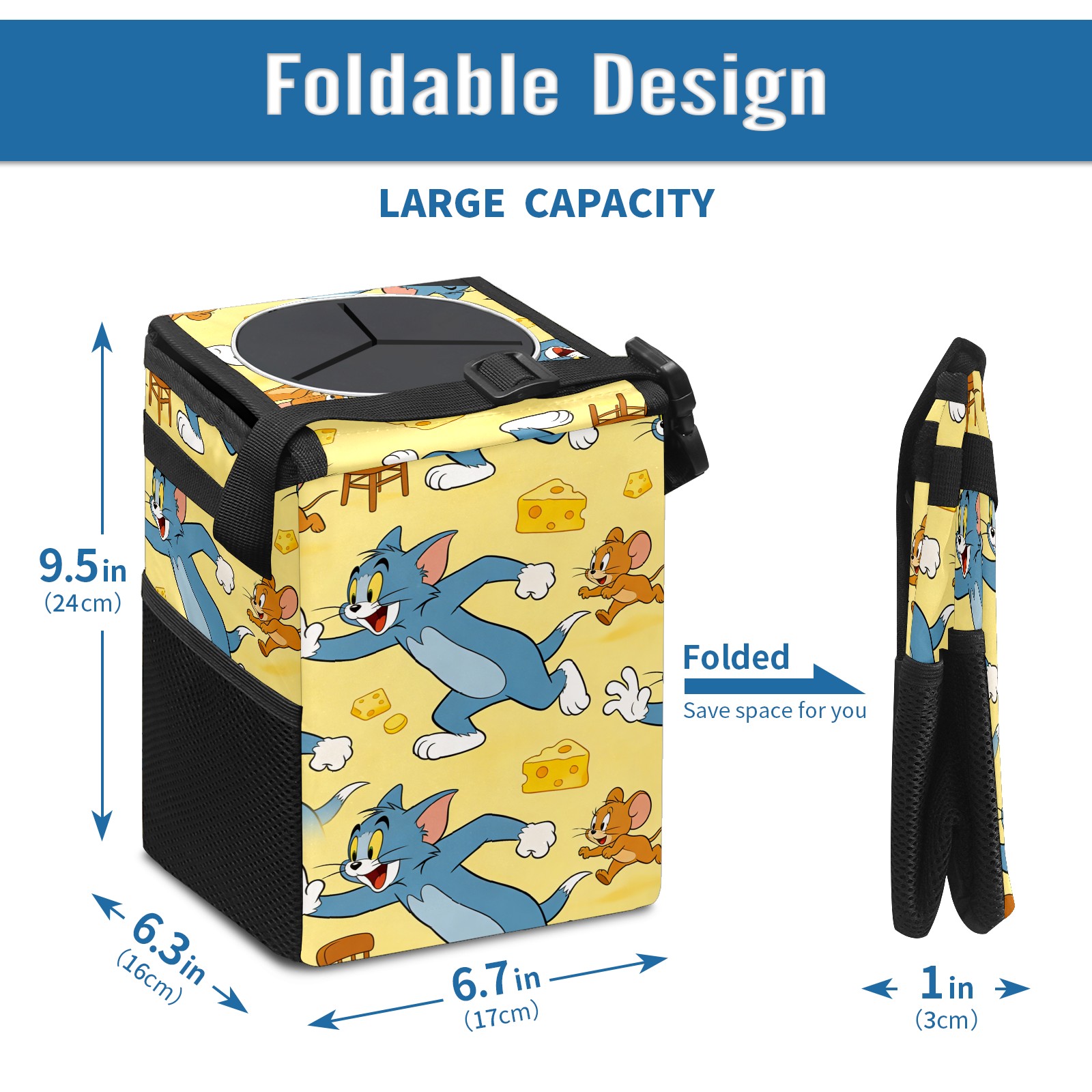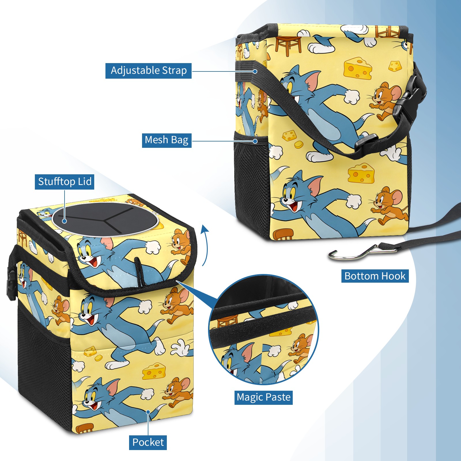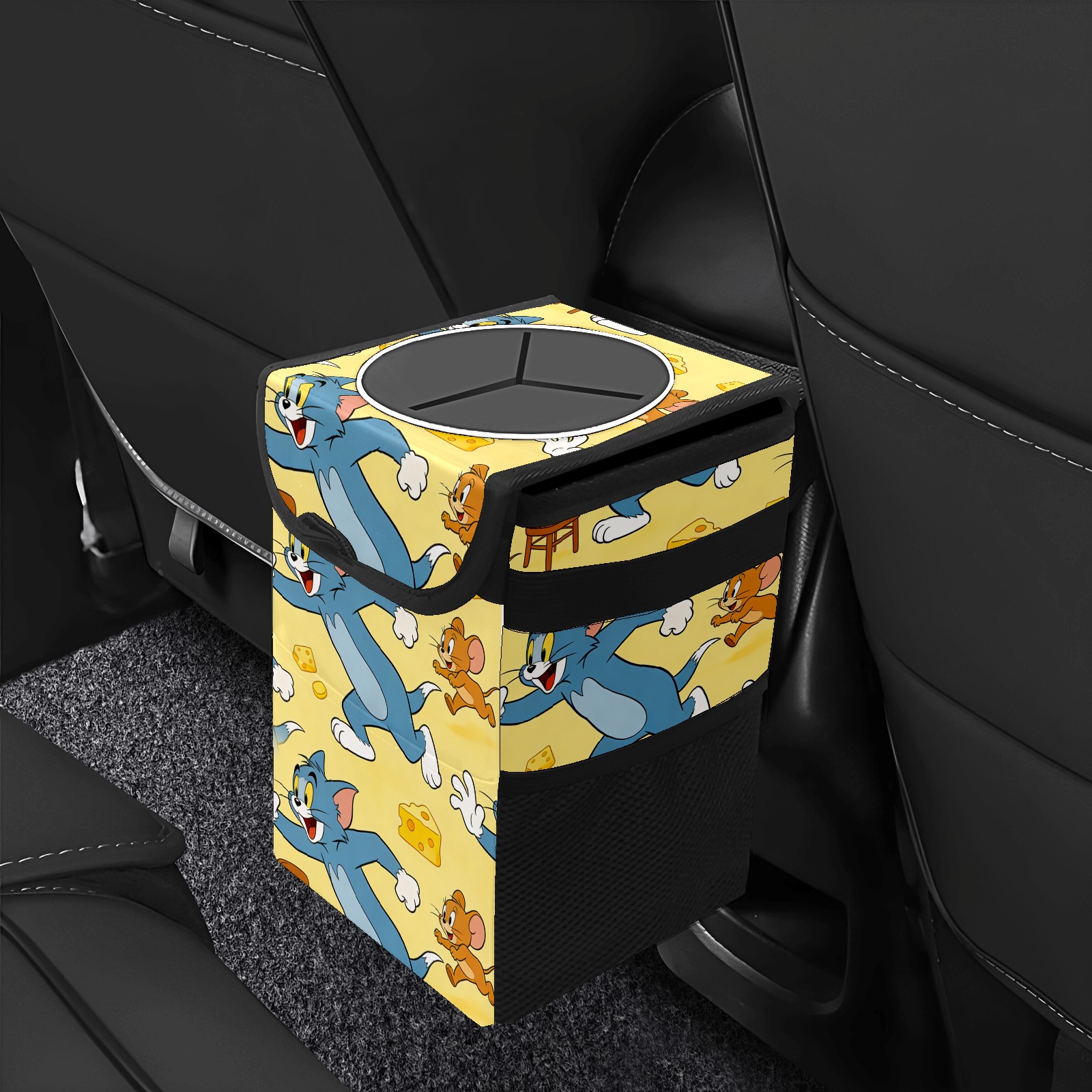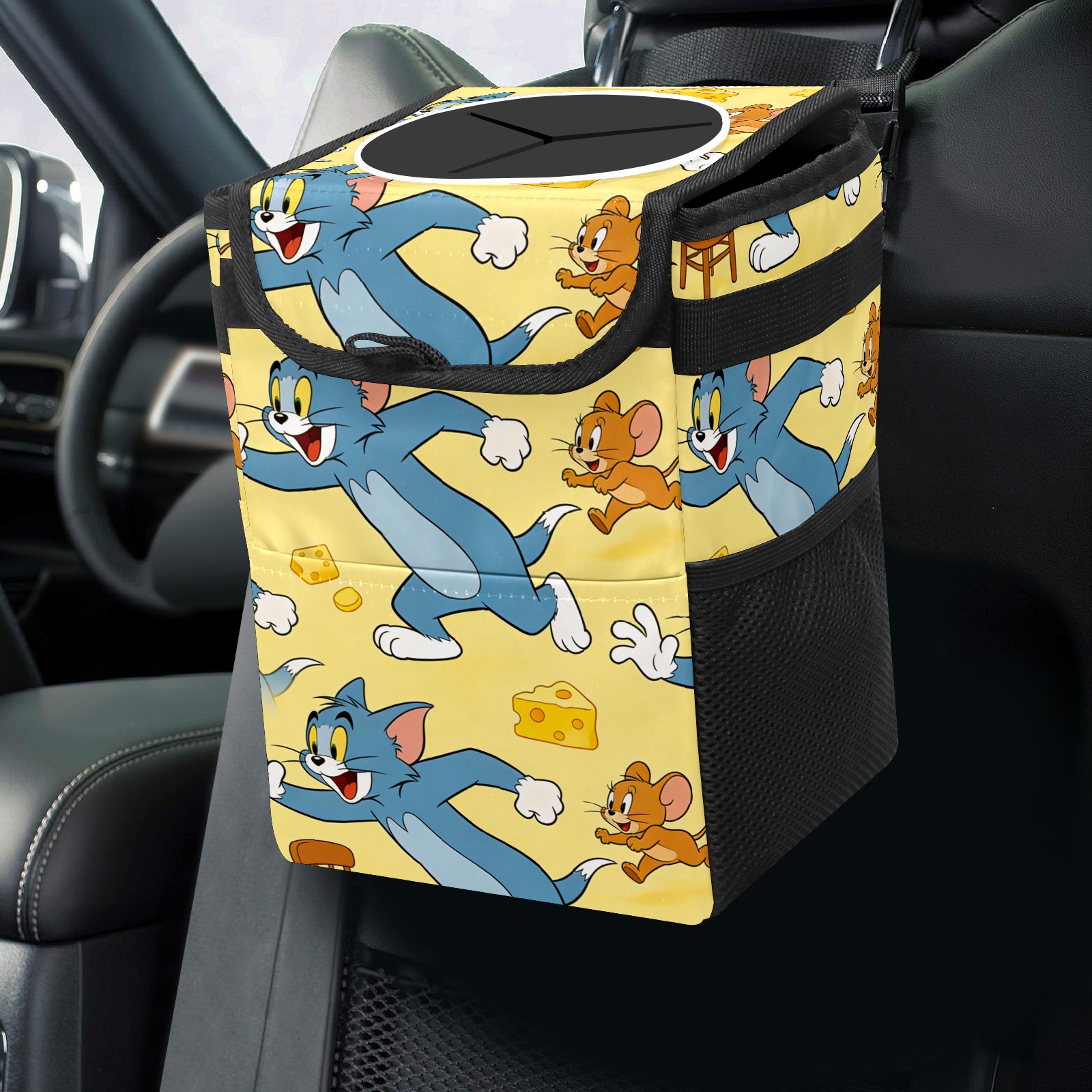 Car Trash Can with Lid, Small Portable Hanging Automotive Garbage Bin for Vehicles, Leakproof Waste Bag Container for SUV Truck Van Interior Auto Travel Road Trips(创作经典IP图 (53))