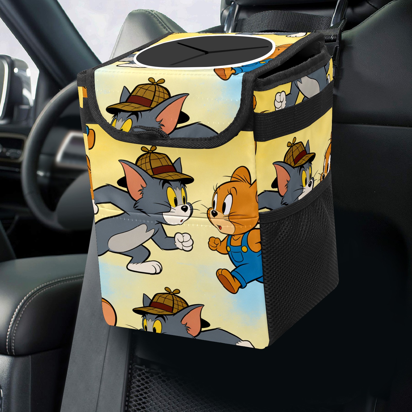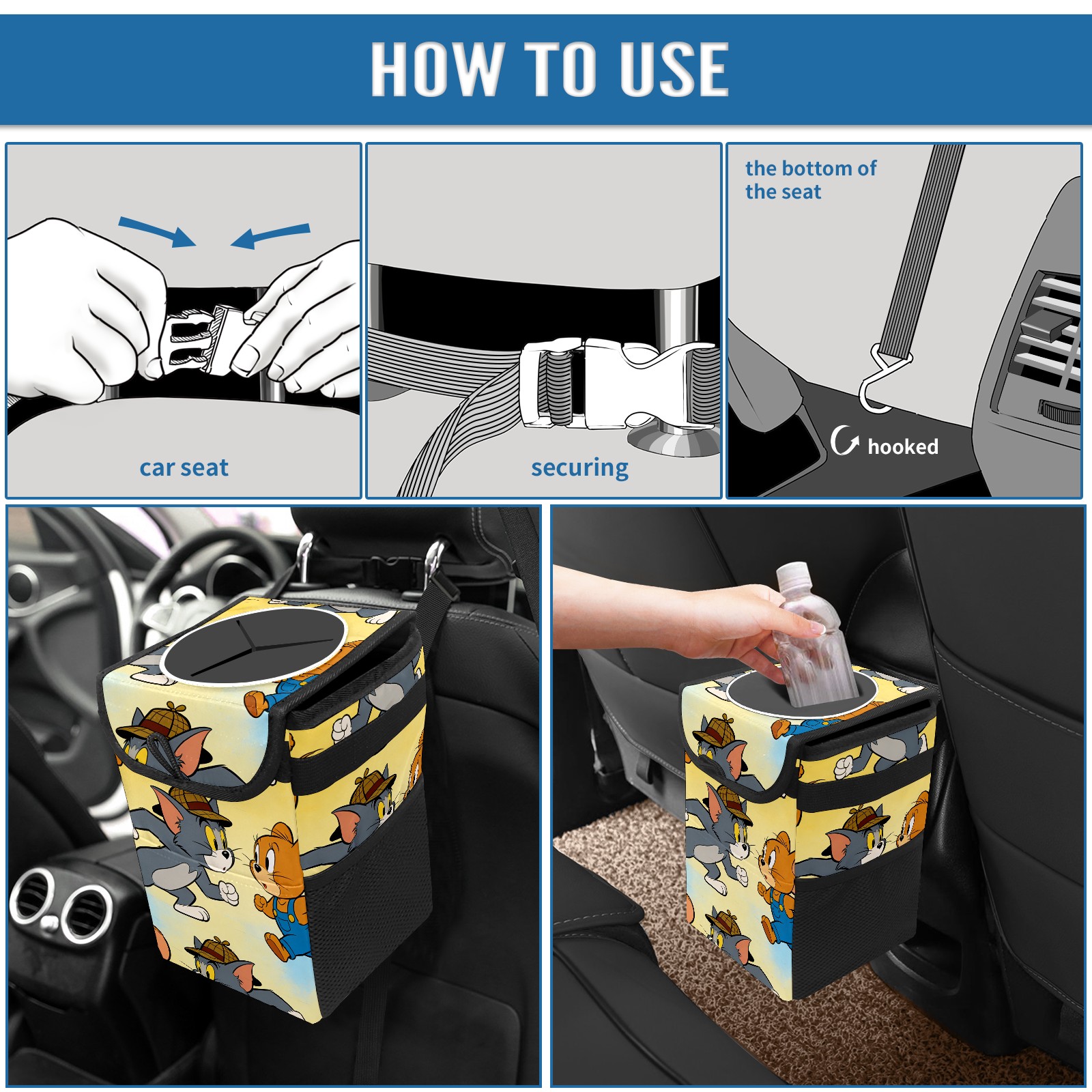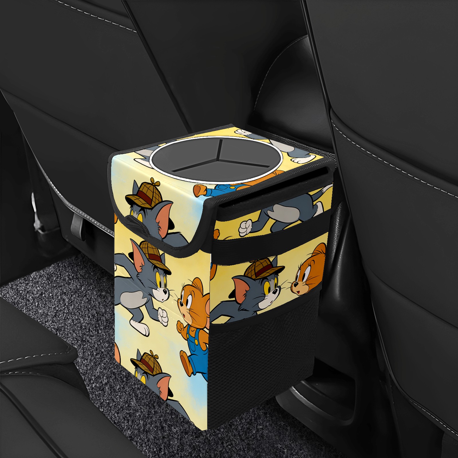 Car Trash Can with Lid, Small Portable Hanging Automotive Garbage Bin for Vehicles, Leakproof Waste Bag Container for SUV Truck Van Interior Auto Travel Road Trips(创作经典IP图 (43))