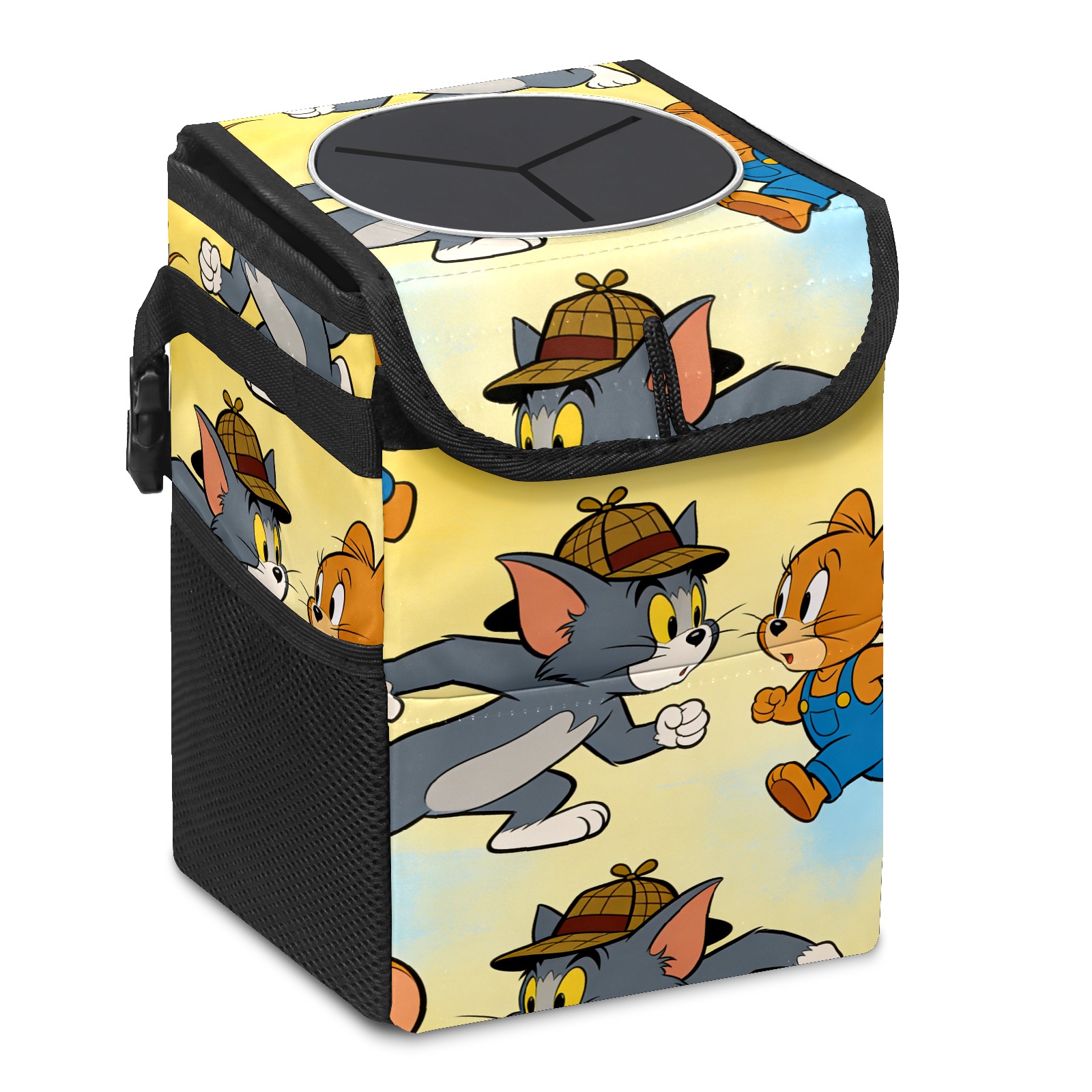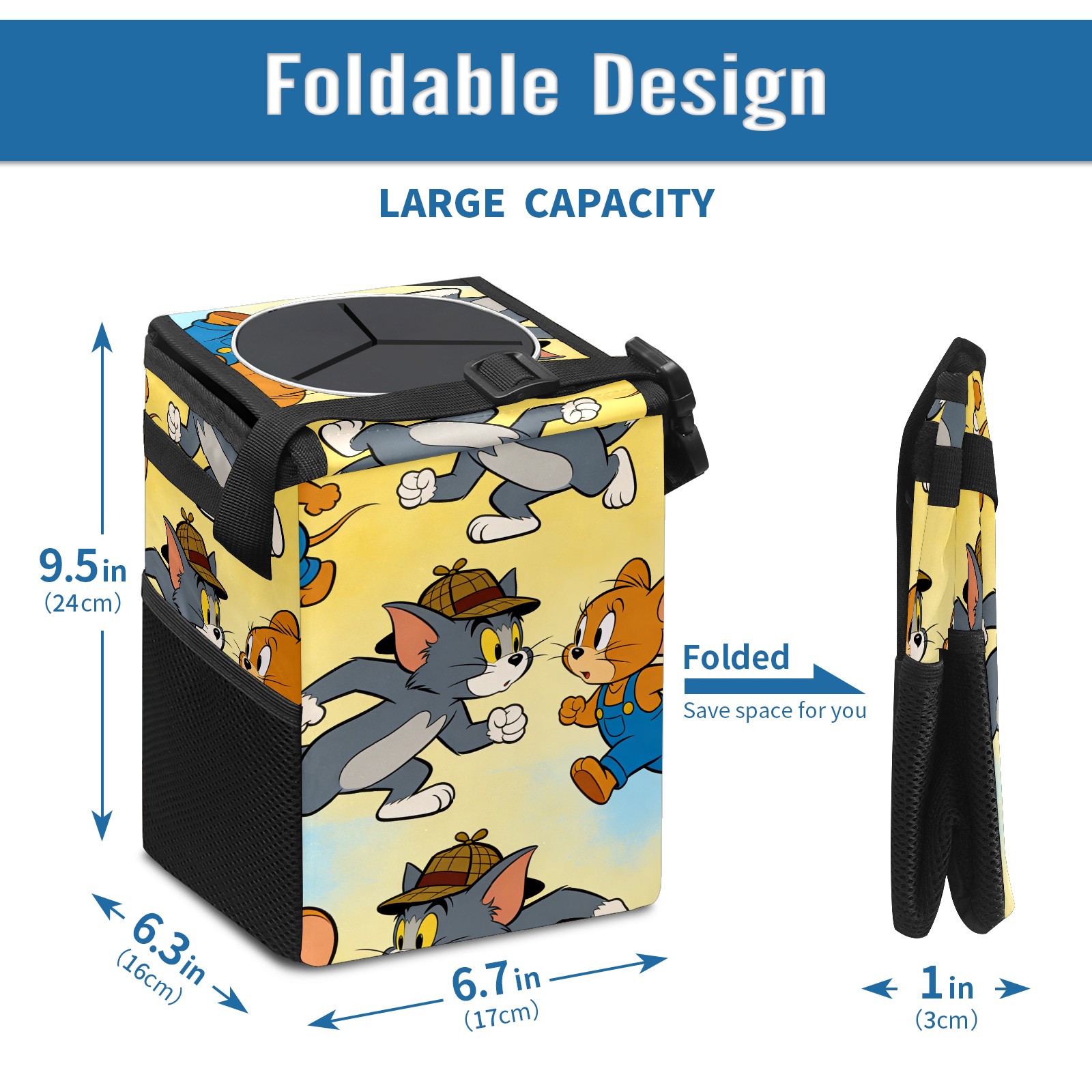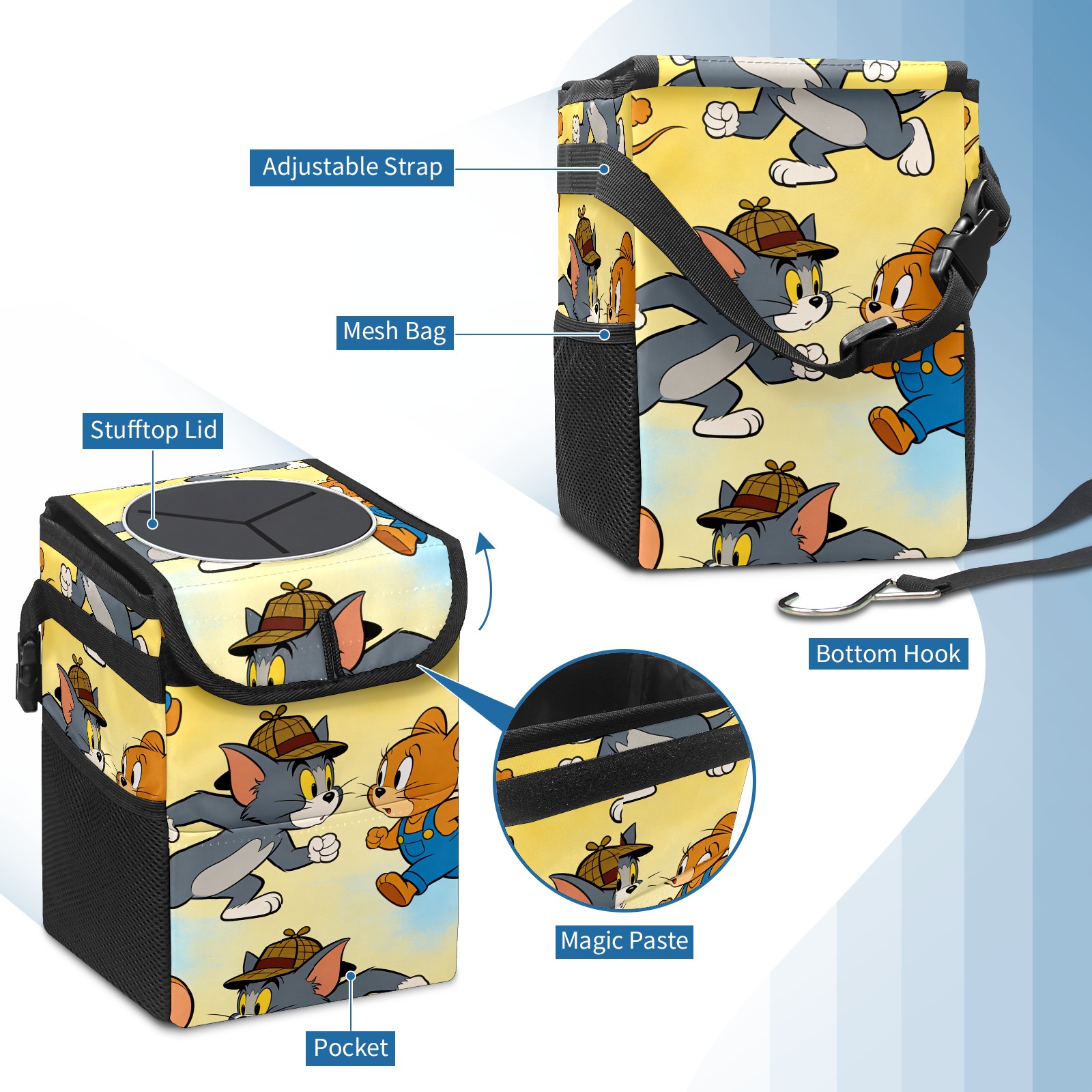 Car Trash Can with Lid, Small Portable Hanging Automotive Garbage Bin for Vehicles, Leakproof Waste Bag Container for SUV Truck Van Interior Auto Travel Road Trips(创作经典IP图 (43))