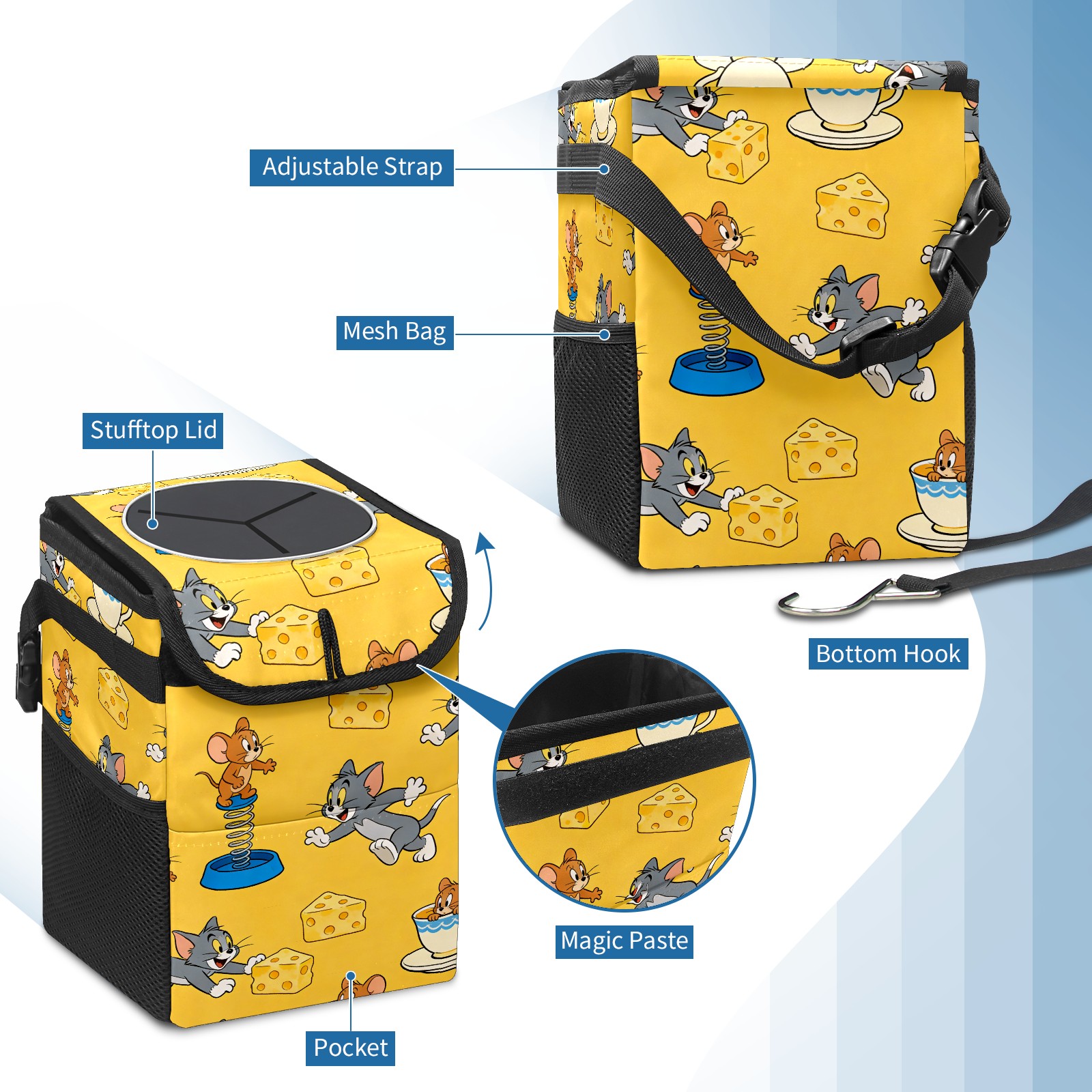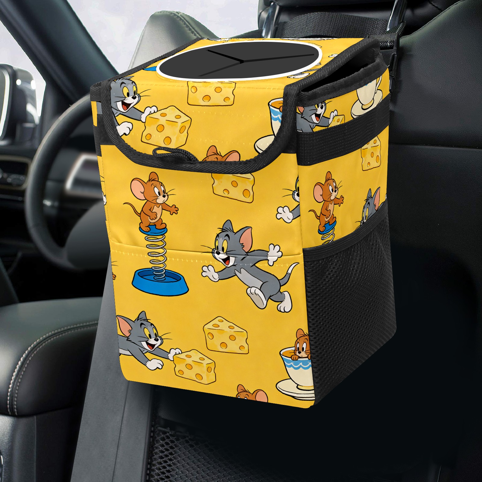 Car Trash Can with Lid, Small Portable Hanging Automotive Garbage Bin for Vehicles, Leakproof Waste Bag Container for SUV Truck Van Interior Auto Travel Road Trips(创作经典IP图 (73))