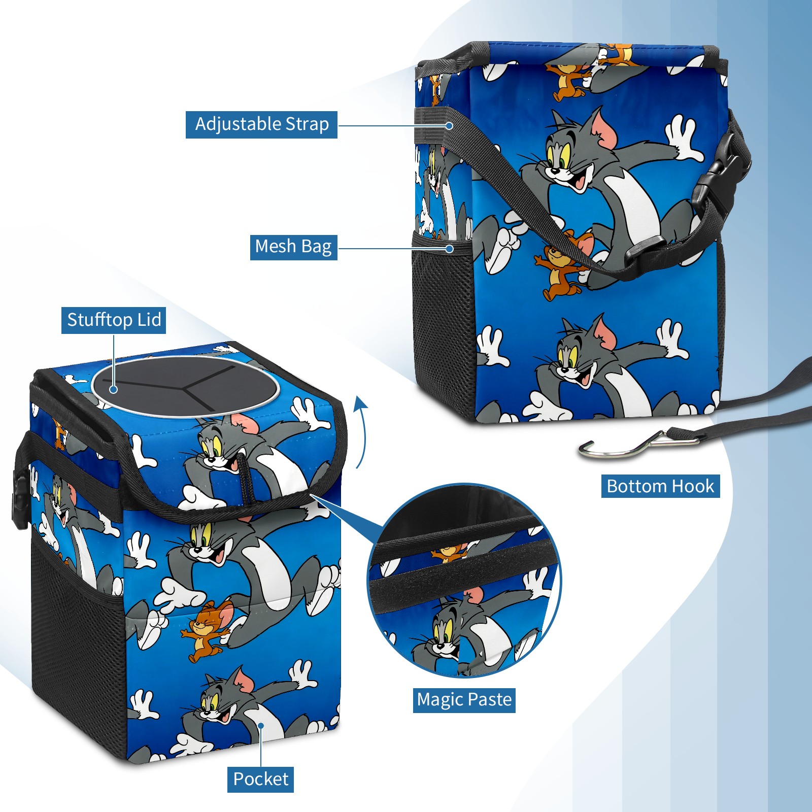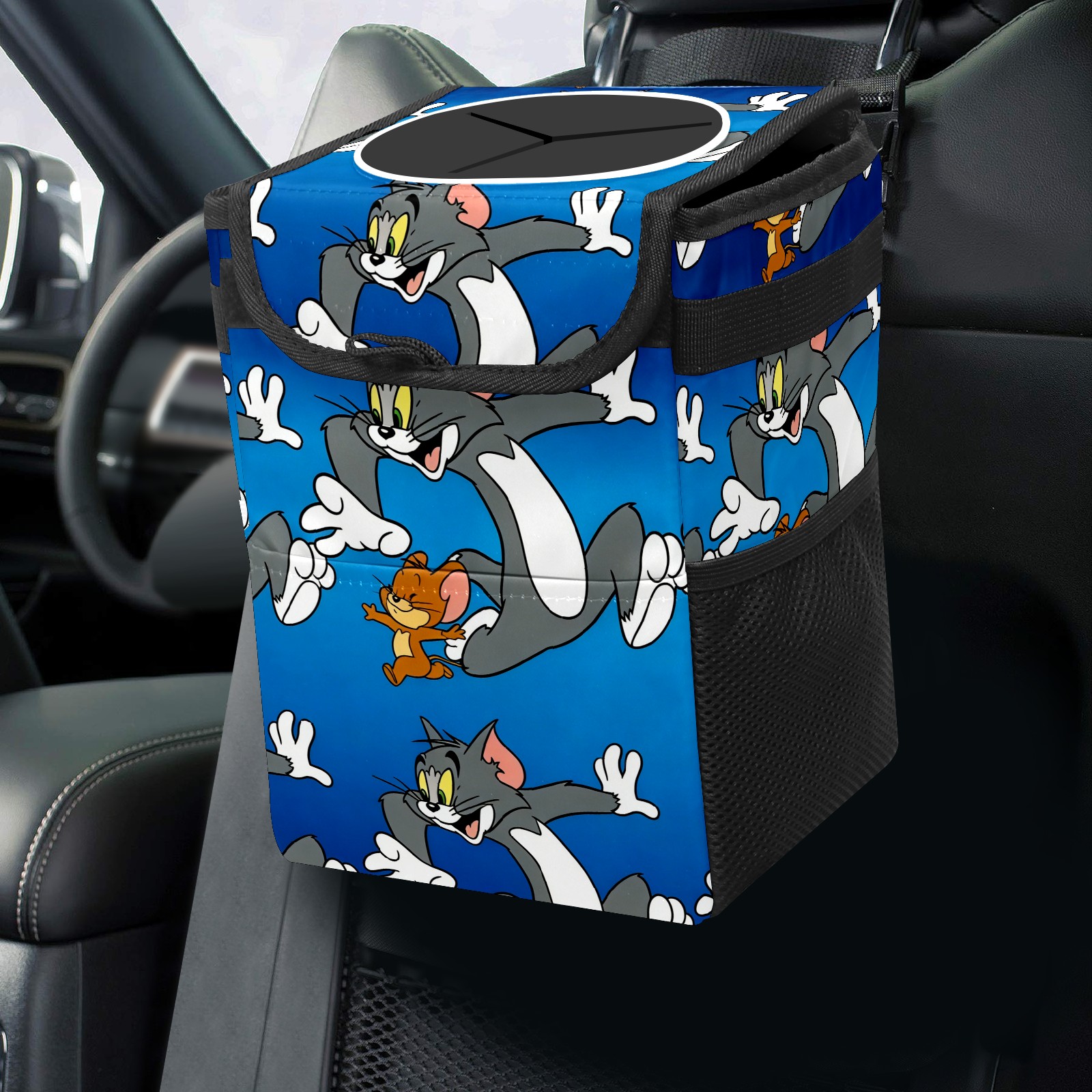 Car Trash Can with Lid, Small Portable Hanging Automotive Garbage Bin for Vehicles, Leakproof Waste Bag Container for SUV Truck Van Interior Auto Travel Road Trips(创作经典IP图 (71))