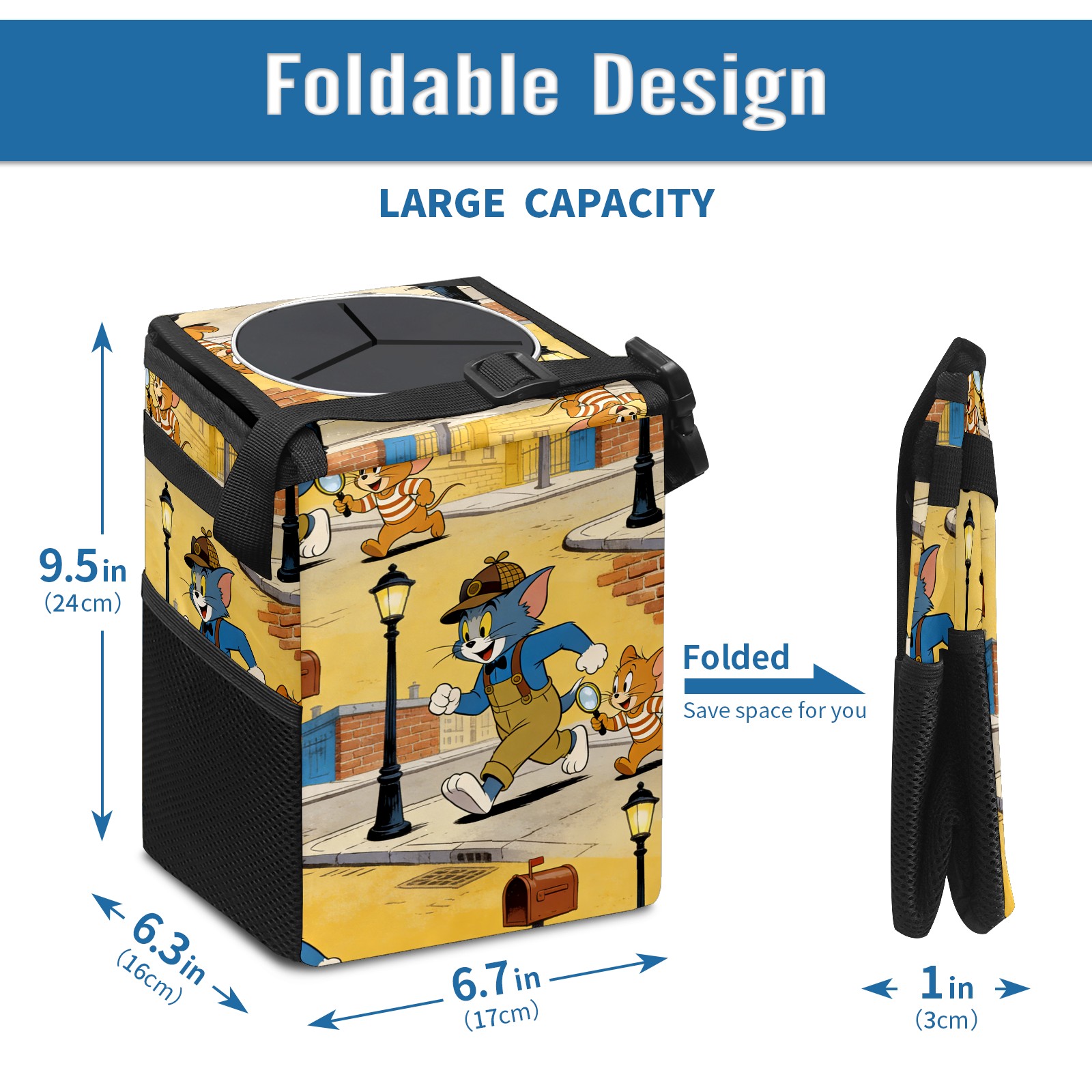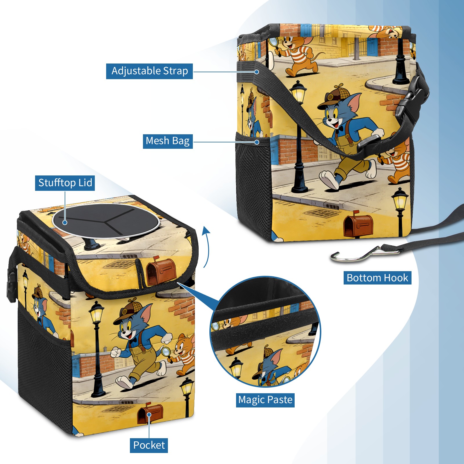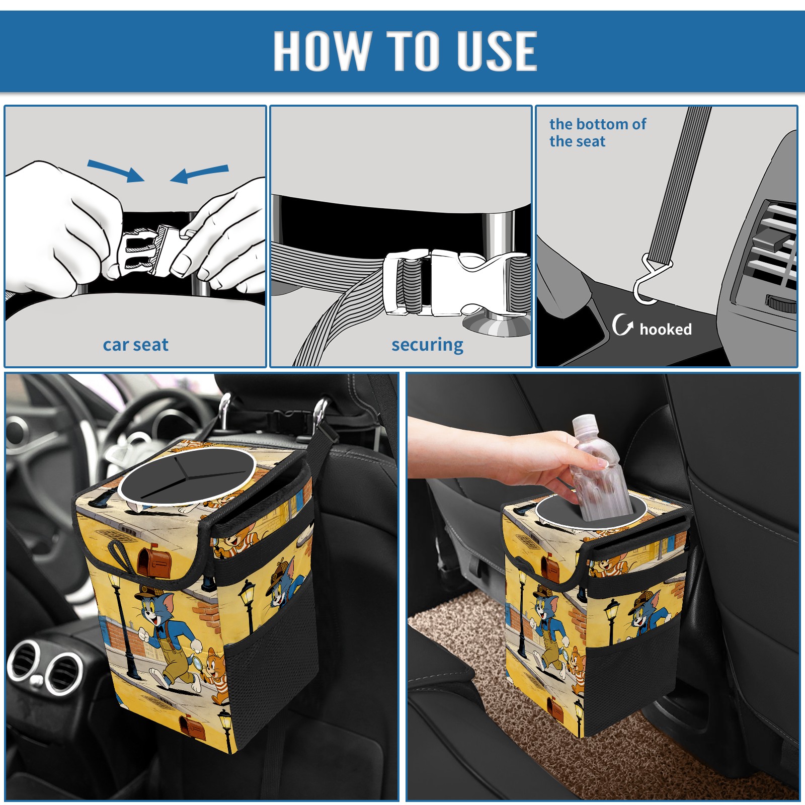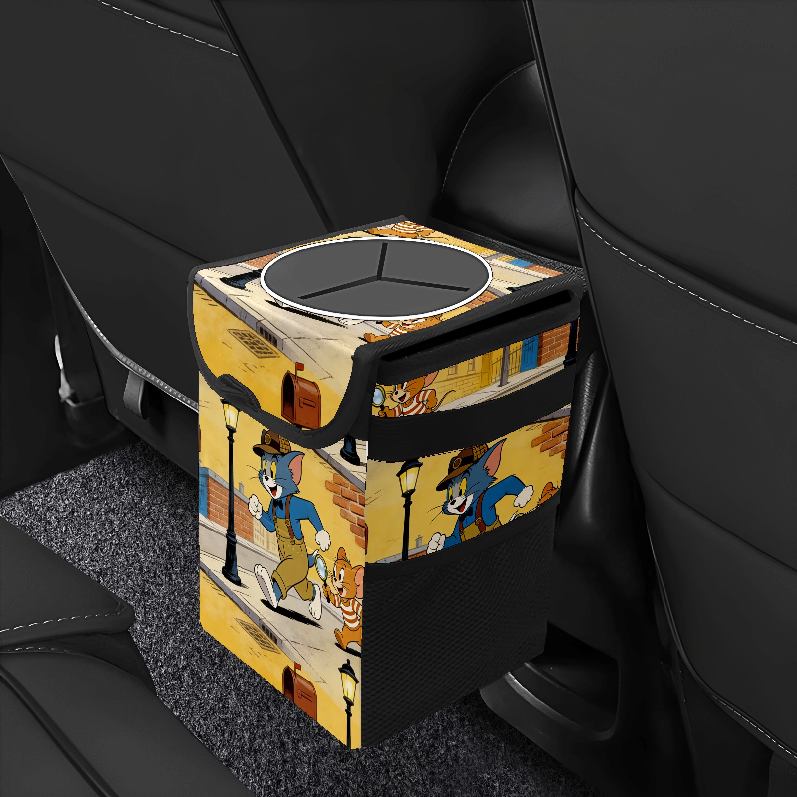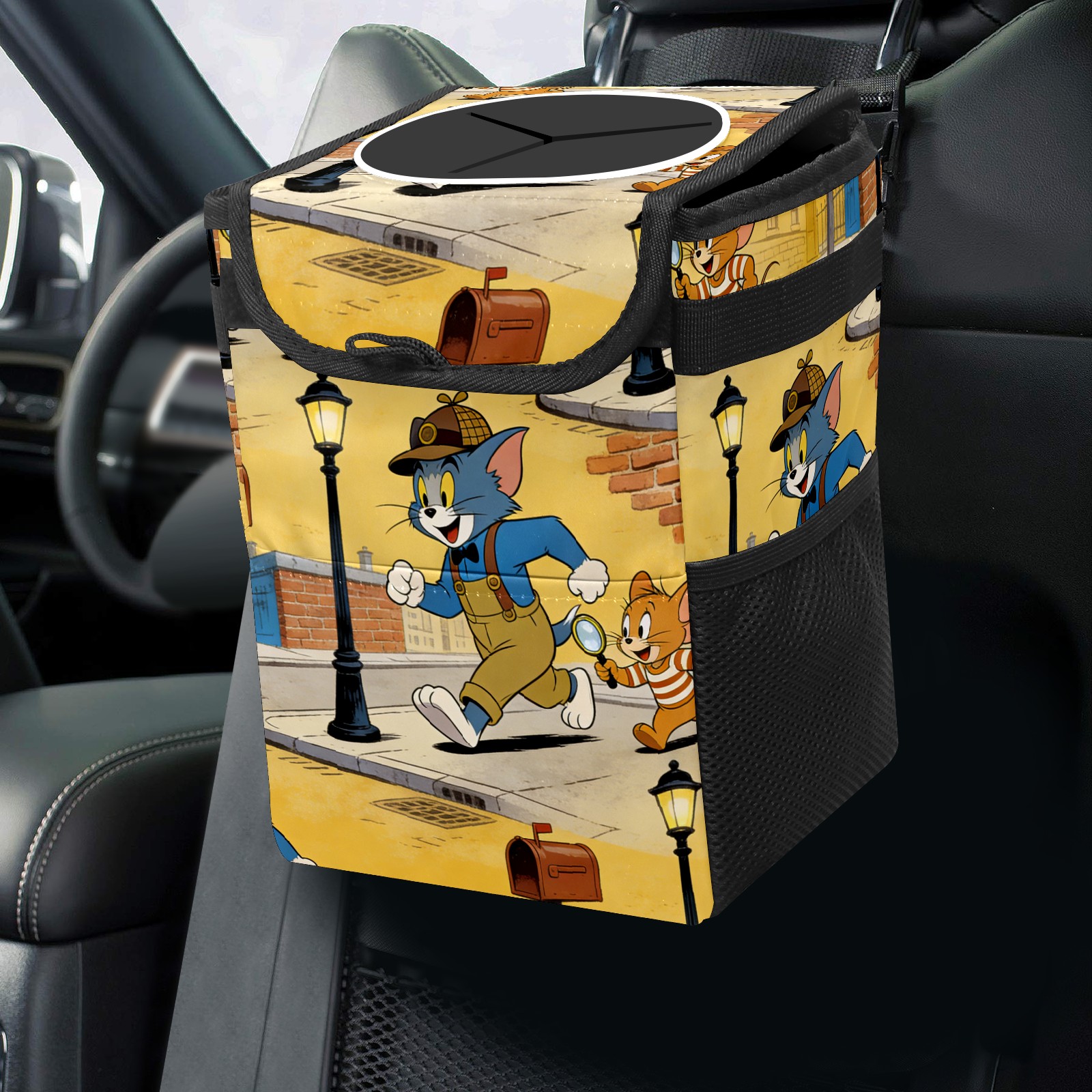 Car Trash Can with Lid, Small Portable Hanging Automotive Garbage Bin for Vehicles, Leakproof Waste Bag Container for SUV Truck Van Interior Auto Travel Road Trips(创作经典IP图 (52))