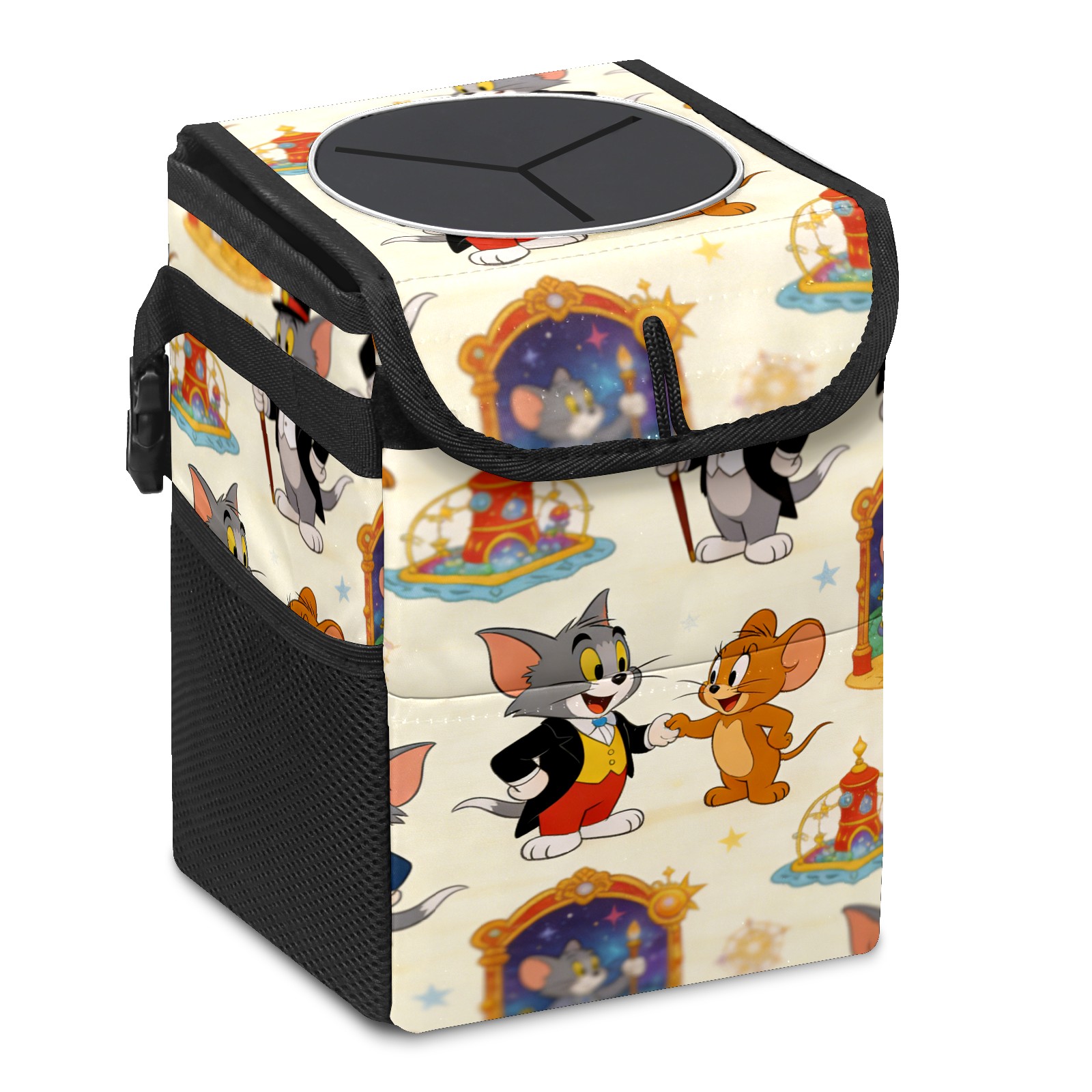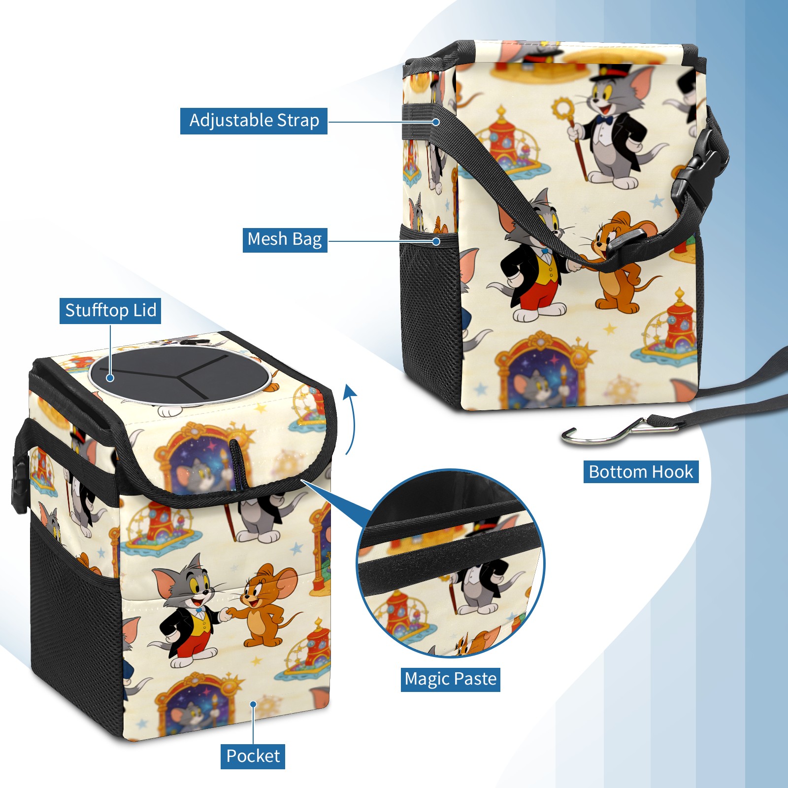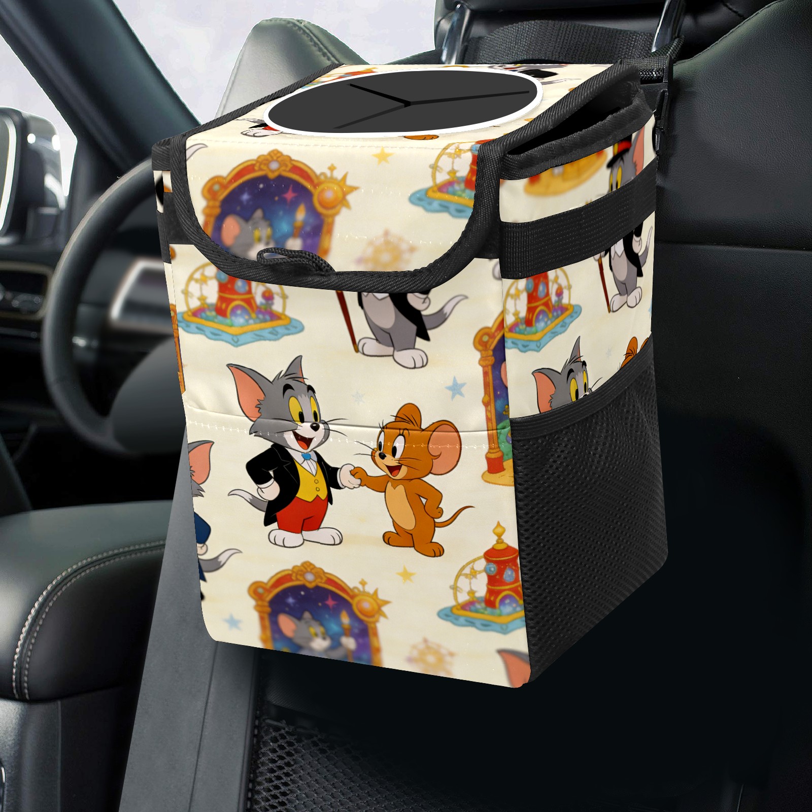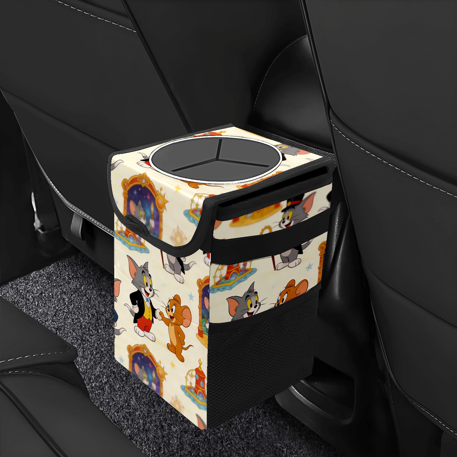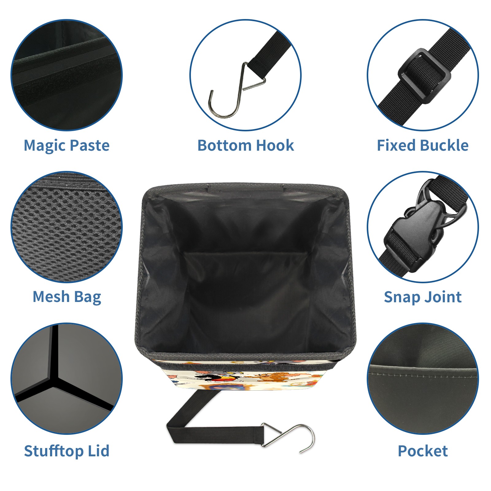 Car Trash Can with Lid, Small Portable Hanging Automotive Garbage Bin for Vehicles, Leakproof Waste Bag Container for SUV Truck Van Interior Auto Travel Road Trips(创作经典IP图 (65))