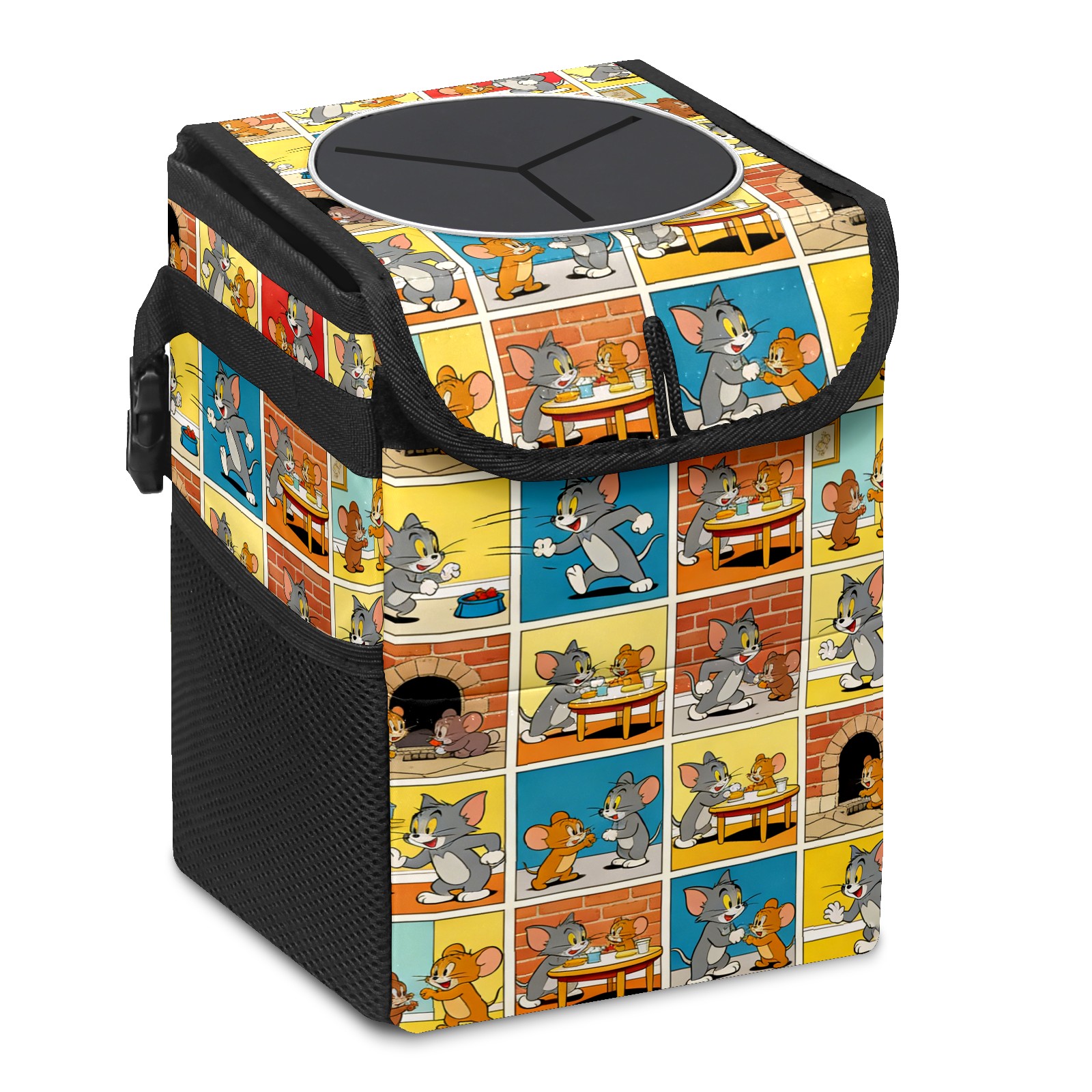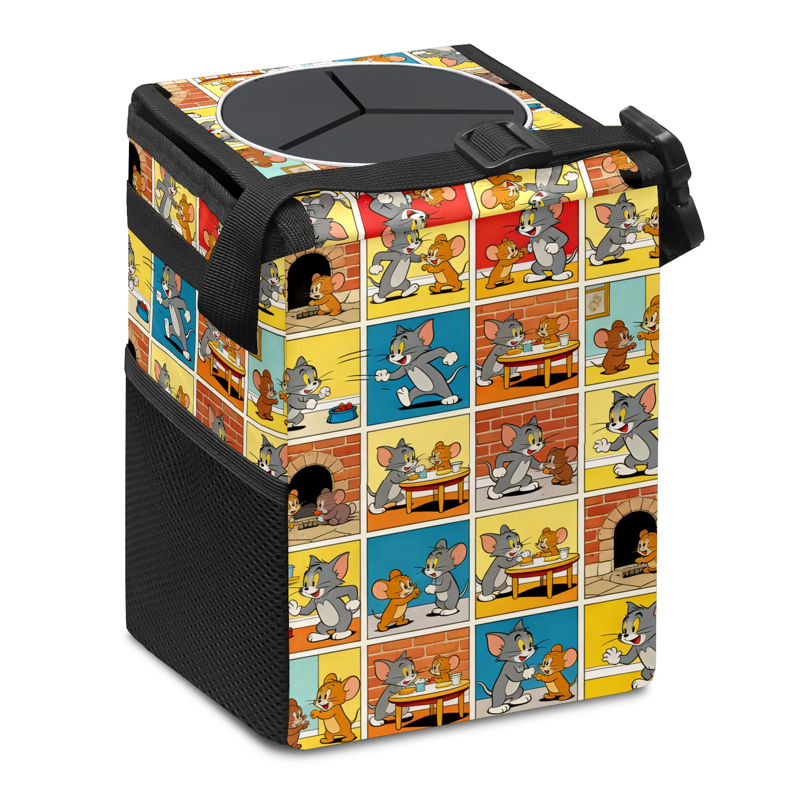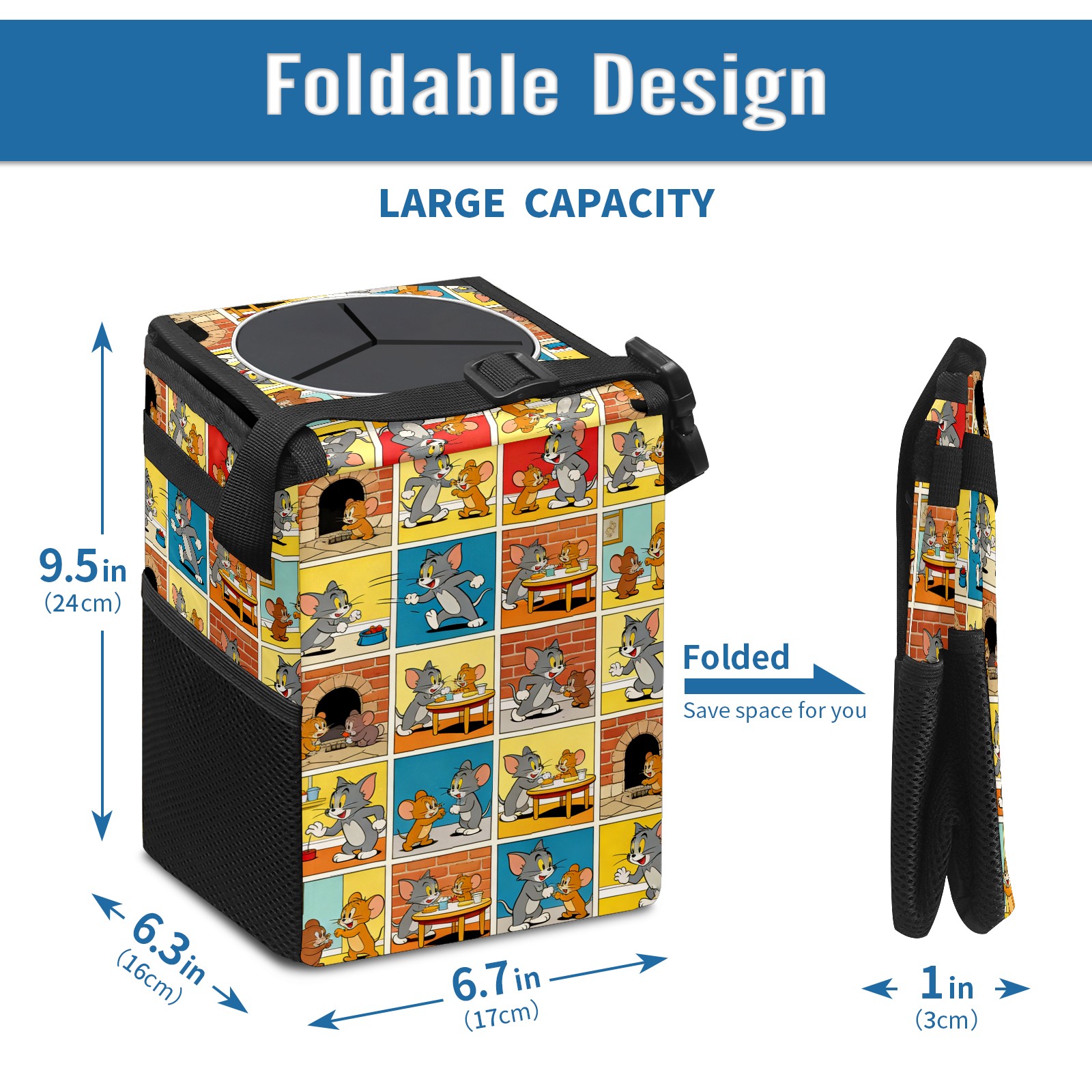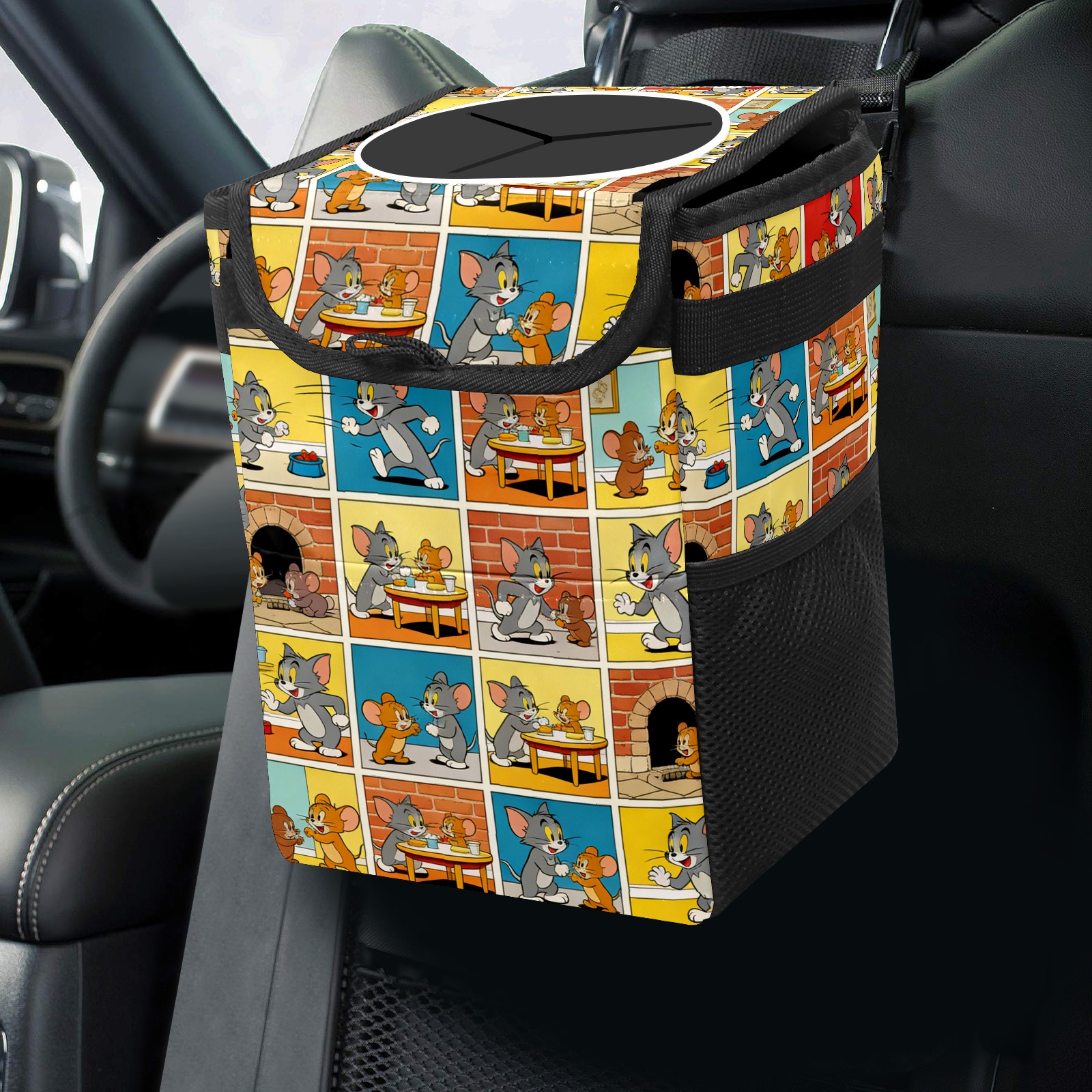Car Trash Can with Lid, Small Portable Hanging Automotive Garbage Bin for Vehicles, Leakproof Waste Bag Container for SUV Truck Van Interior Auto Travel Road Trips(创作经典IP图 (48))