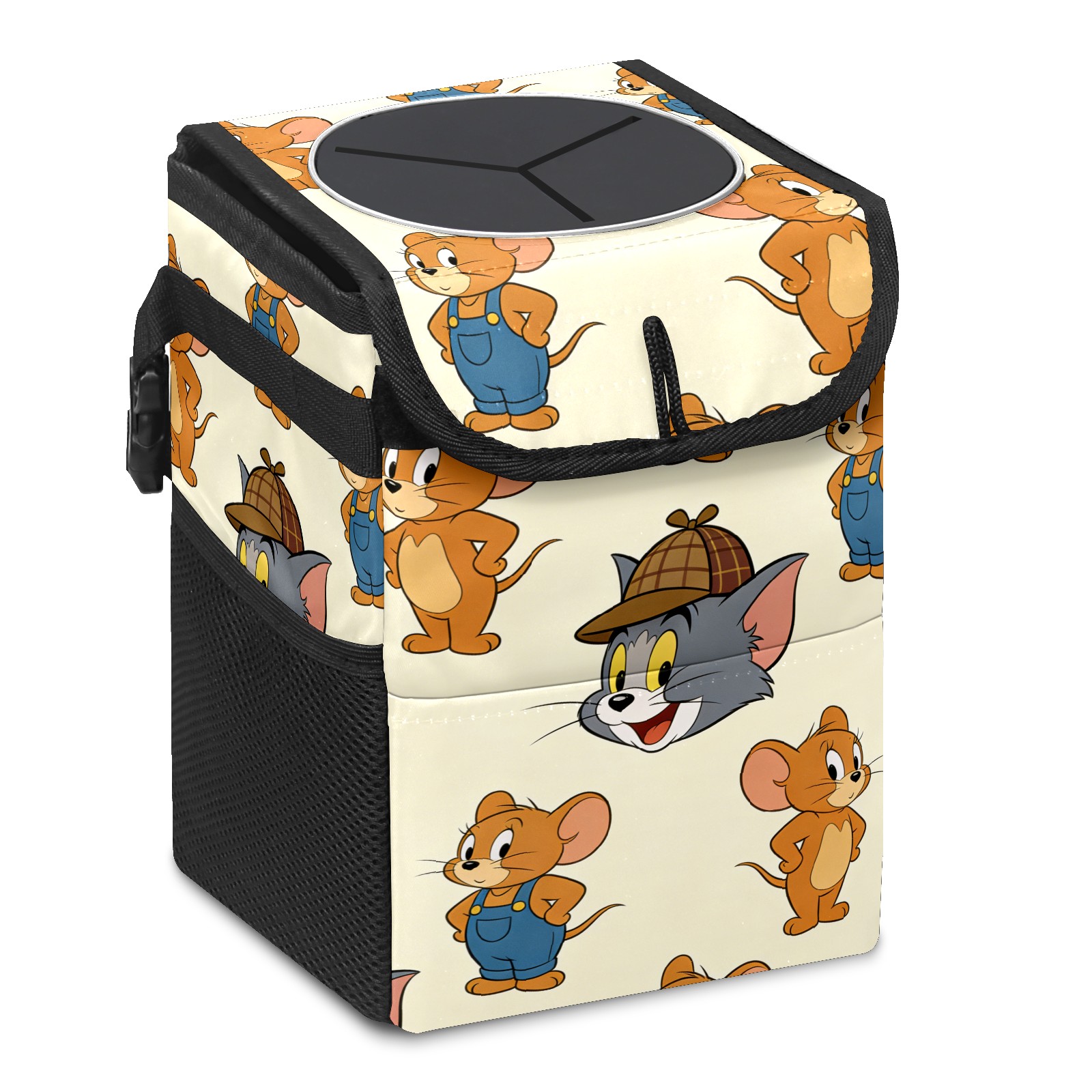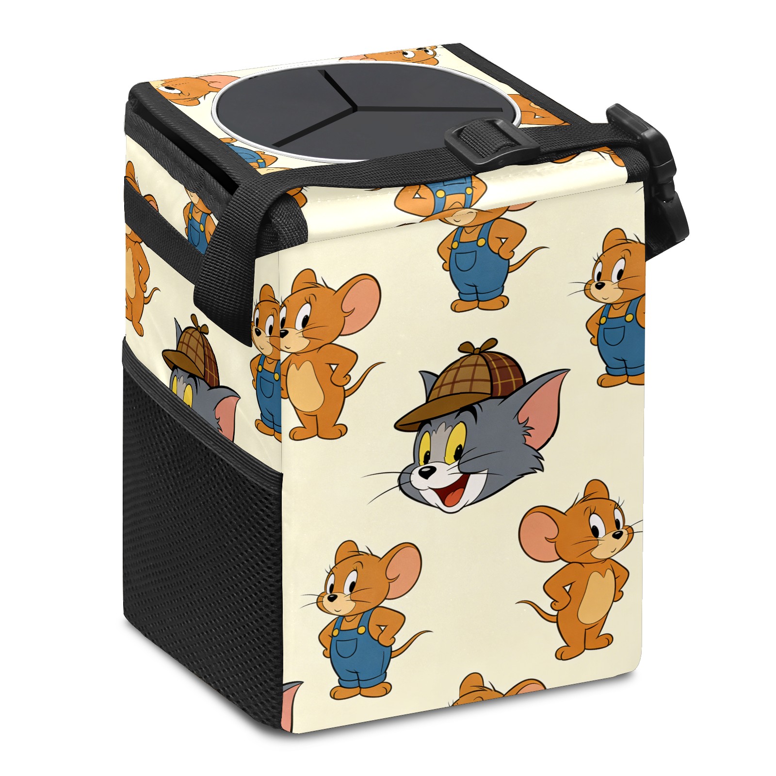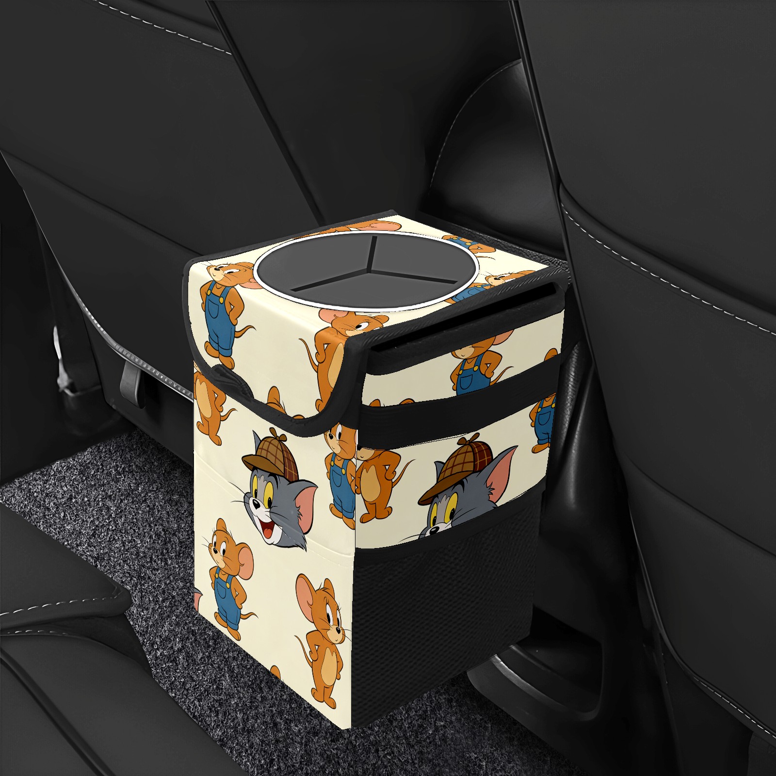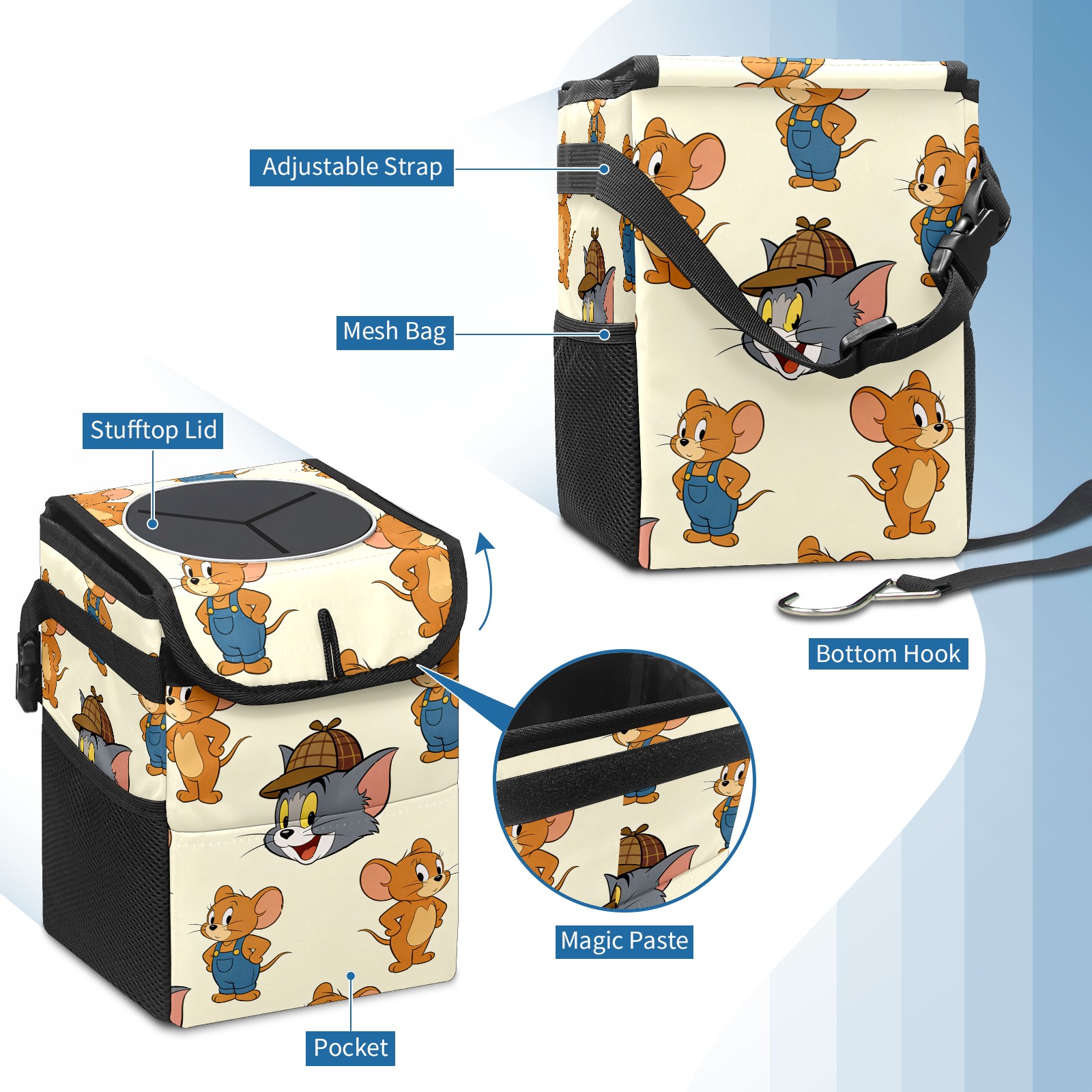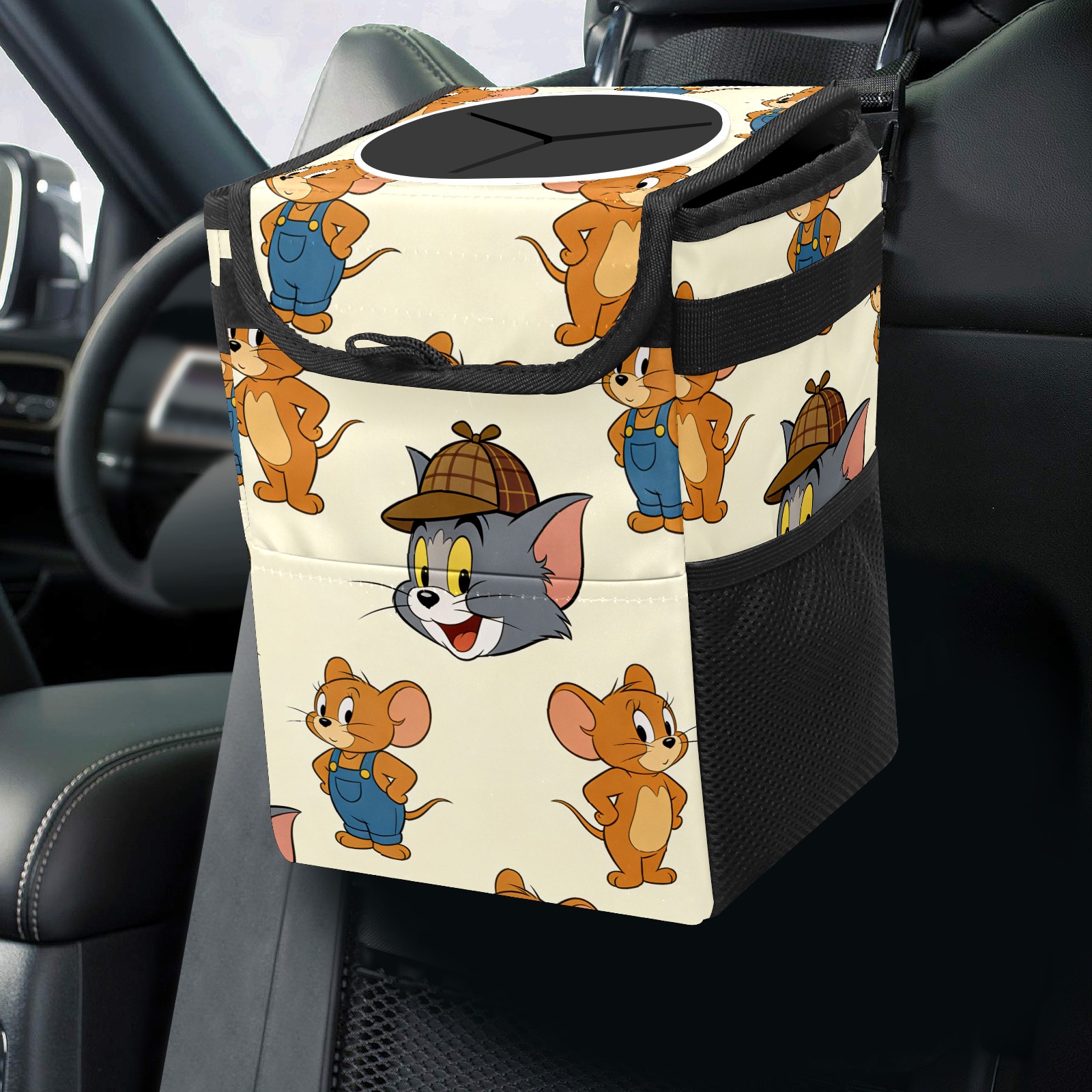 Car Trash Can with Lid, Small Portable Hanging Automotive Garbage Bin for Vehicles, Leakproof Waste Bag Container for SUV Truck Van Interior Auto Travel Road Trips(创作经典IP图 (5))