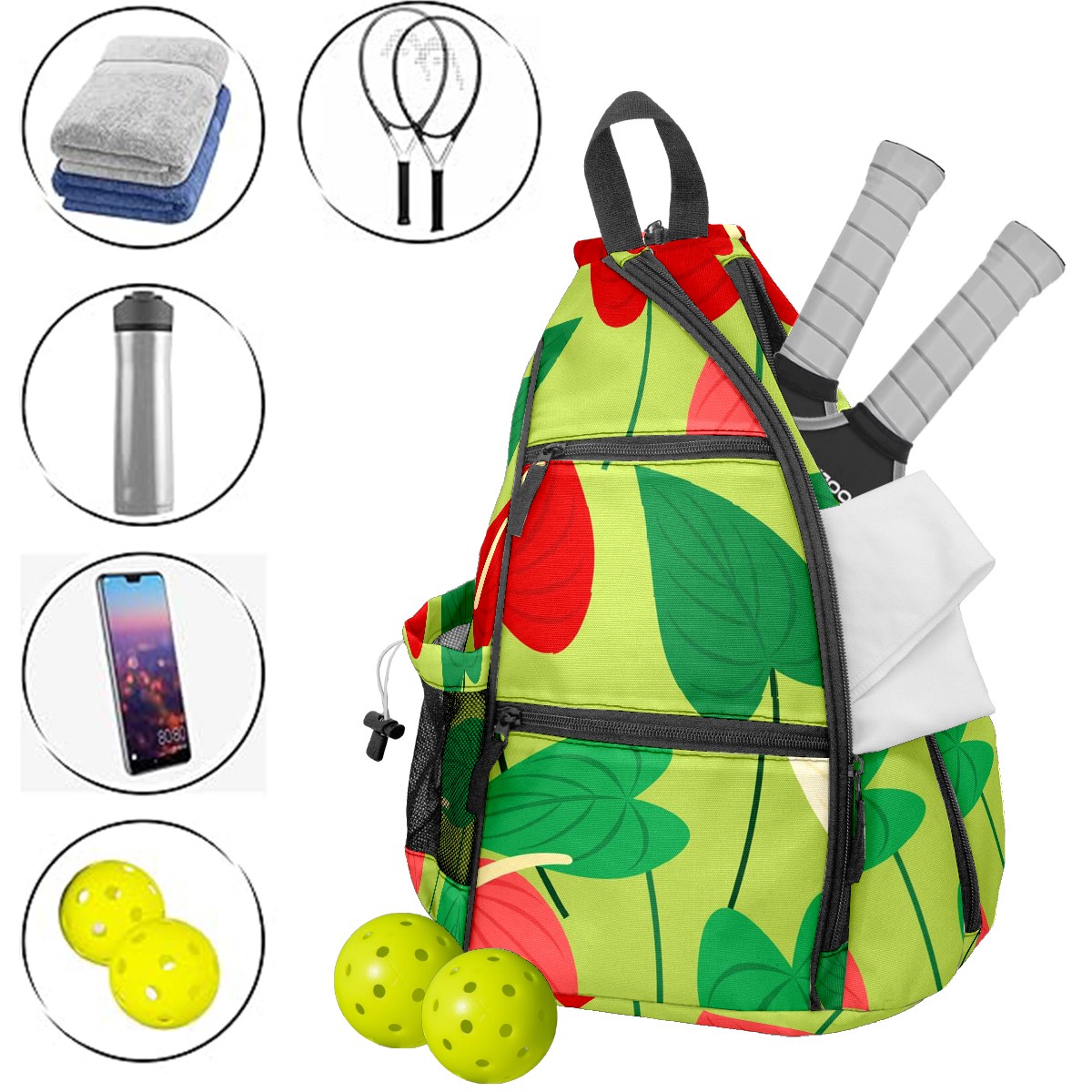 Материал: Прочная нейлоновая ткань + усиленные тканые лямки + дышащий сетчатый карман Размеры: 15×35×45 см / 6×13,8×17,7 дюймов Большая вместимость с множеством отделений – в одной сумке поместится все ваше снаряжение для пикбола: ракетки, мячи, защитная экипировка и бутылка с водой! Разработана для комфортной переноски – утолщенная мягкая спинка в сочетании с регулируемыми дышащими сетчатыми плечевыми ремнями эффективно распределяет вес, снимая боль в плечах и спине, а также мышечное напряжение. Ткань сумки гладкая и приятная на ощупь, деликатная и мягкая, что делает ежедневное использование более комфортным. Гибкие варианты переноски: плечевые лямки имеют съемную молнию, позволяющую свободно регулировать стиль ношения. Идеально подходит в качестве портативной сумки через плечо для ежедневных поездок на работу, отдыха на природе и спортивных мероприятий, а также в качестве практичного и продуманного подарка для друзей, семьи и других игроков в пикбол.