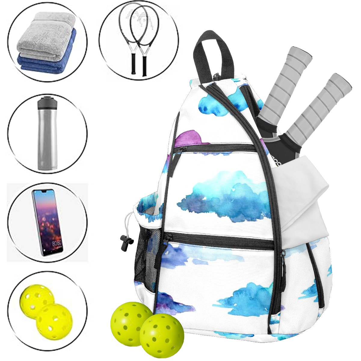 • ✅ Прочный материал Изготовлена из нейлоновой ткани + плетеного ремня + сетчатой корзины: гладкая на ощупь, приятная текстура, долговечная в использовании. ✅ Большой объем + много карманов Размер 153545см/6x13.8x17.7 дюймов, продуманная конструкция с несколькими карманами позволяет удобно разложить аксессуары для пикебола, не беспокоясь о нехватке места. ✅ Максимальный комфорт ношения Подушенное спинное отделение + регулируемые сетчатые плечевые ремни эффективно предотвращают растяжение мышц и боль в плечах, даже при длительном ношении. ✅ Универсальное использование Ремни выполнены по технологии съемного молния — регулируемый способ ношения. Подходит как повседневная поясная сумка для поездок, прогулок и других мероприятий, также является идеальным подарком для друзей и близких!
