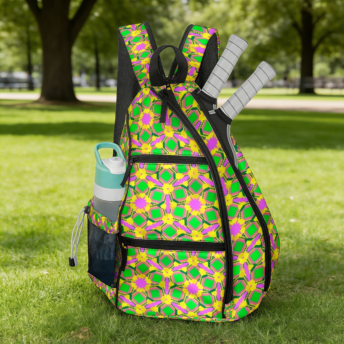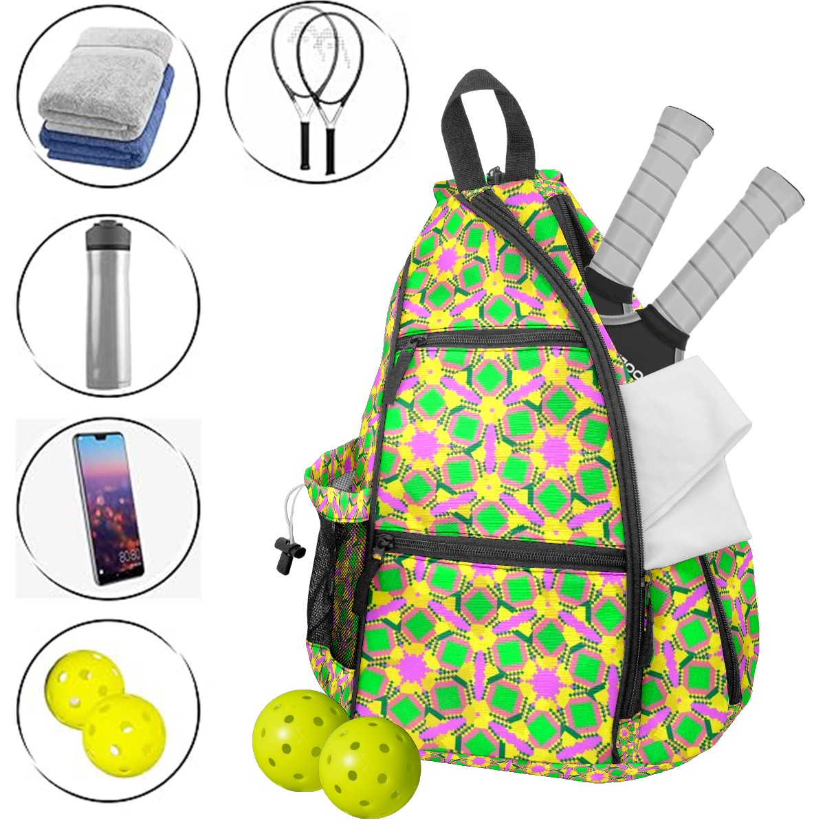 • ✅ Прочный материал Изготовлена из нейлоновой ткани + плетеного ремня + сетчатой корзины: гладкая на ощупь, приятная текстура, долговечная в использовании. ✅ Большой объем + много карманов Размер 153545см/6x13.8x17.7 дюймов, продуманная конструкция с несколькими карманами позволяет удобно разложить аксессуары для пикебола, не беспокоясь о нехватке места. ✅ Максимальный комфорт ношения Подушенное спинное отделение + регулируемые сетчатые плечевые ремни эффективно предотвращают растяжение мышц и боль в плечах, даже при длительном ношении. ✅ Универсальное использование Ремни выполнены по технологии съемного молния — регулируемый способ ношения. Подходит как повседневная поясная сумка для поездок, прогулок и других мероприятий, также является идеальным подарком для друзей и близких!