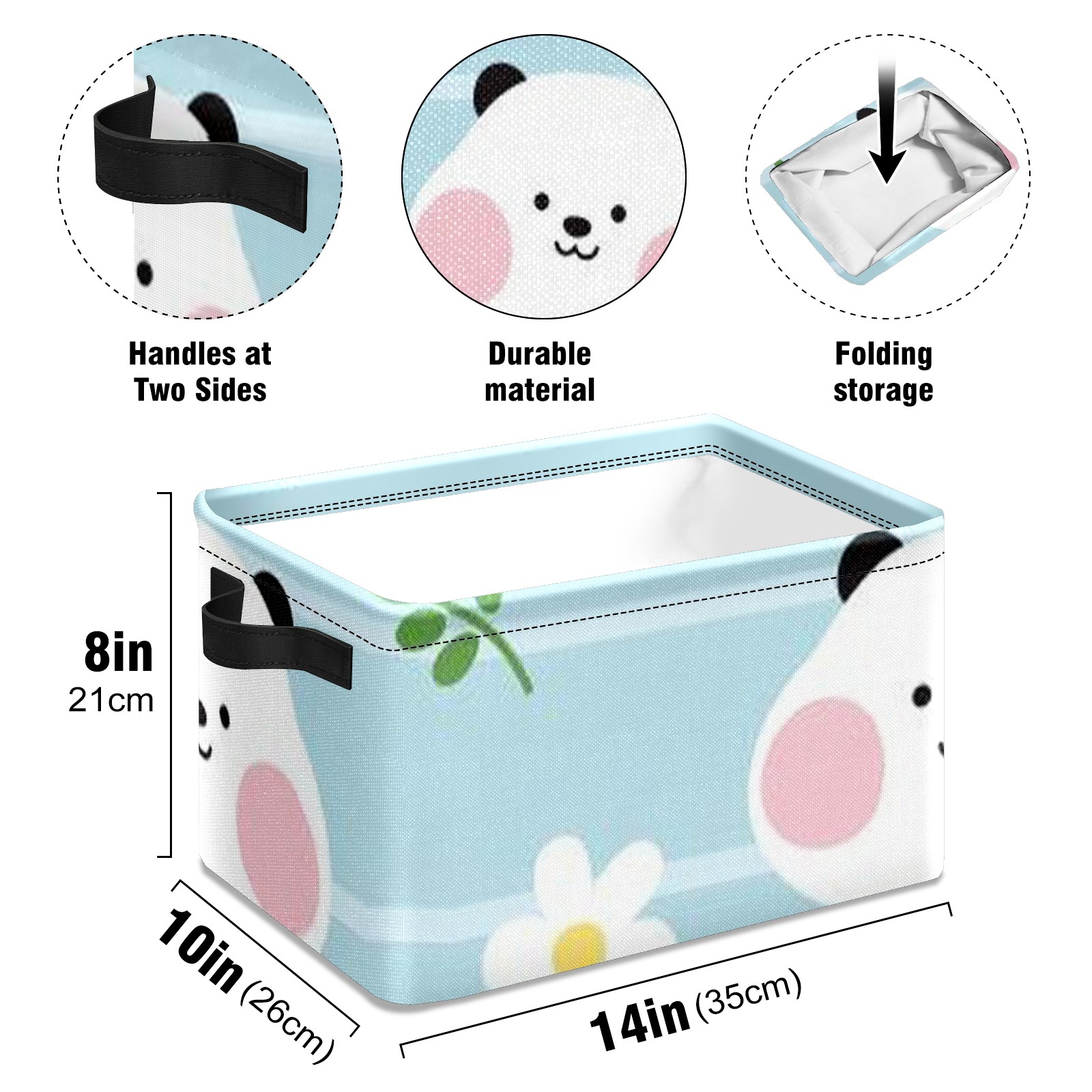 【Материал】Оксфордская ткань из полиэстера 600D; ручки изготовлены из полиэстера. 【Описание материала】Внешняя ткань: Оксфордская ткань полотняного переплетения высокой плотности 300D (ПВХ); Подкладка: белая ткань 750D; Ручки: черная композитная ткань 290T. 【Размер】26x35x21 см (10x14x8 дюймов) 【Описание продукта】Эта корзина для хранения с ручками с обеих сторон предлагает достаточно места для хранения предметов разных размеров, что делает ее подходящей для различных случаев, таких как дом, офис и школа. Ручки с обеих сторон закреплены гвоздями для долговечности. Прочный металлический каркас окружает корзину, поддерживая ее форму. Складная корзина для хранения: Наши корзины для хранения легко складываются, когда не используются. Эти ящики для хранения изготовлены из легко моющейся оксфордской ткани и при необходимости могут быть аккуратно протерты мягким мылом и водой. Из-за внутреннего металлического каркаса и жесткого дна машинная стирка не рекомендуется. 【Подходящие сценарии использования】Дом, офис и школа 【Инструкции по стирке】Рекомендуется ручная стирка; избегайте длительного воздействия прямых солнечных лучей.