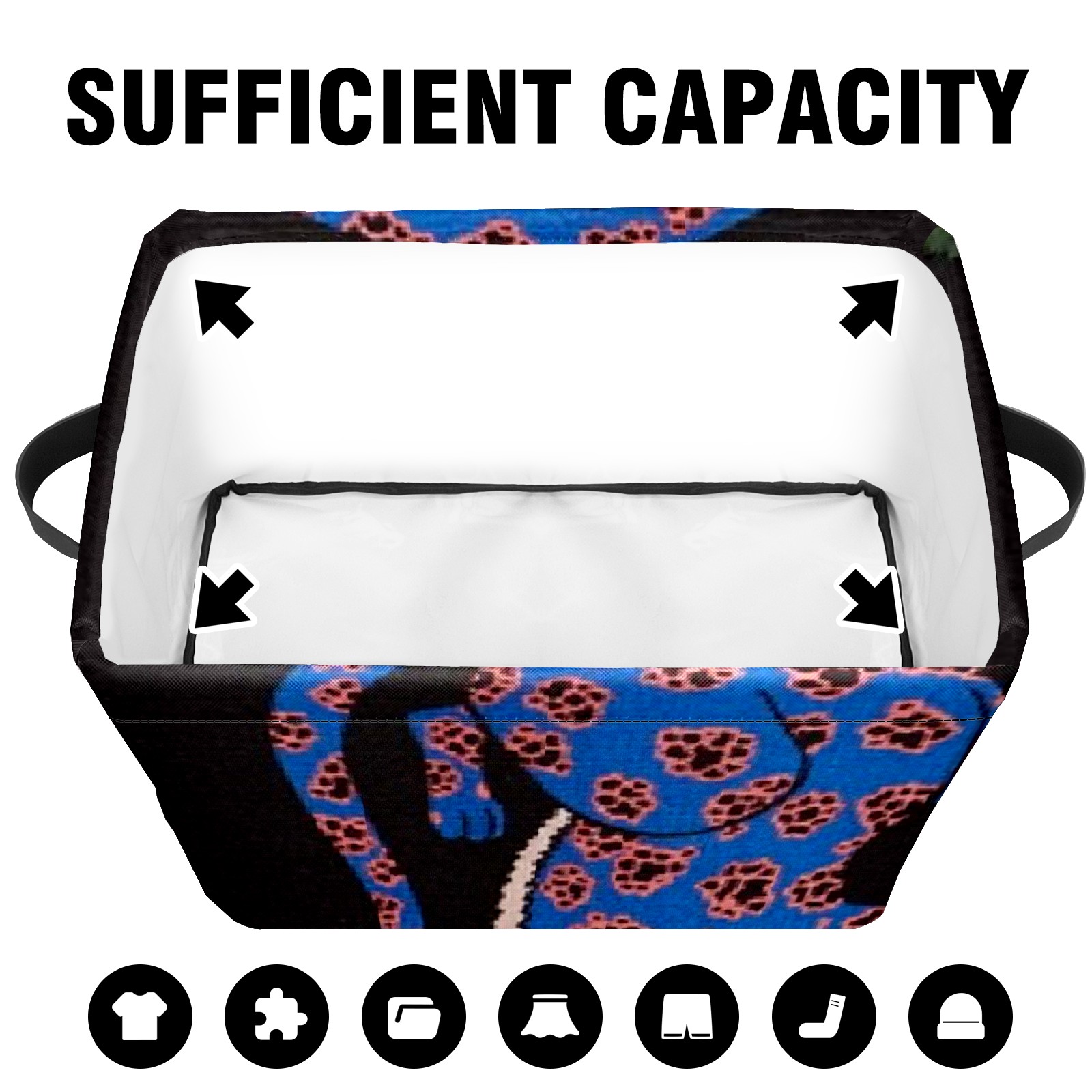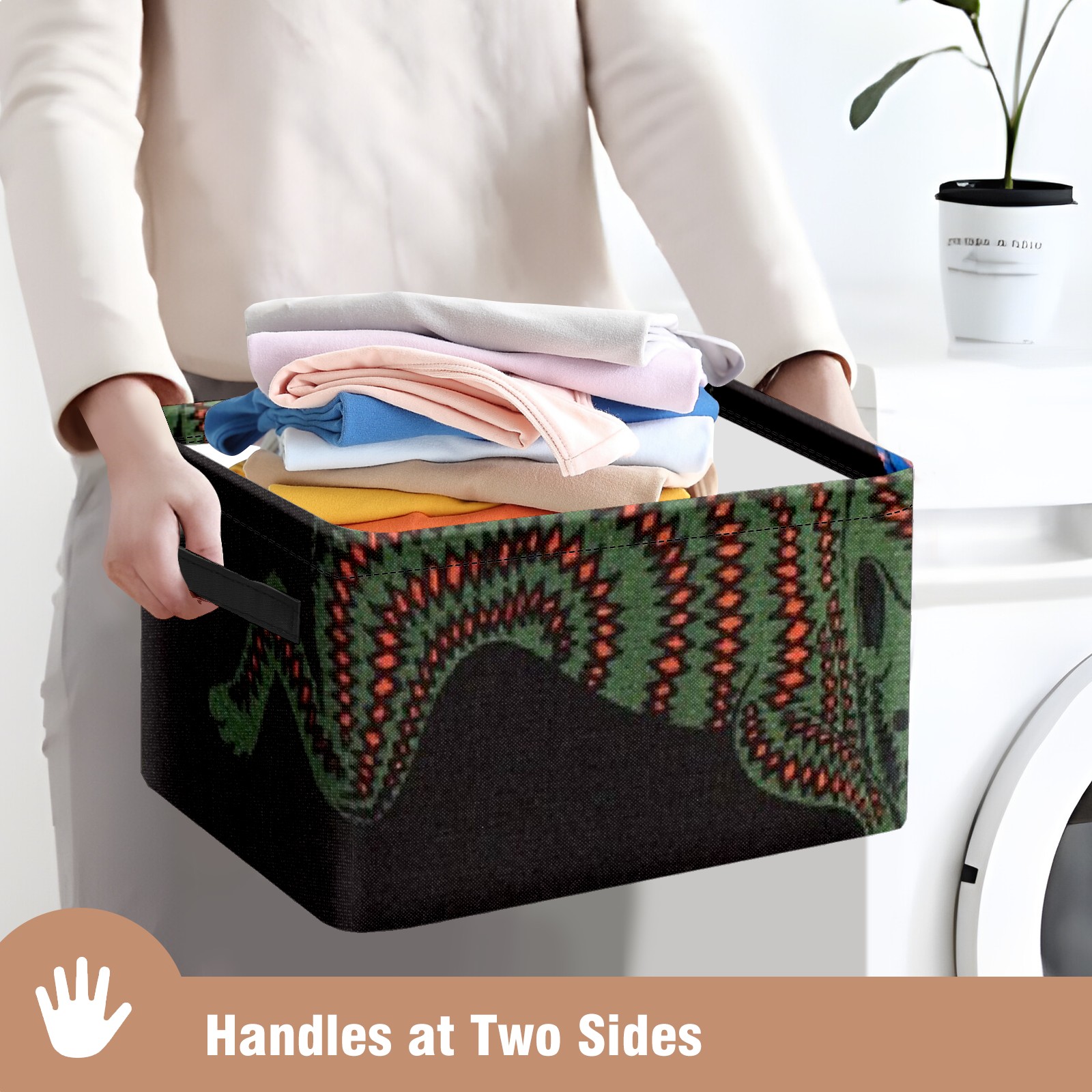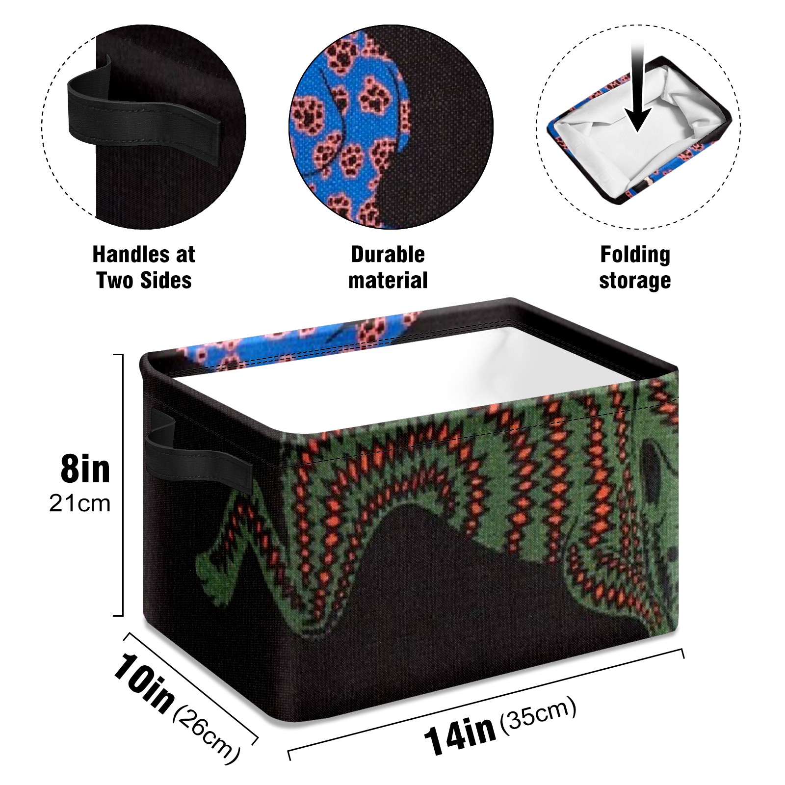 【Материал】Оксфордская ткань из полиэстера 600D; ручки изготовлены из полиэстера. 【Описание материала】Внешняя ткань: Оксфордская ткань полотняного переплетения высокой плотности 300D (ПВХ); Подкладка: белая ткань 750D; Ручки: черная композитная ткань 290T. 【Размер】26x35x21 см (10x14x8 дюймов) 【Описание продукта】Эта корзина для хранения с ручками с обеих сторон предлагает достаточно места для хранения предметов разных размеров, что делает ее подходящей для различных случаев, таких как дом, офис и школа. Ручки с обеих сторон закреплены гвоздями для долговечности. Прочный металлический каркас окружает корзину, поддерживая ее форму. Складная корзина для хранения: Наши корзины для хранения легко складываются, когда не используются. Эти ящики для хранения изготовлены из легко моющейся оксфордской ткани и при необходимости могут быть аккуратно протерты мягким мылом и водой. Из-за внутреннего металлического каркаса и жесткого дна машинная стирка не рекомендуется. 【Подходящие сценарии использования】Дом, офис и школа 【Инструкции по стирке】Рекомендуется ручная стирка; избегайте длительного воздействия прямых солнечных лучей.