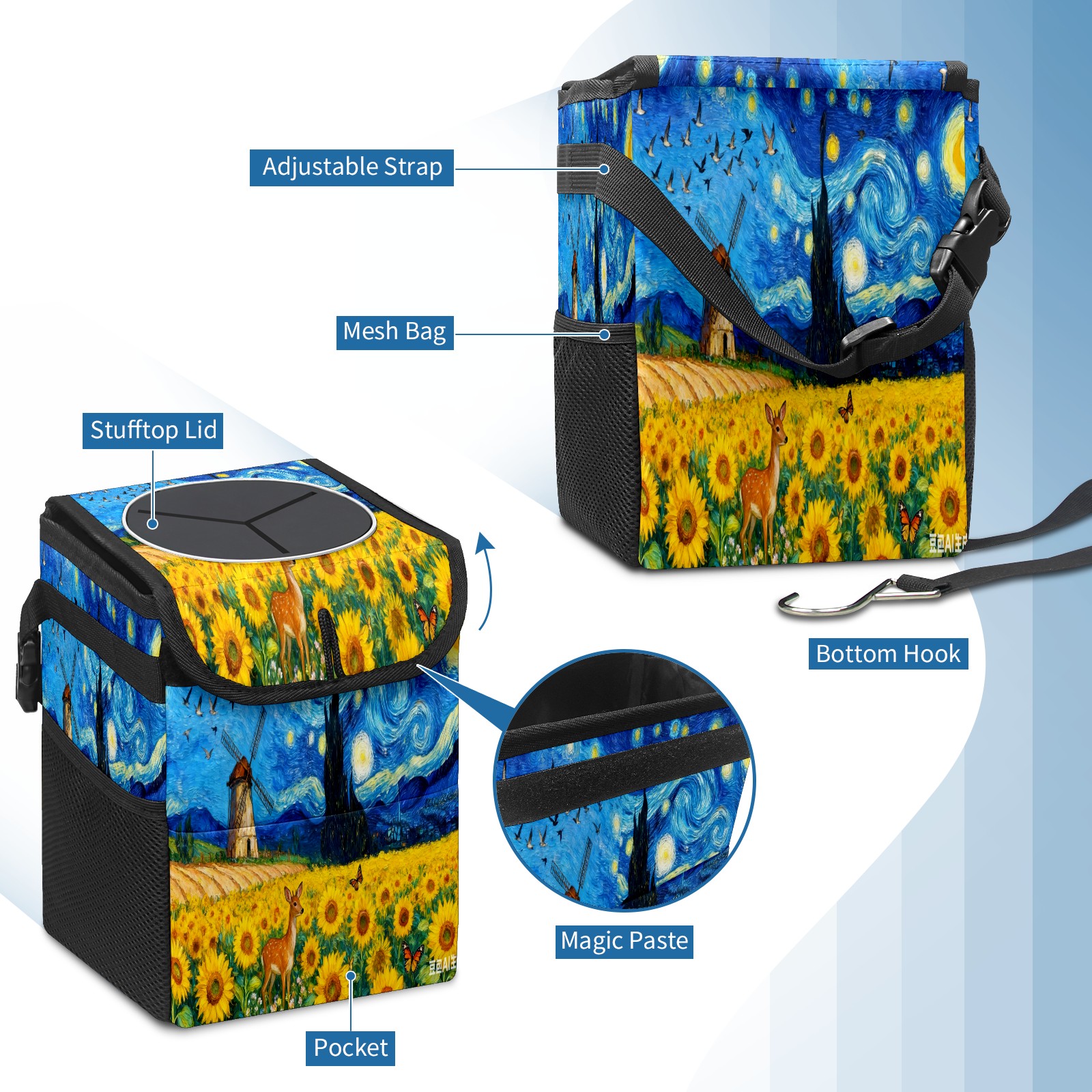 Компактная мусорная корзина для автомобиля — это незаменимый аксессуар для поддержания порядка в салоне. Она легко монтируется на переднее или заднее сиденье, не занимает много места и позволяет удобно собирать мусор во время поездок.