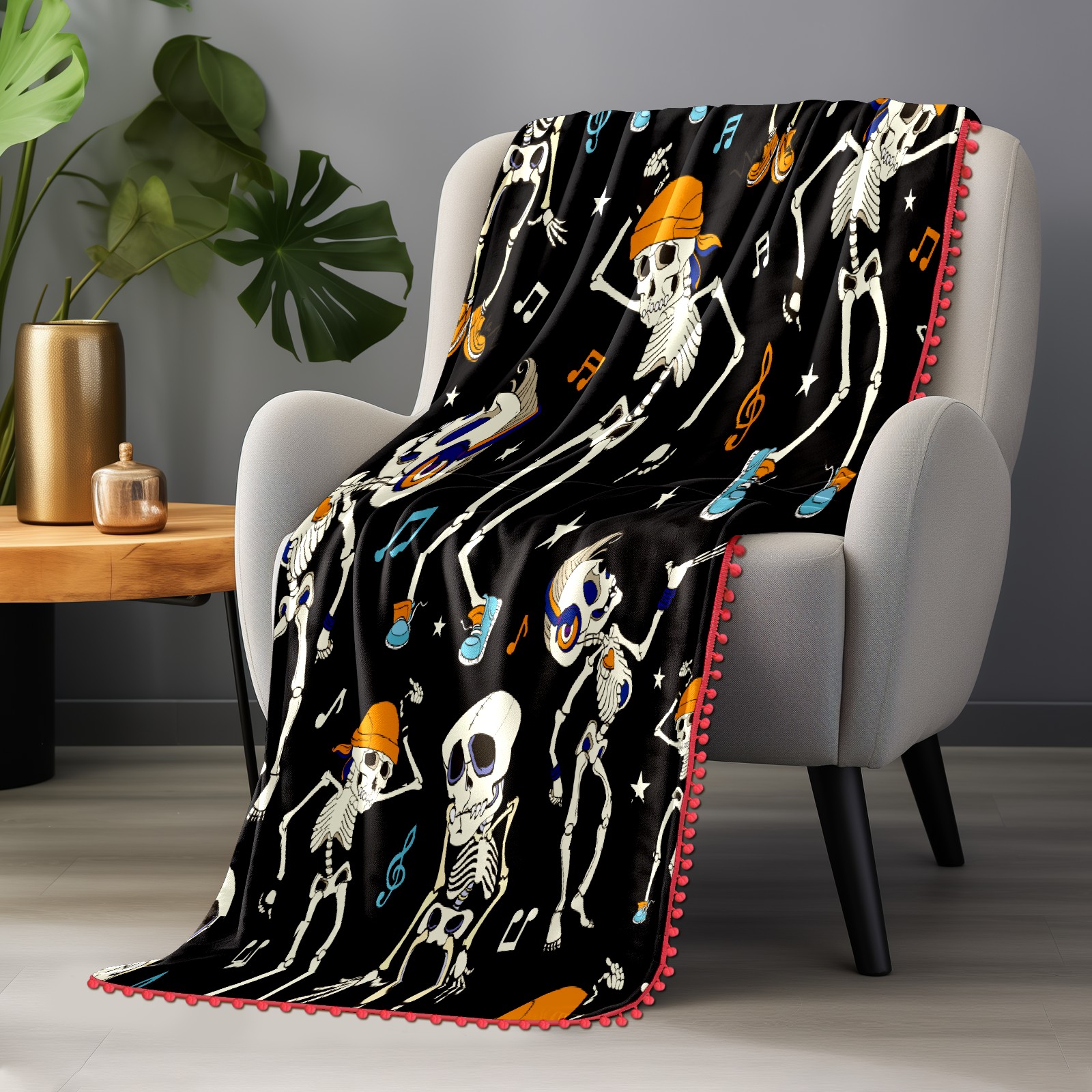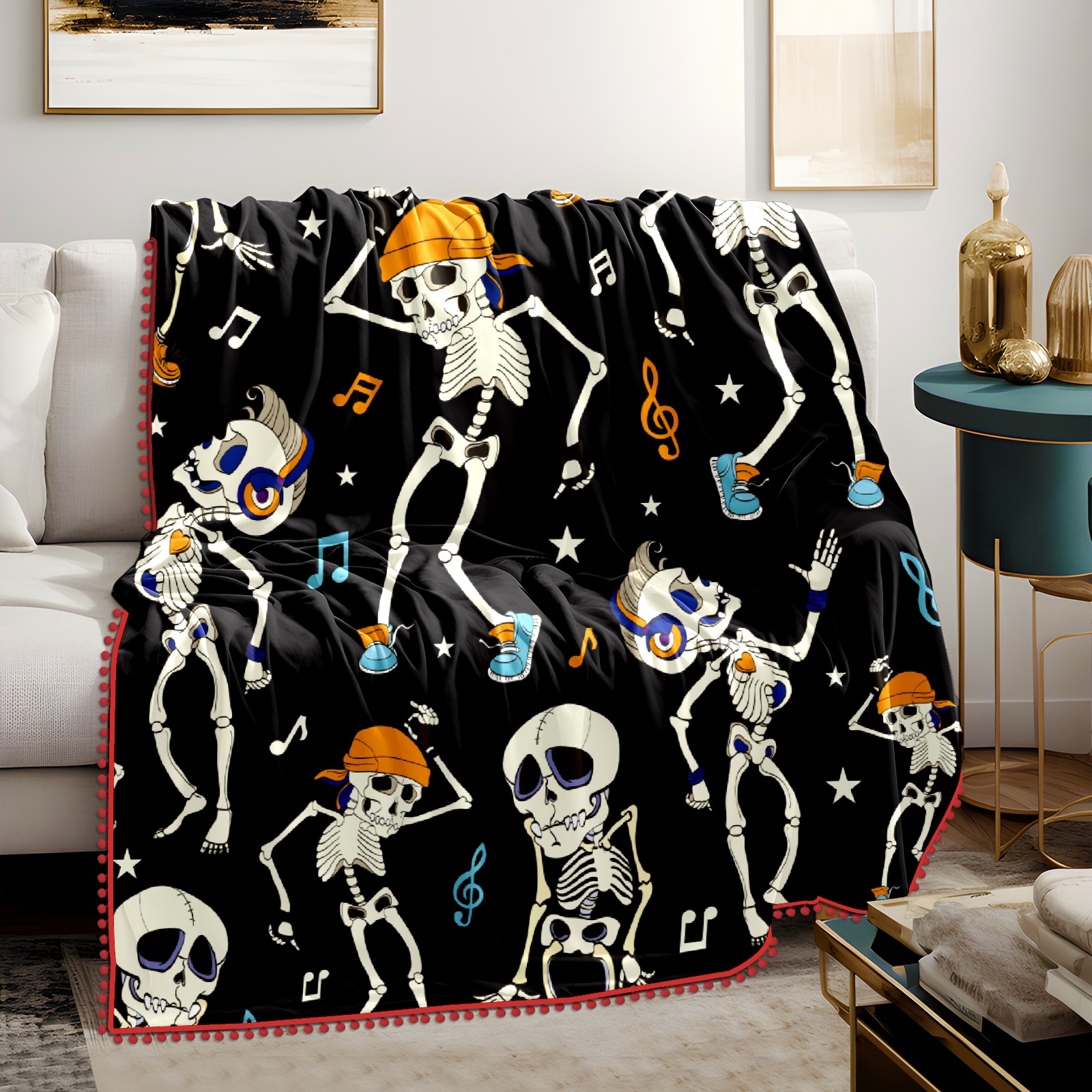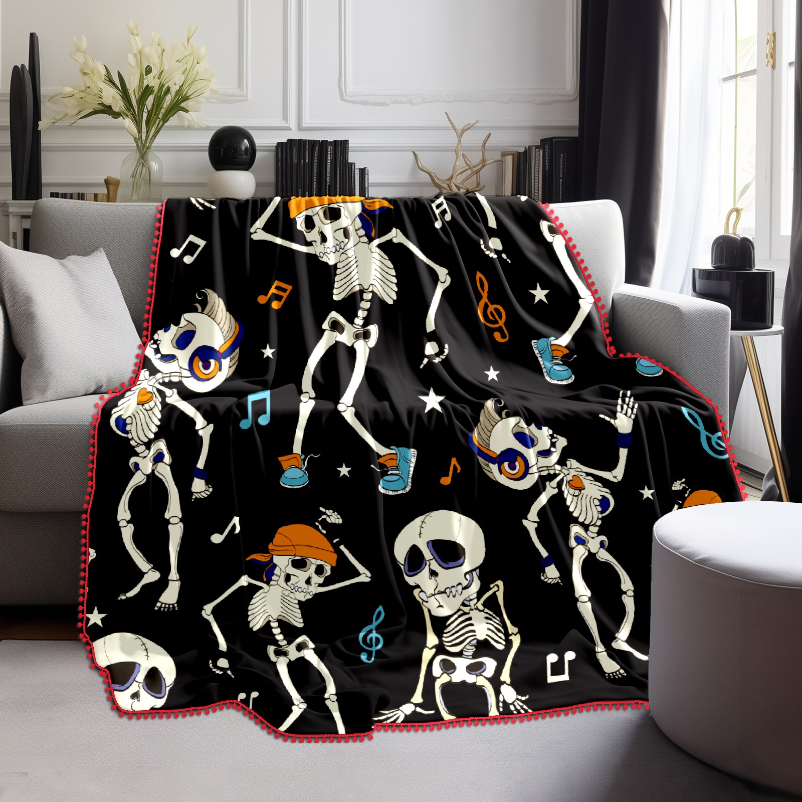 流苏毛毯 Funny Skeleton Dancing Musical Notes