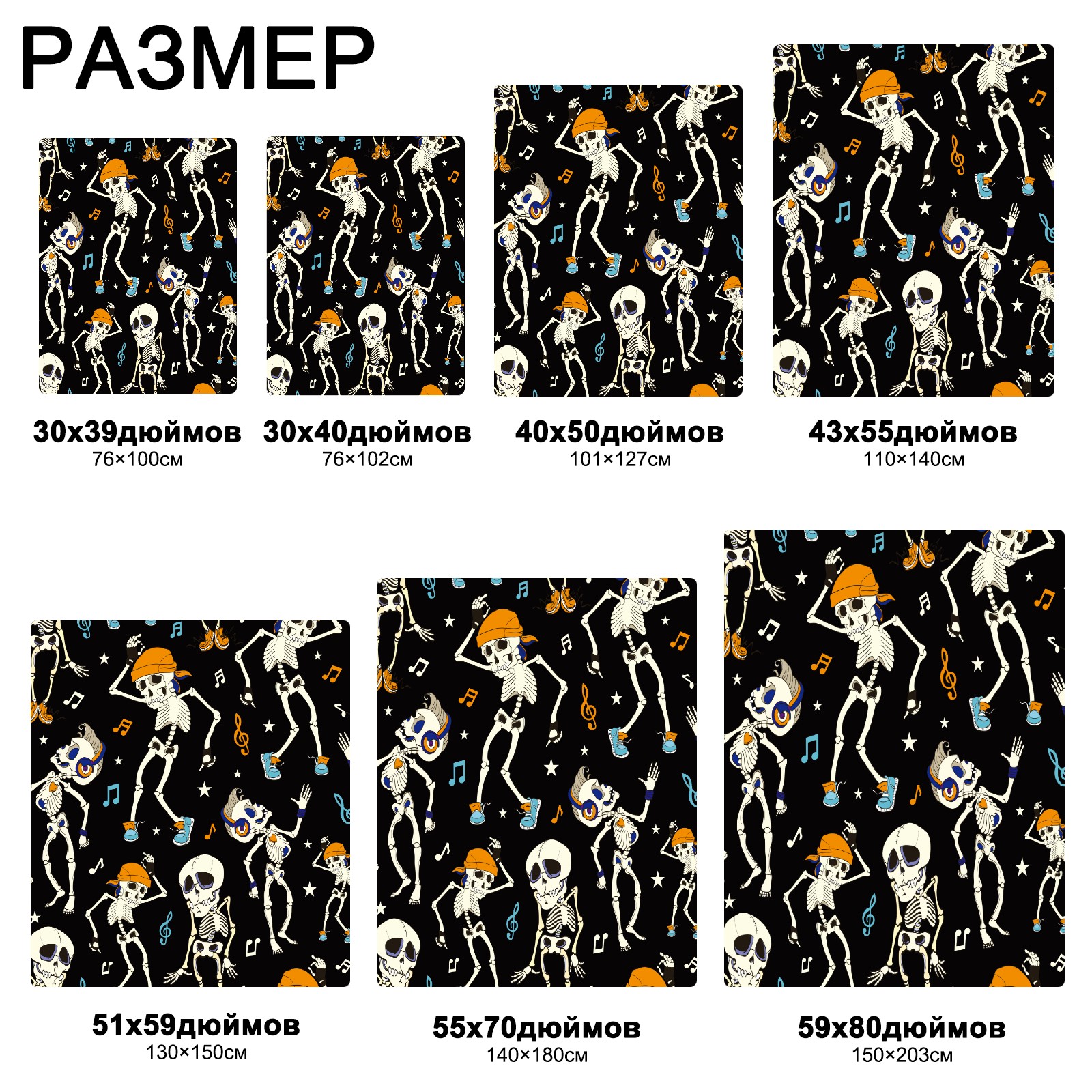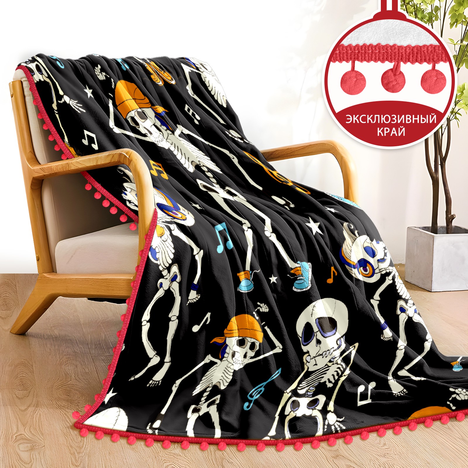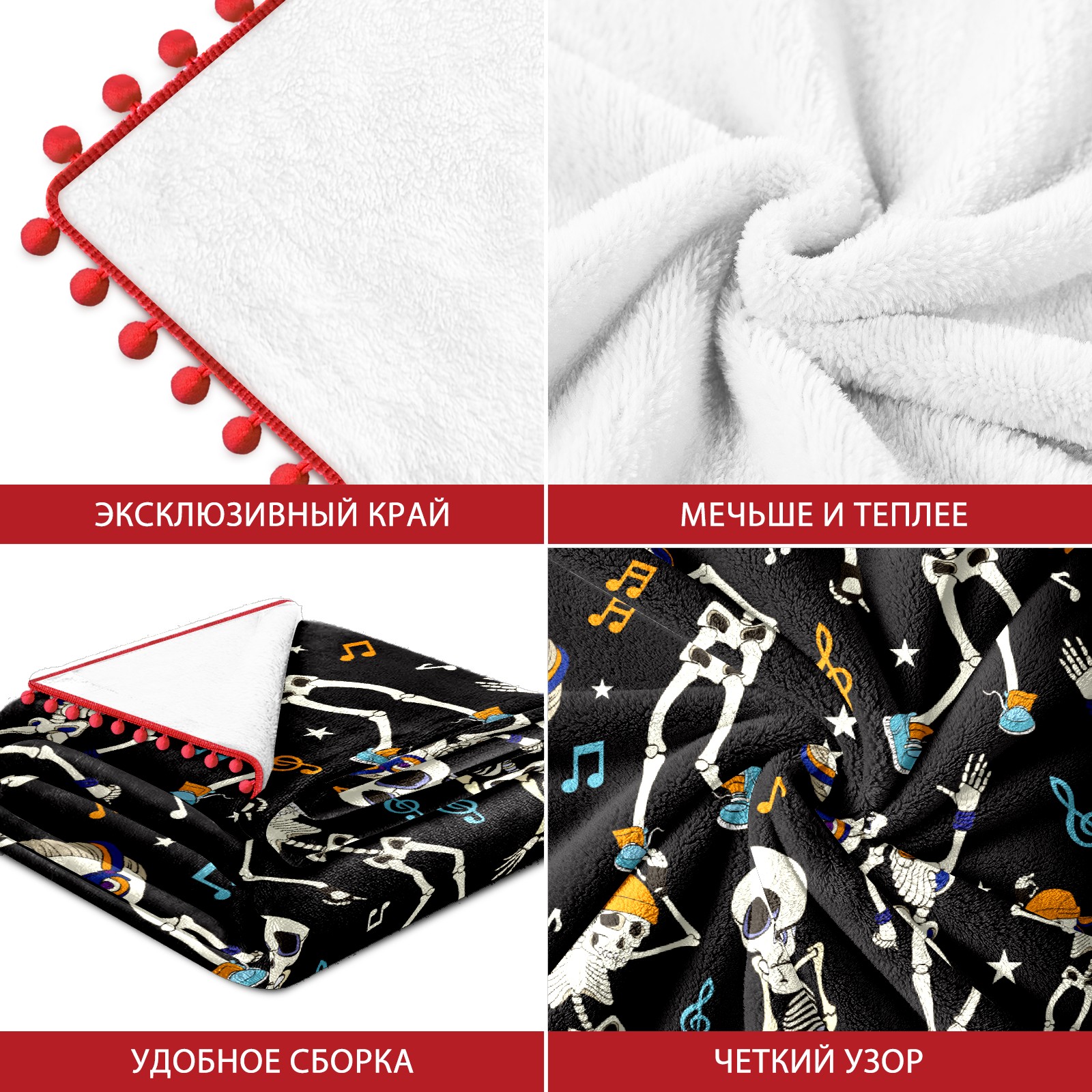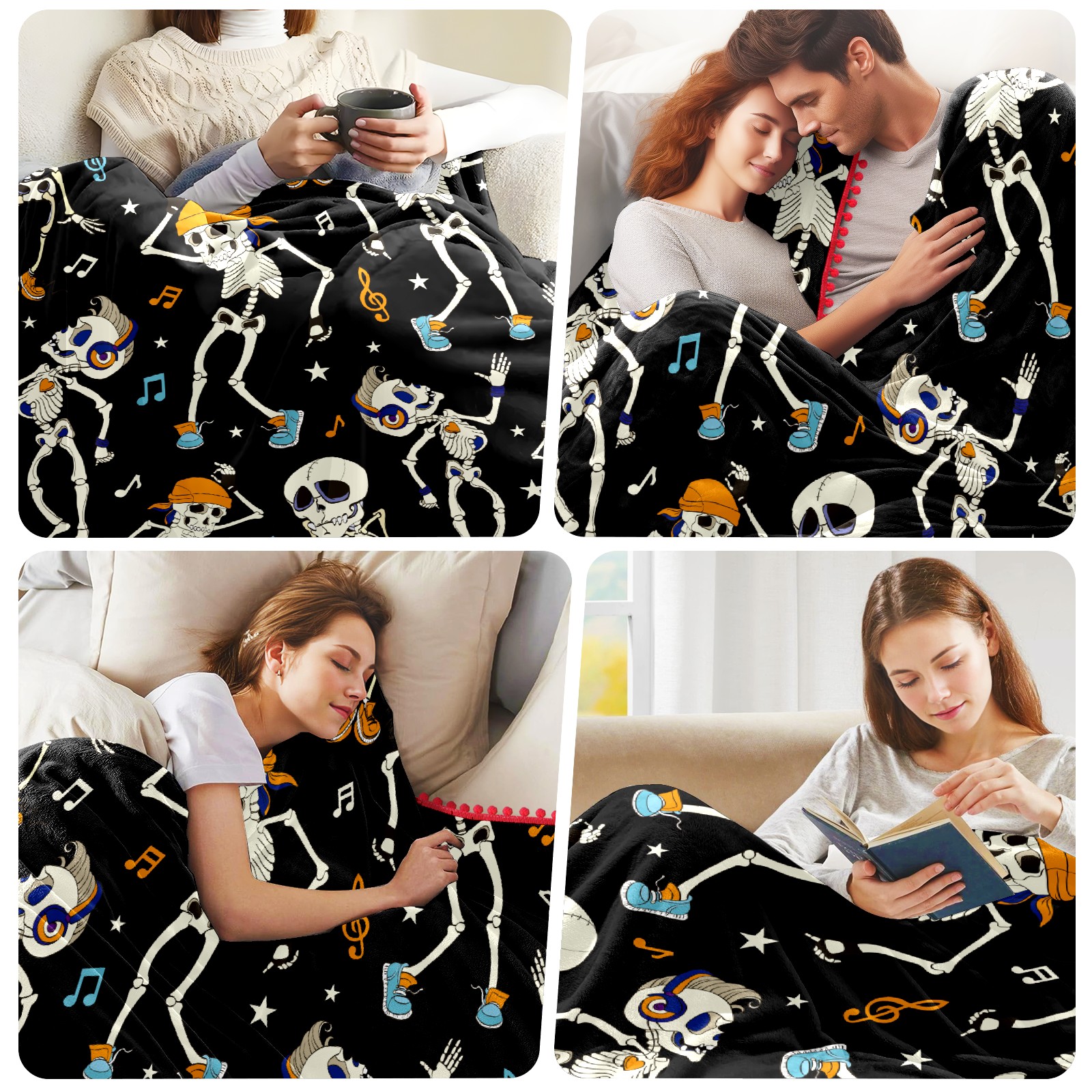 流苏毛毯 Funny Skeleton Dancing Musical Notes