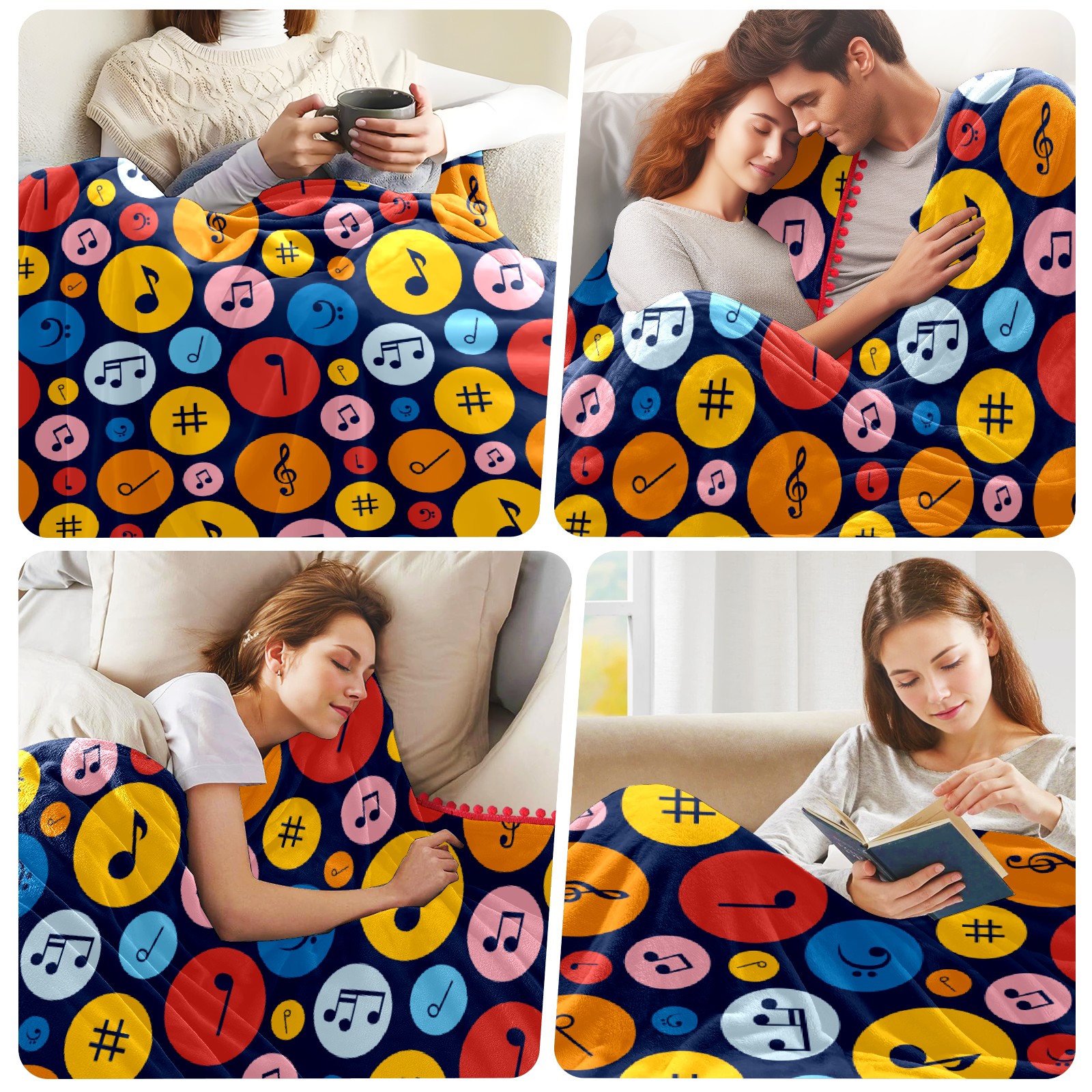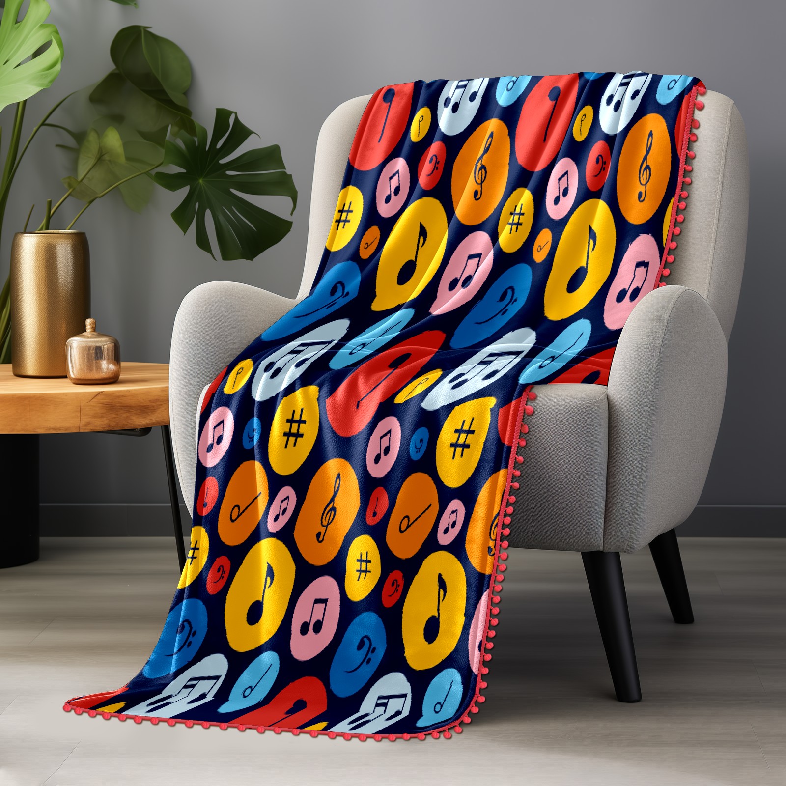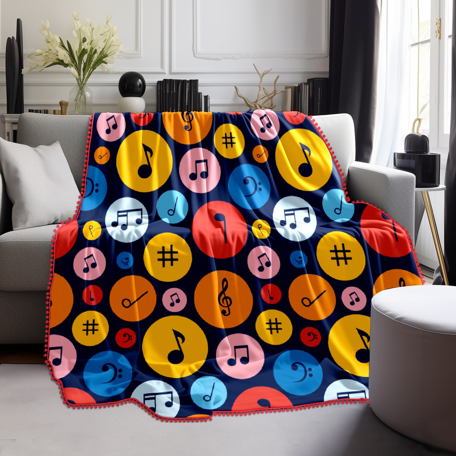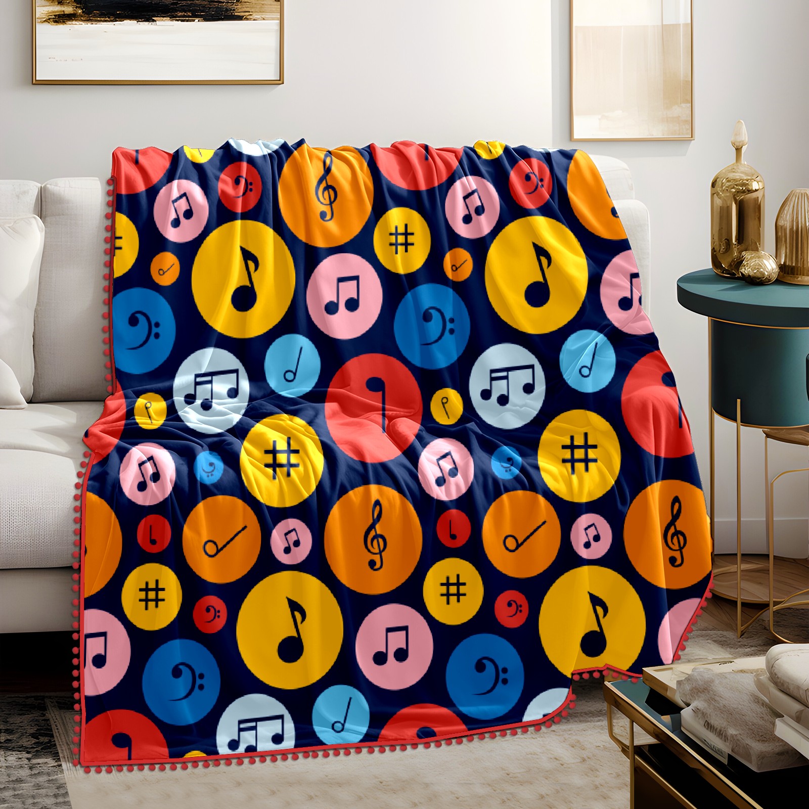 流苏毛毯 Colorful Musical Notes