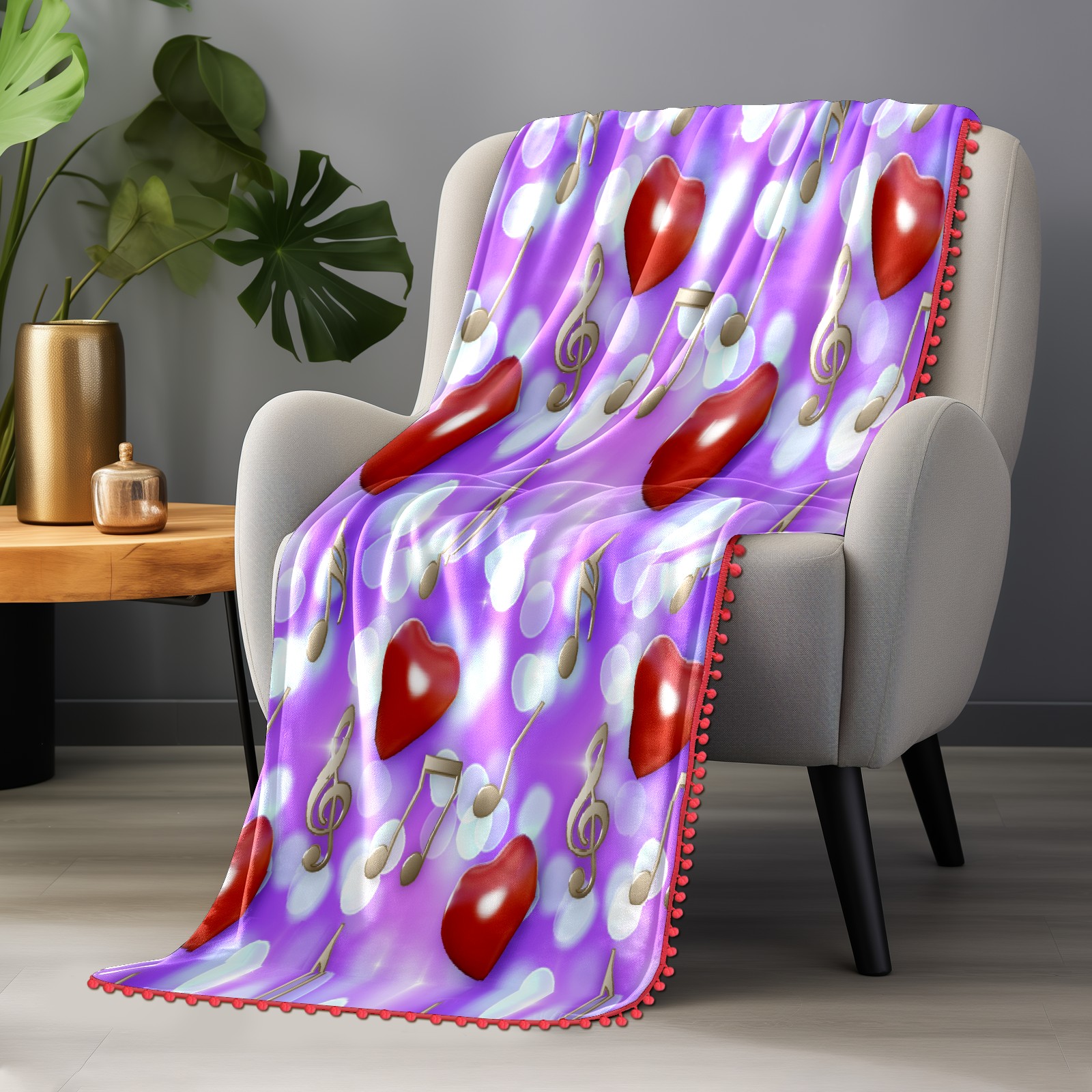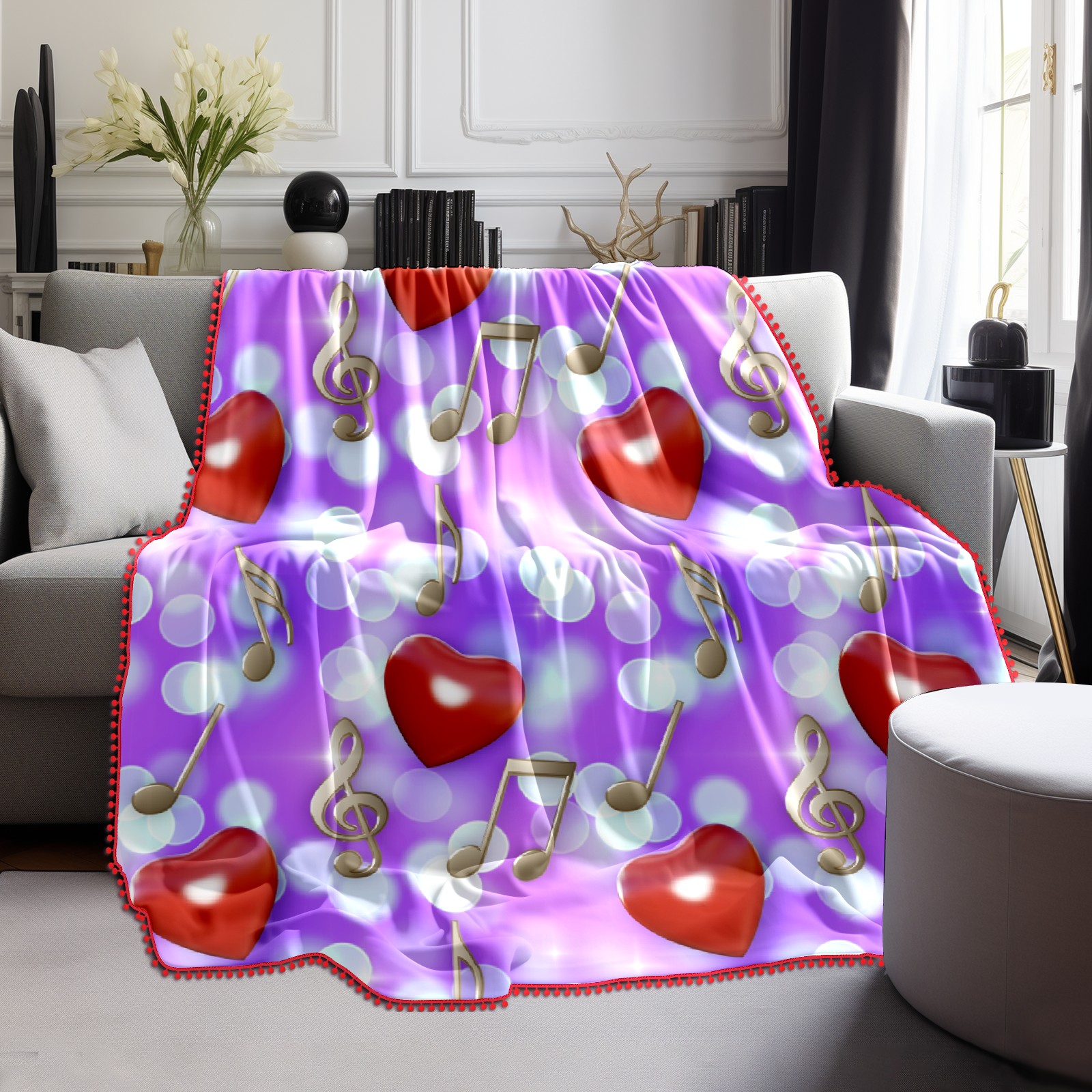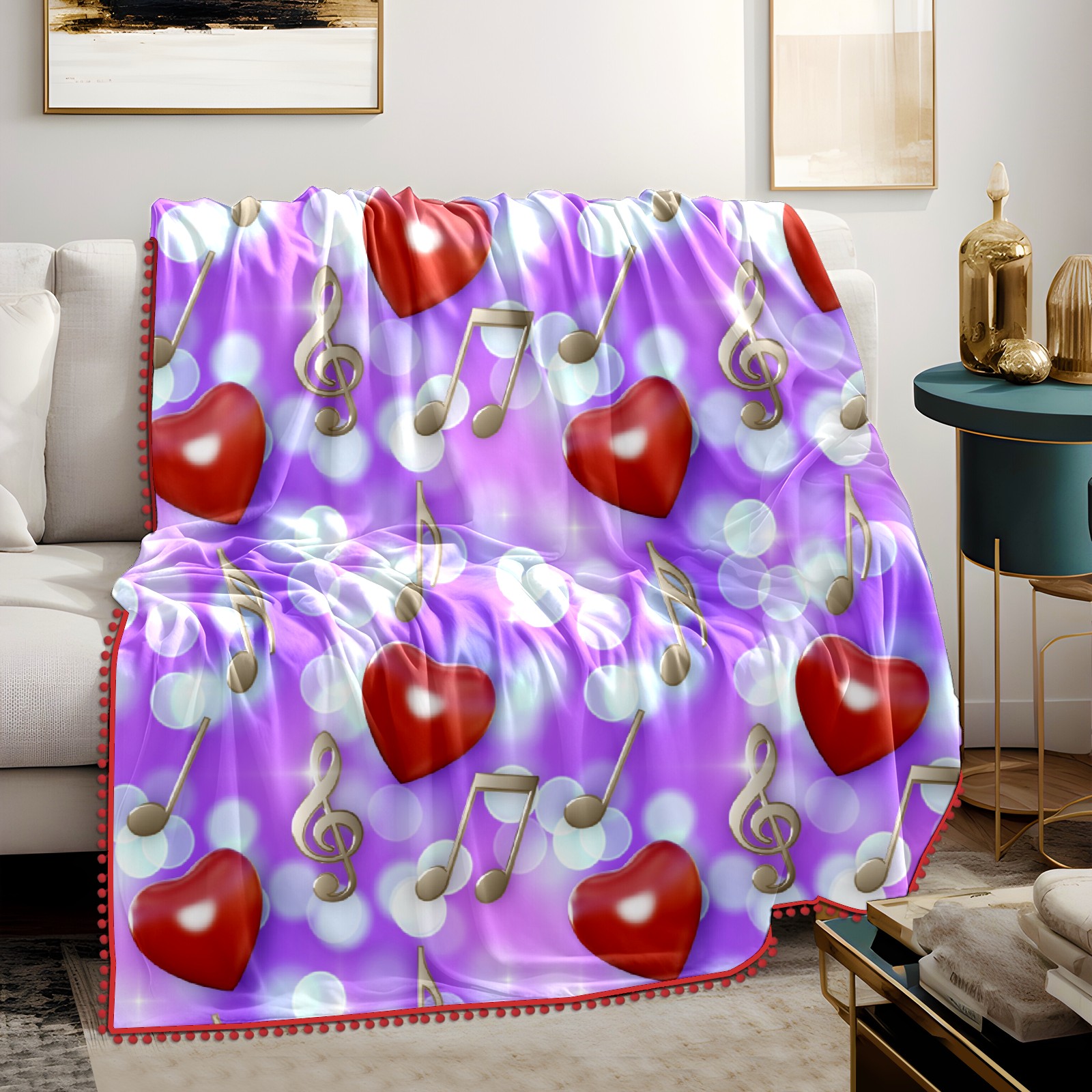 流苏毛毯 Hearts Music Notes
