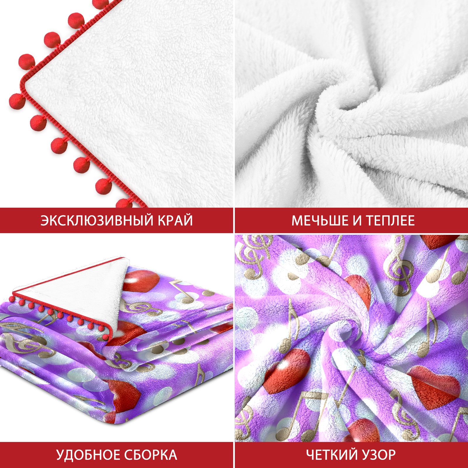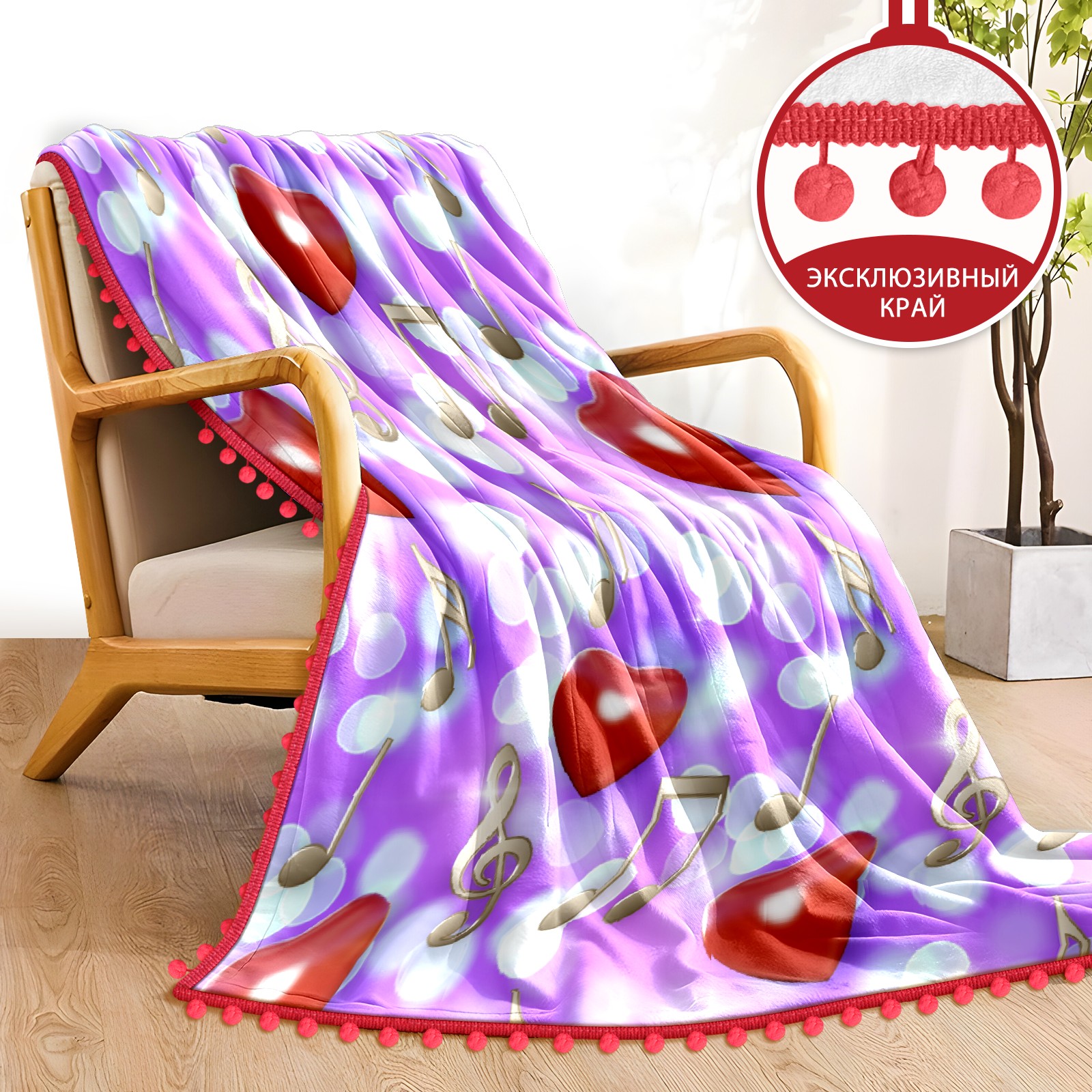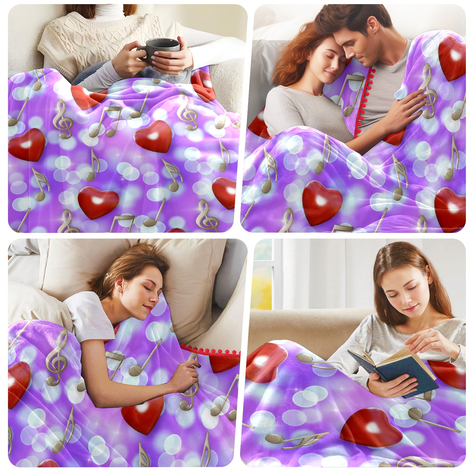 流苏毛毯 Hearts Music Notes