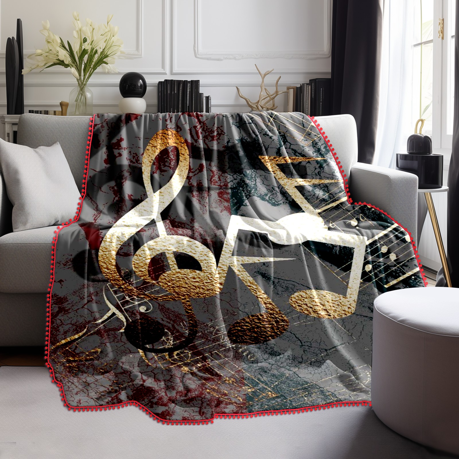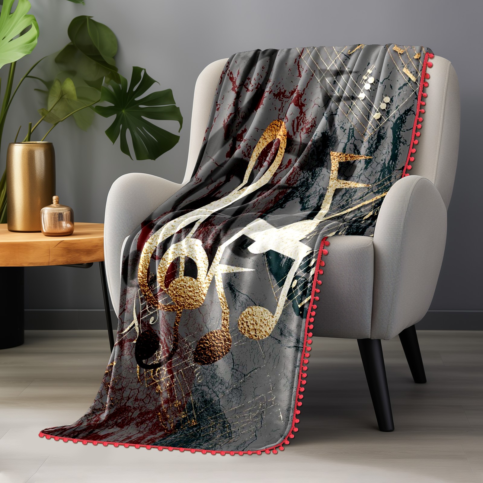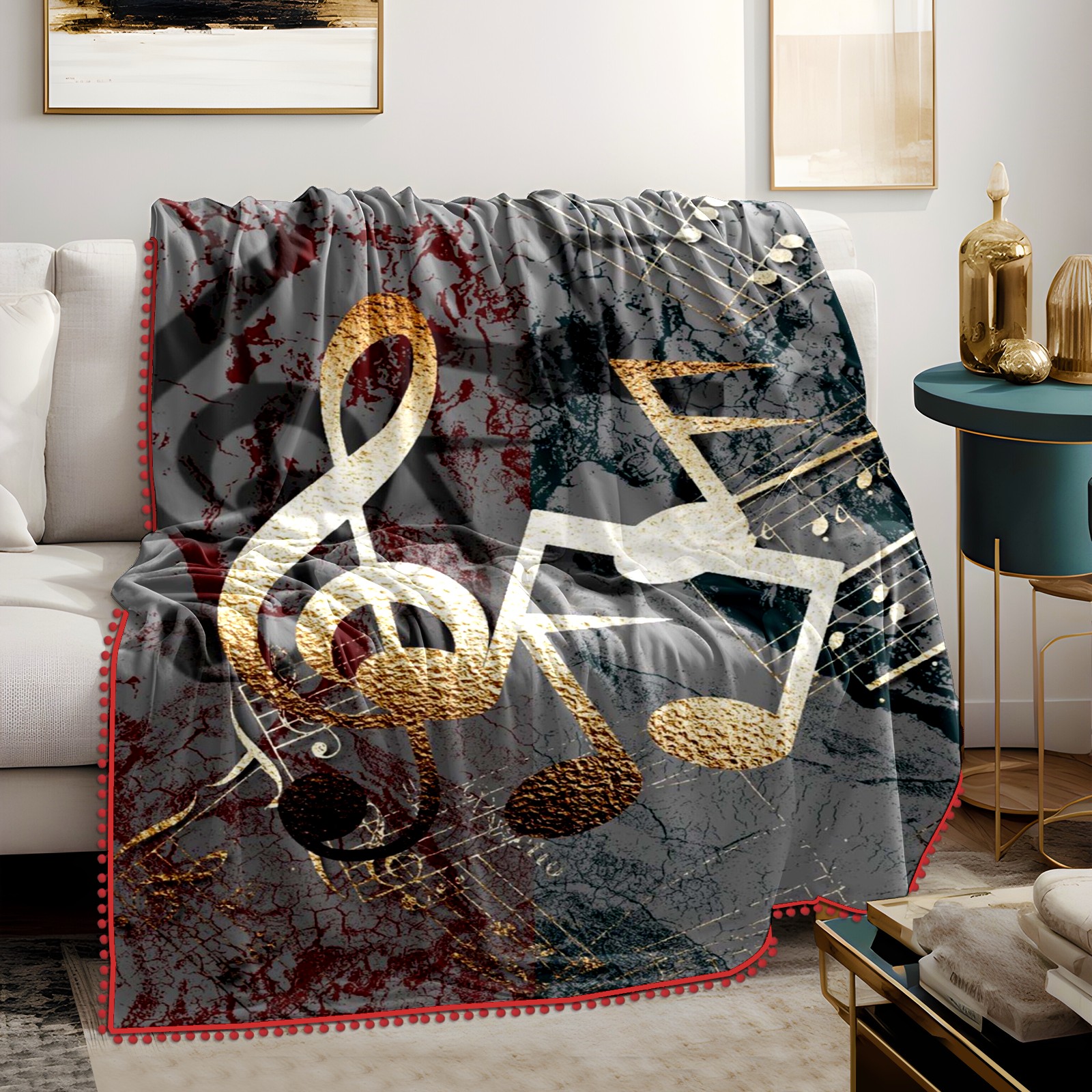 流苏毛毯 3D Gold Music Notes