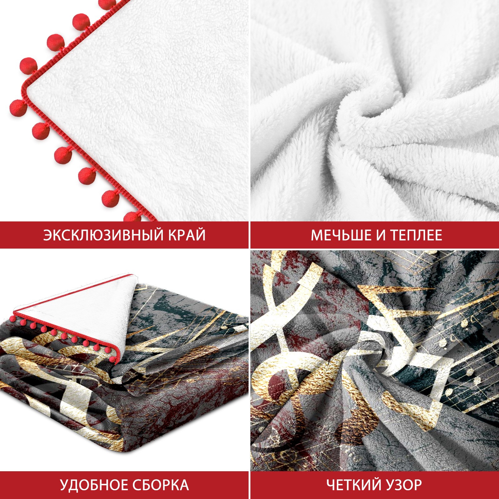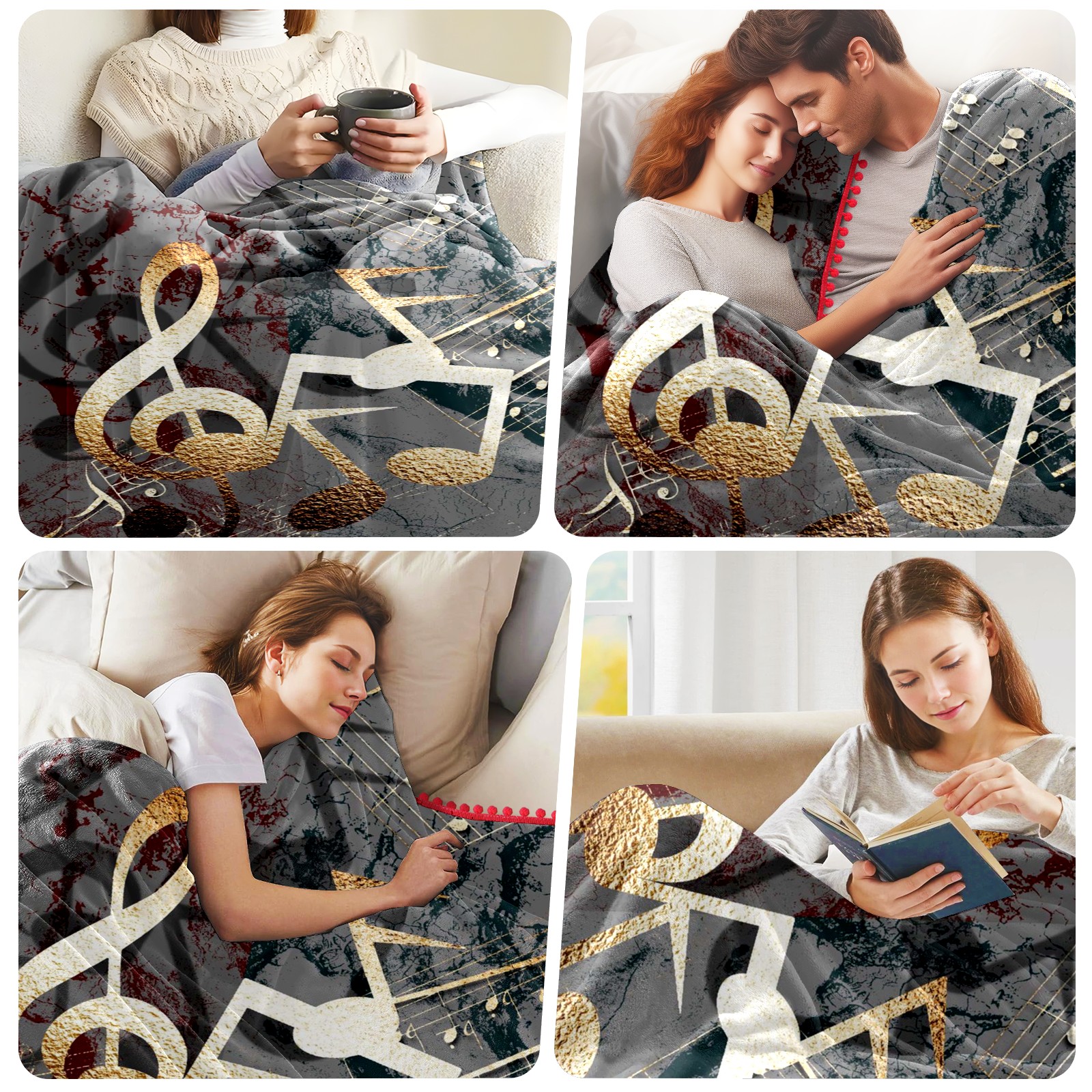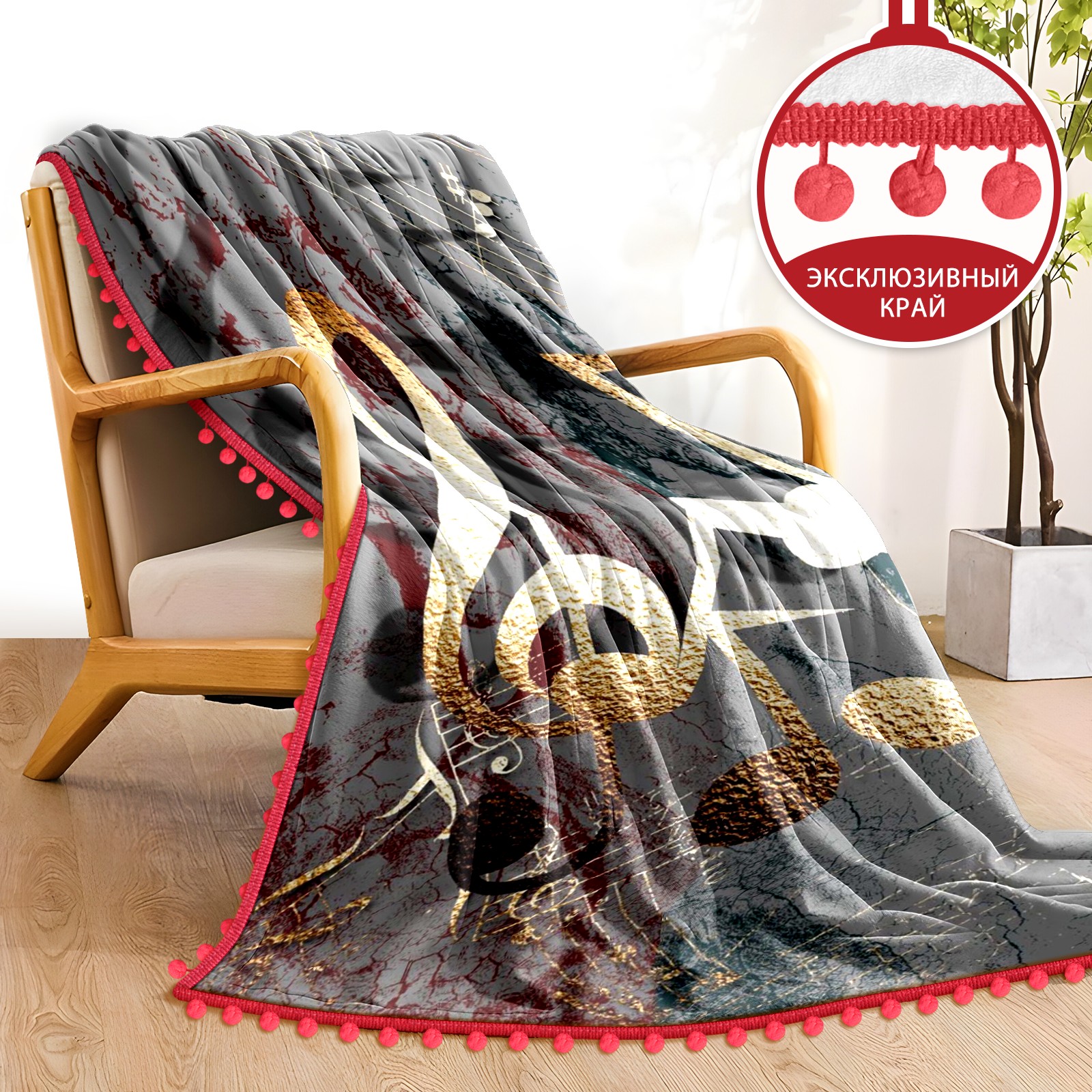 流苏毛毯 3D Gold Music Notes