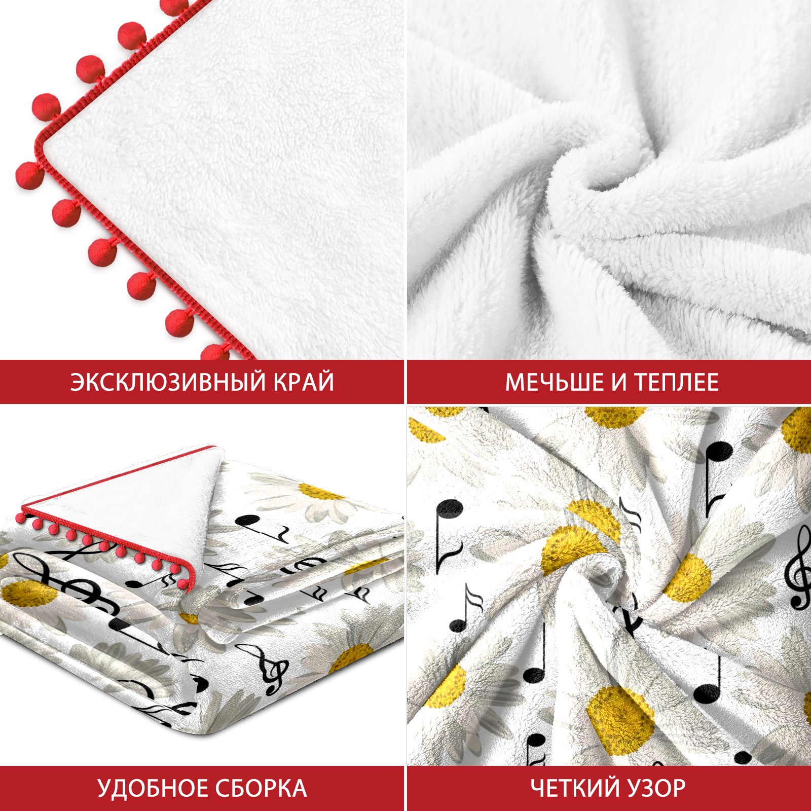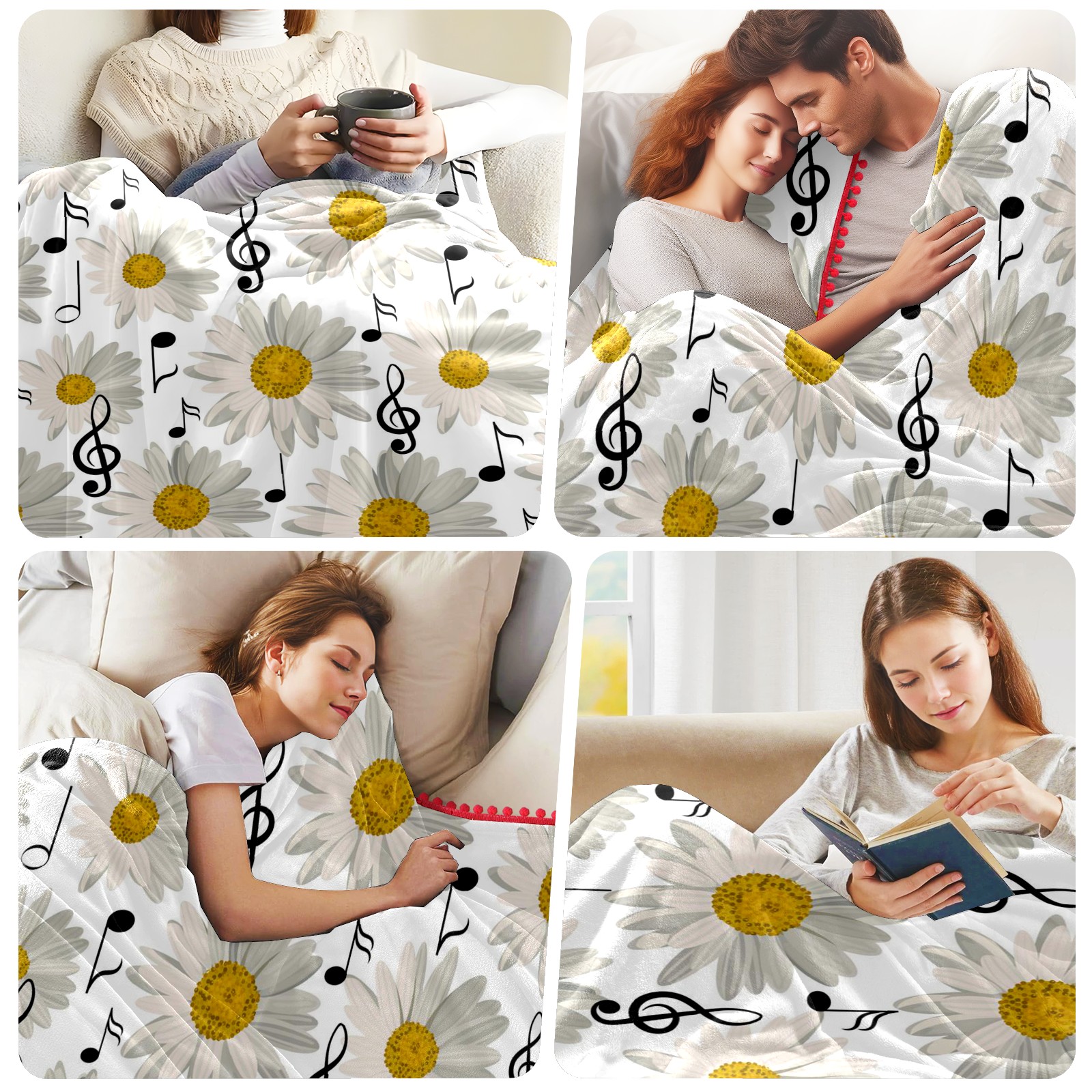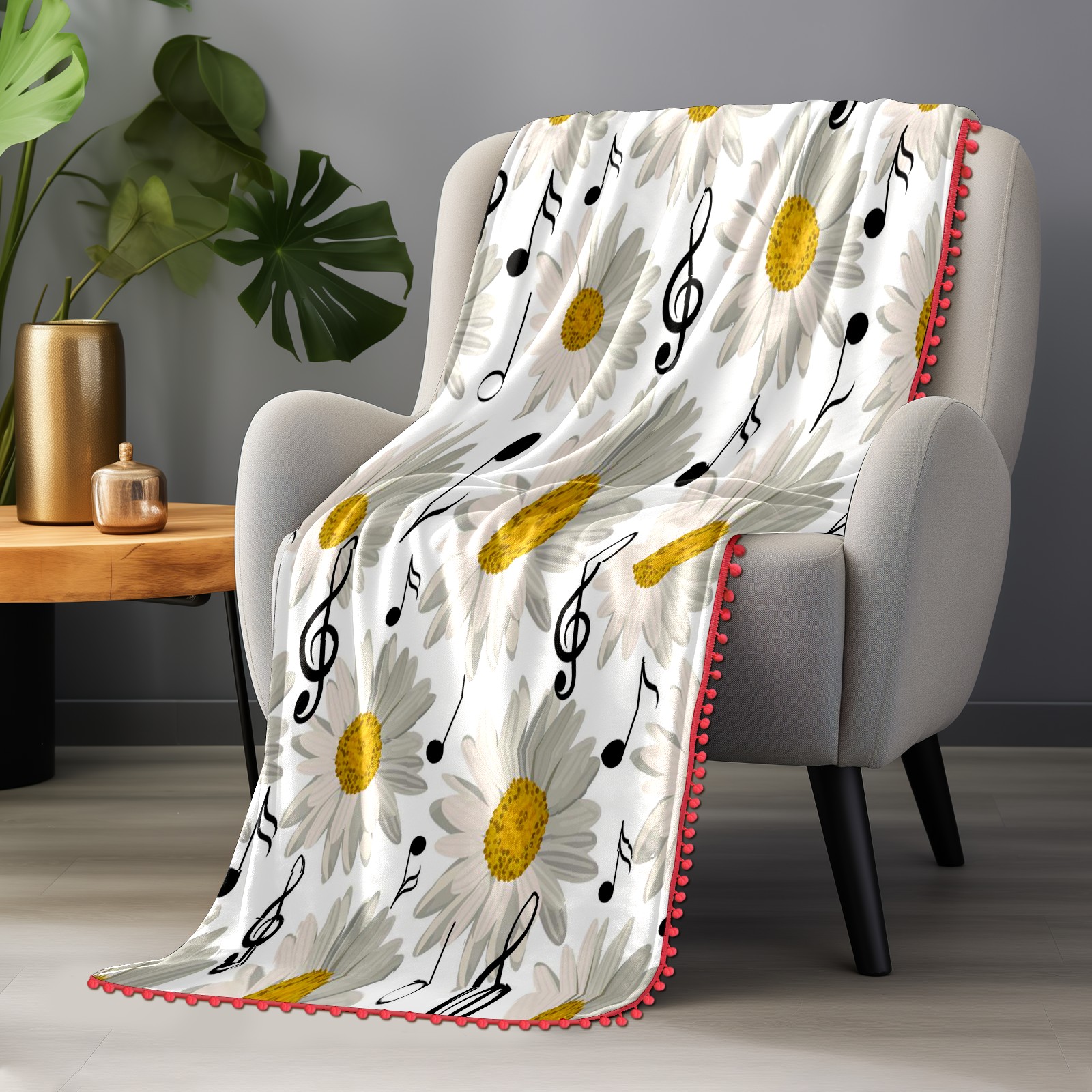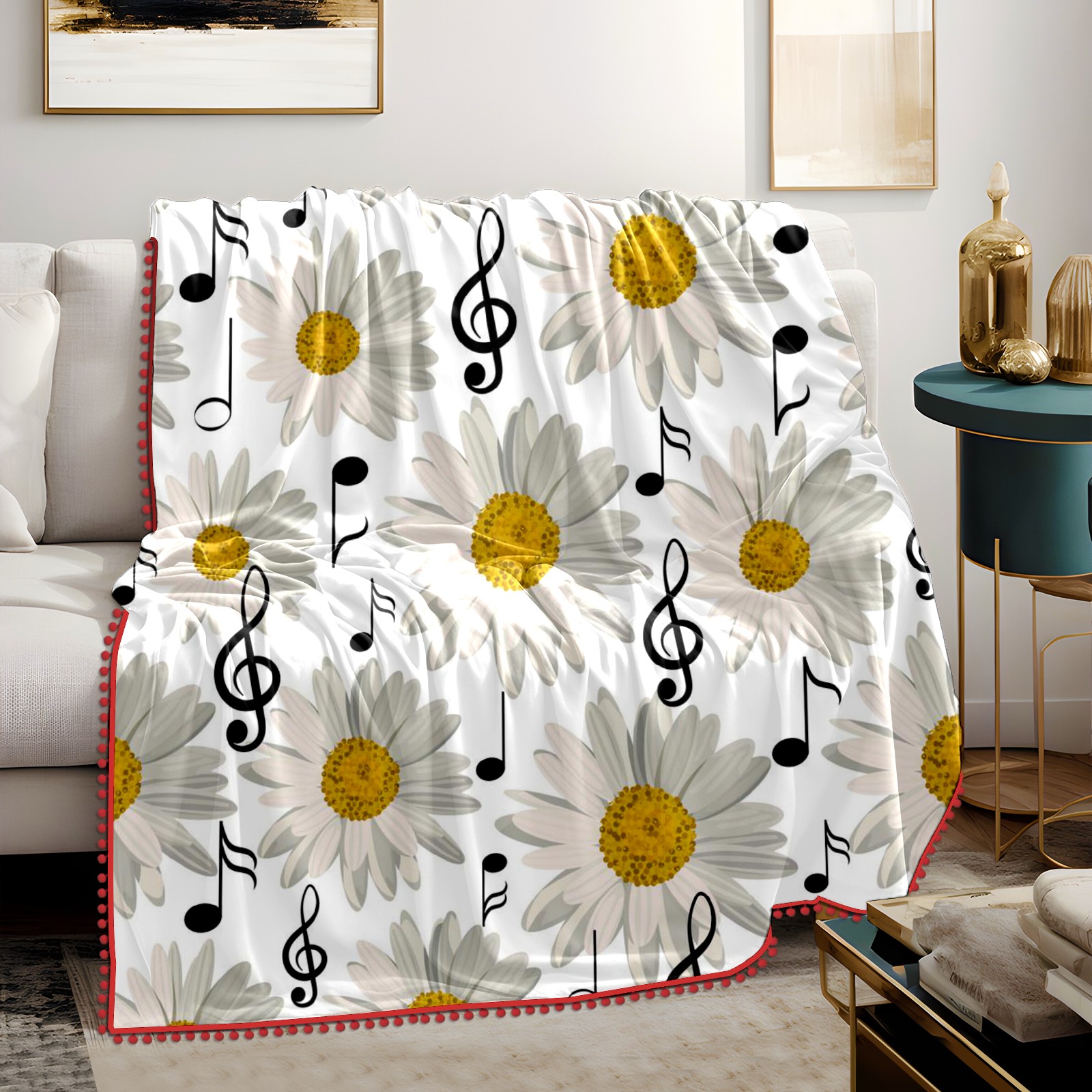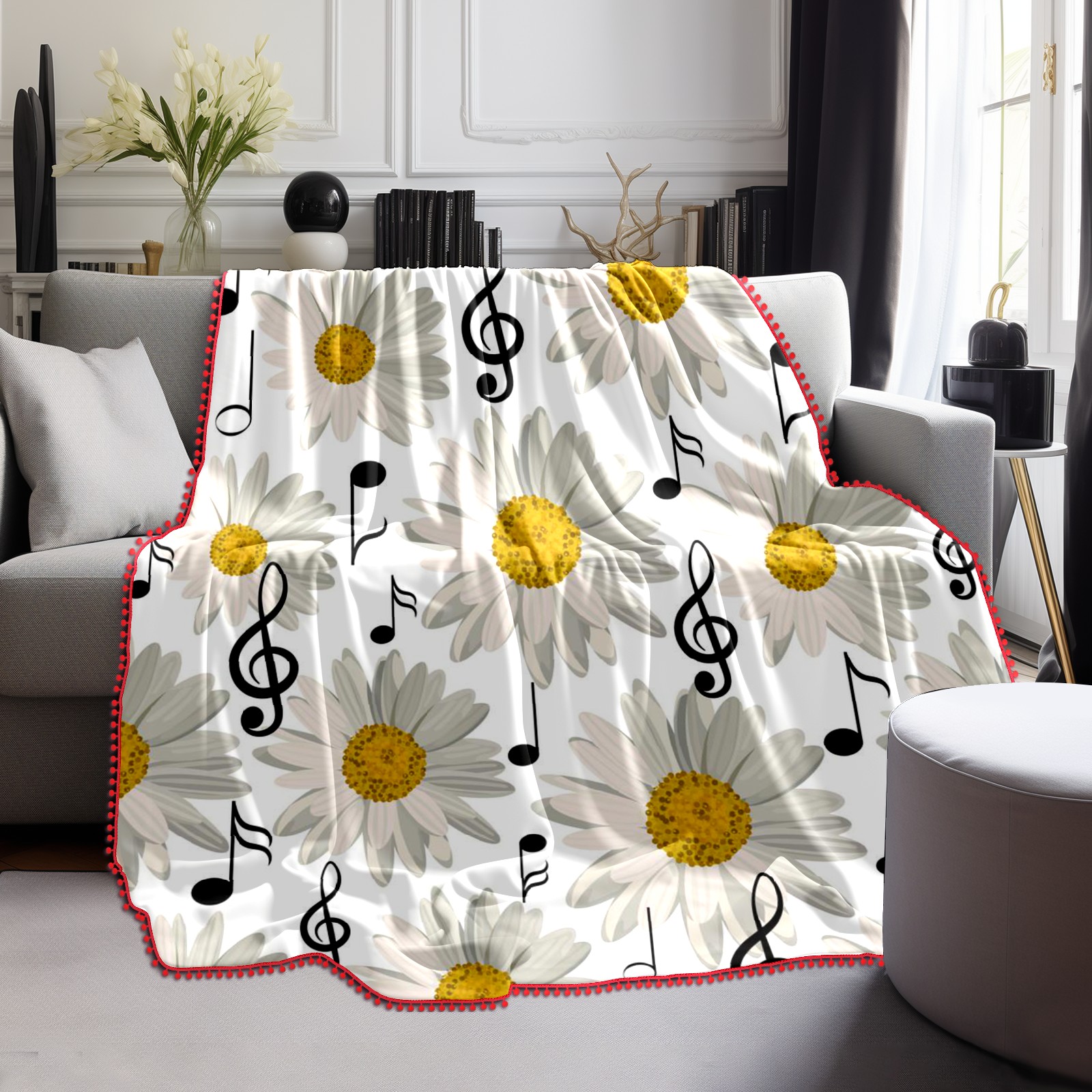 流苏毛毯 Music Notes And Daisy