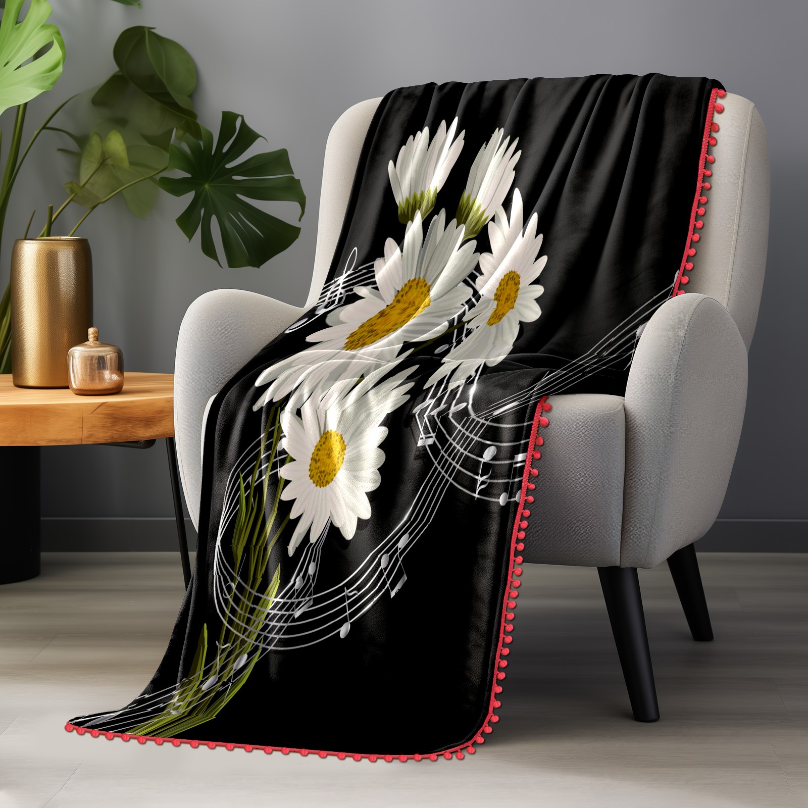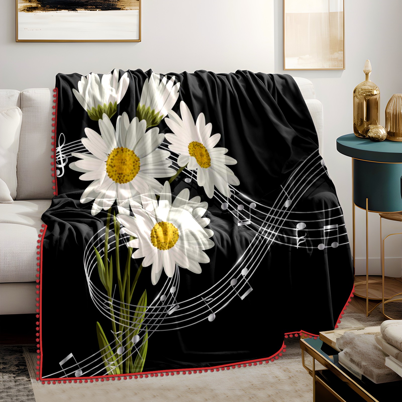 流苏毛毯 Daisy And Music Notes