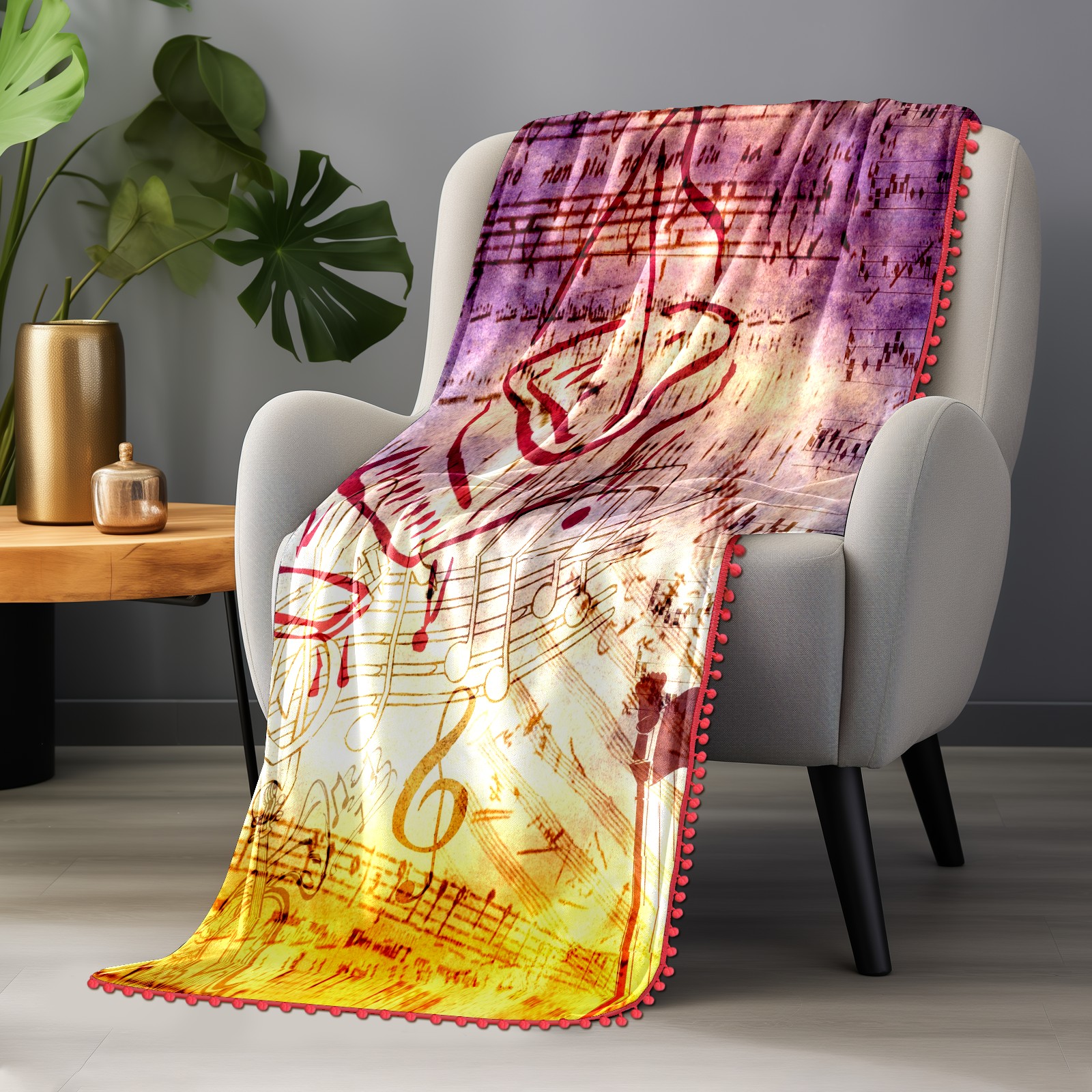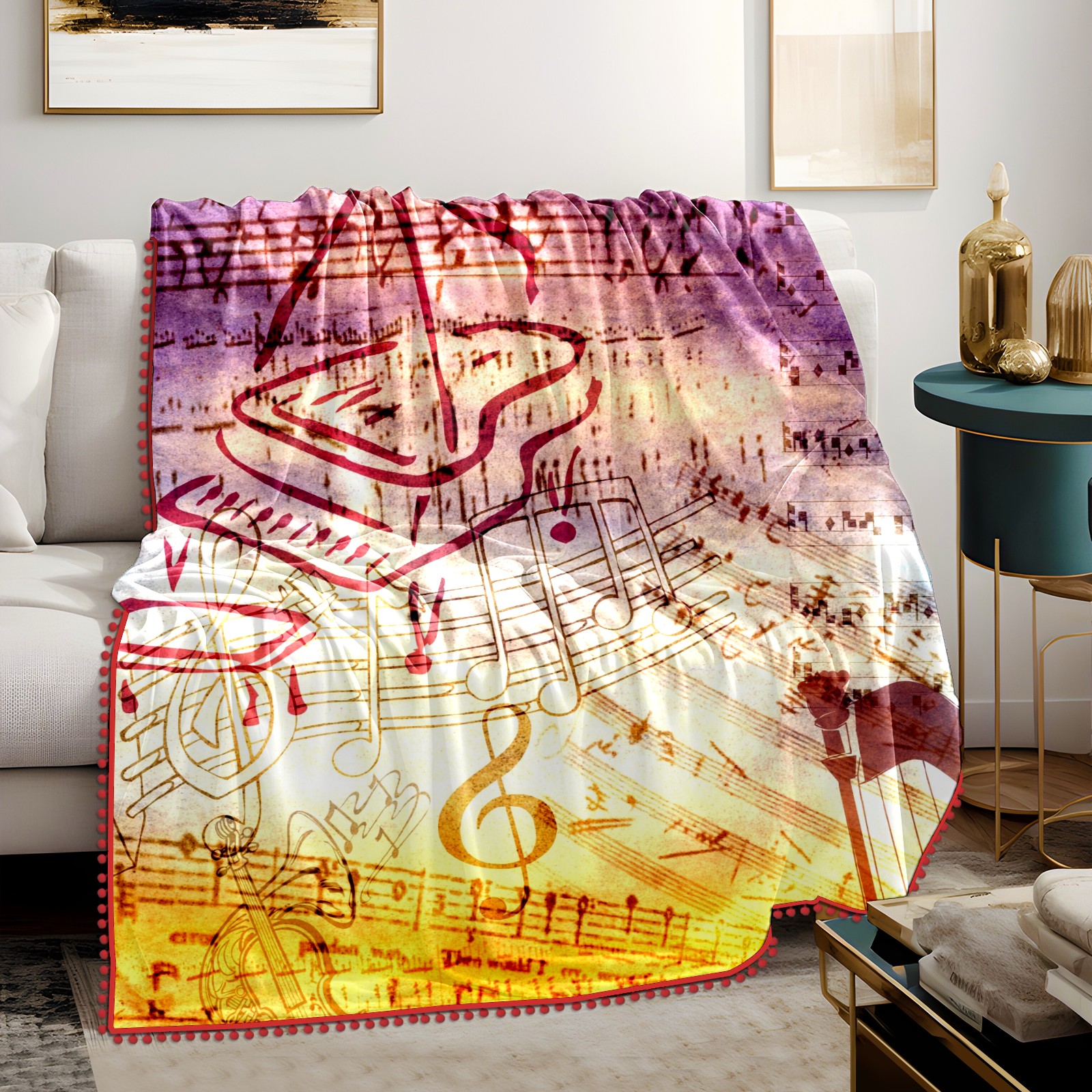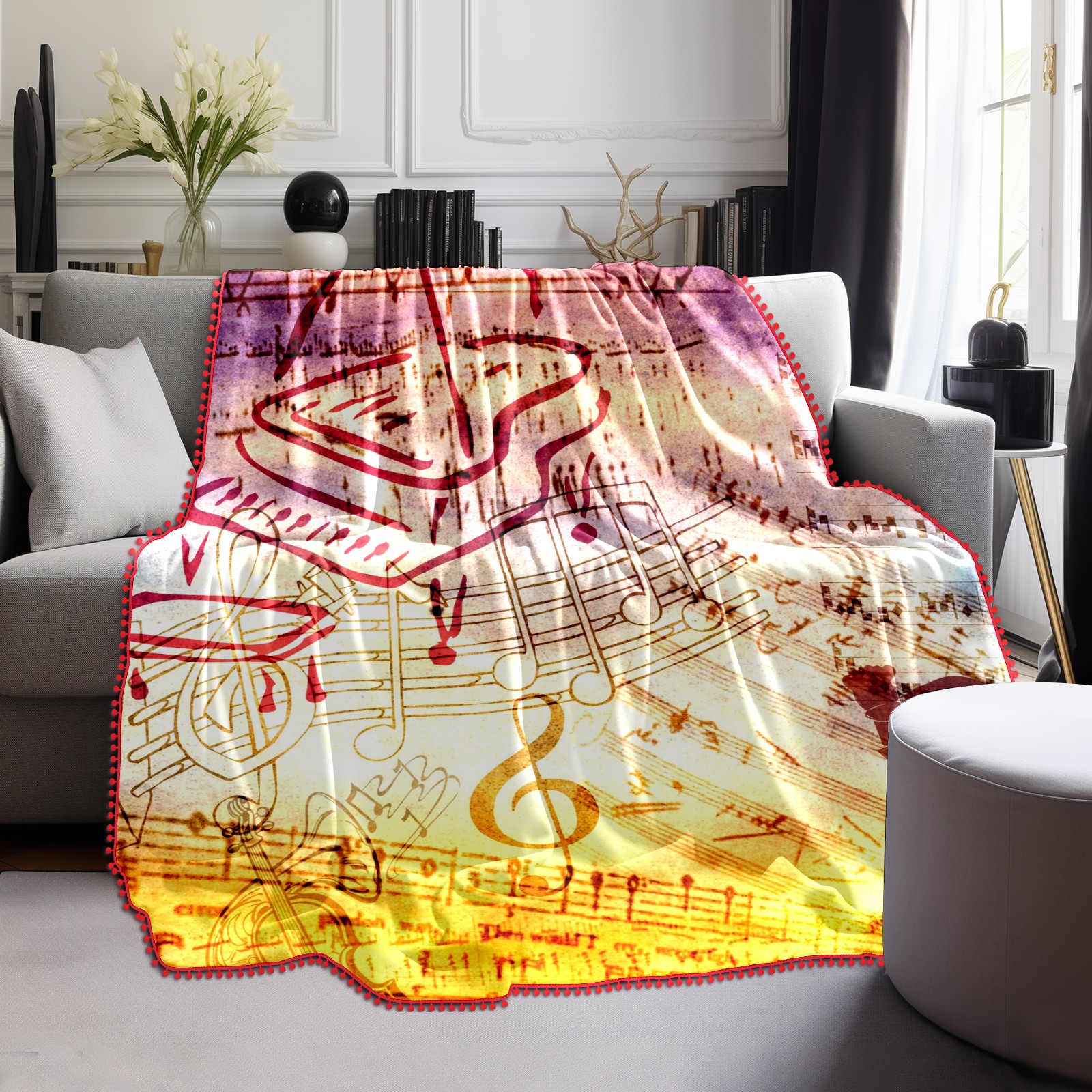 流苏毛毯 Vintage Music Notes Old