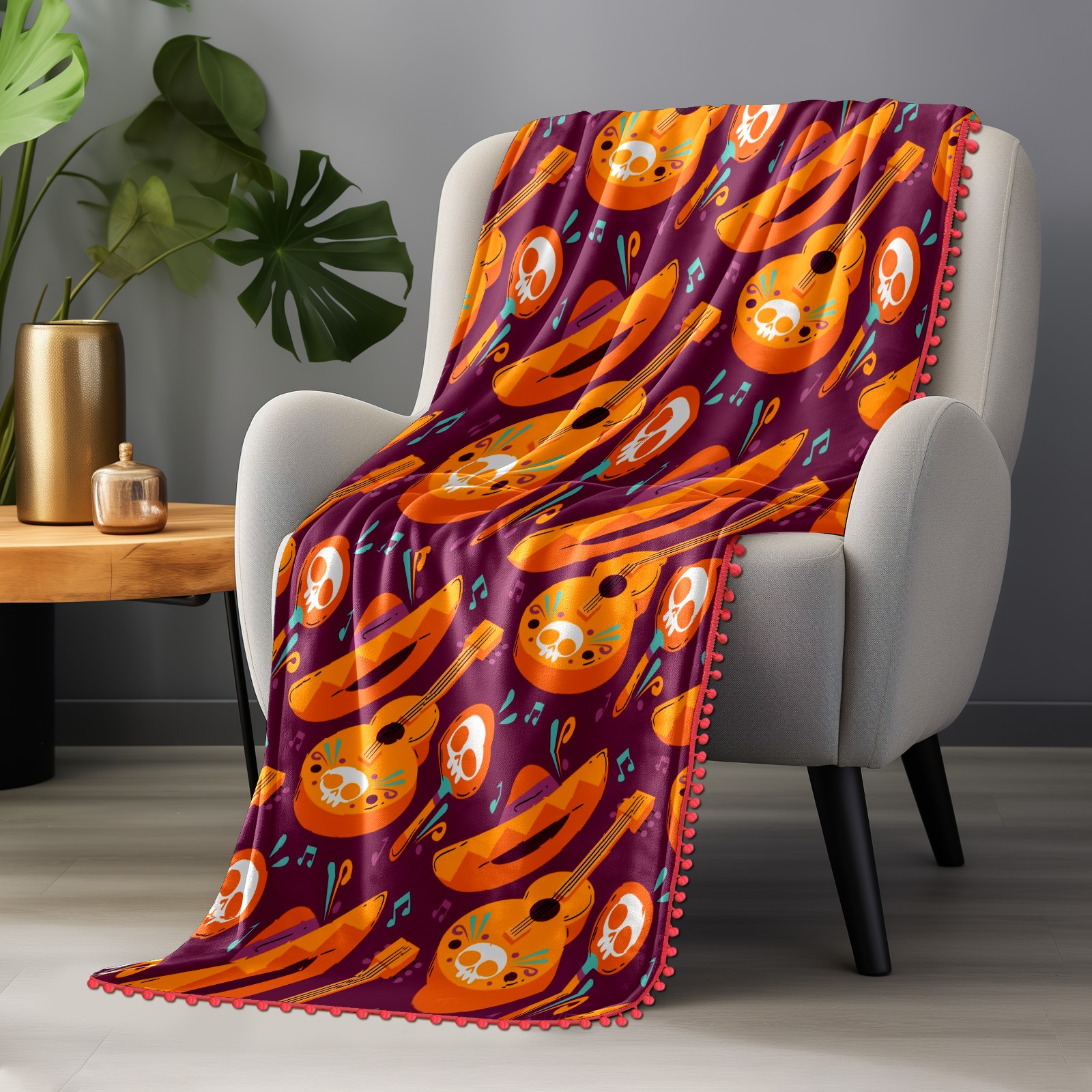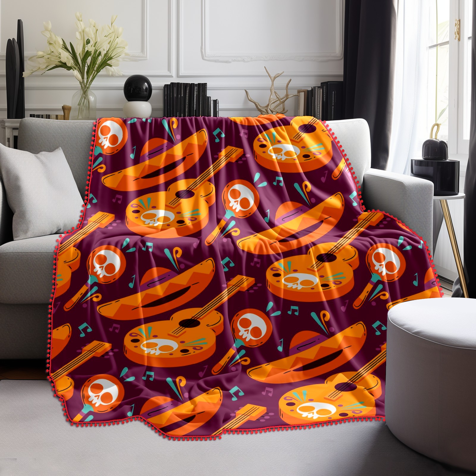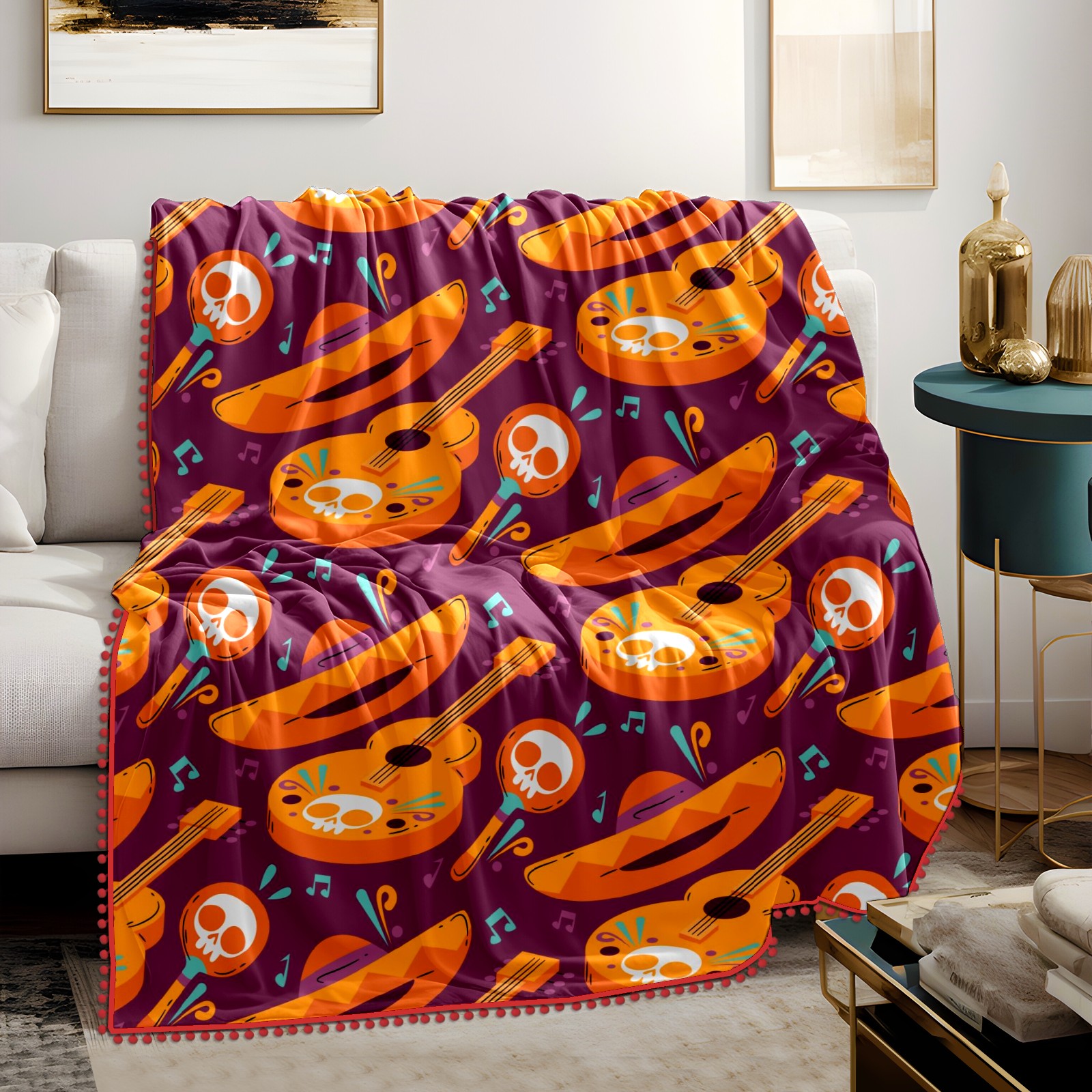 流苏毛毯 Mexican Sull Violin Cap Music Notes