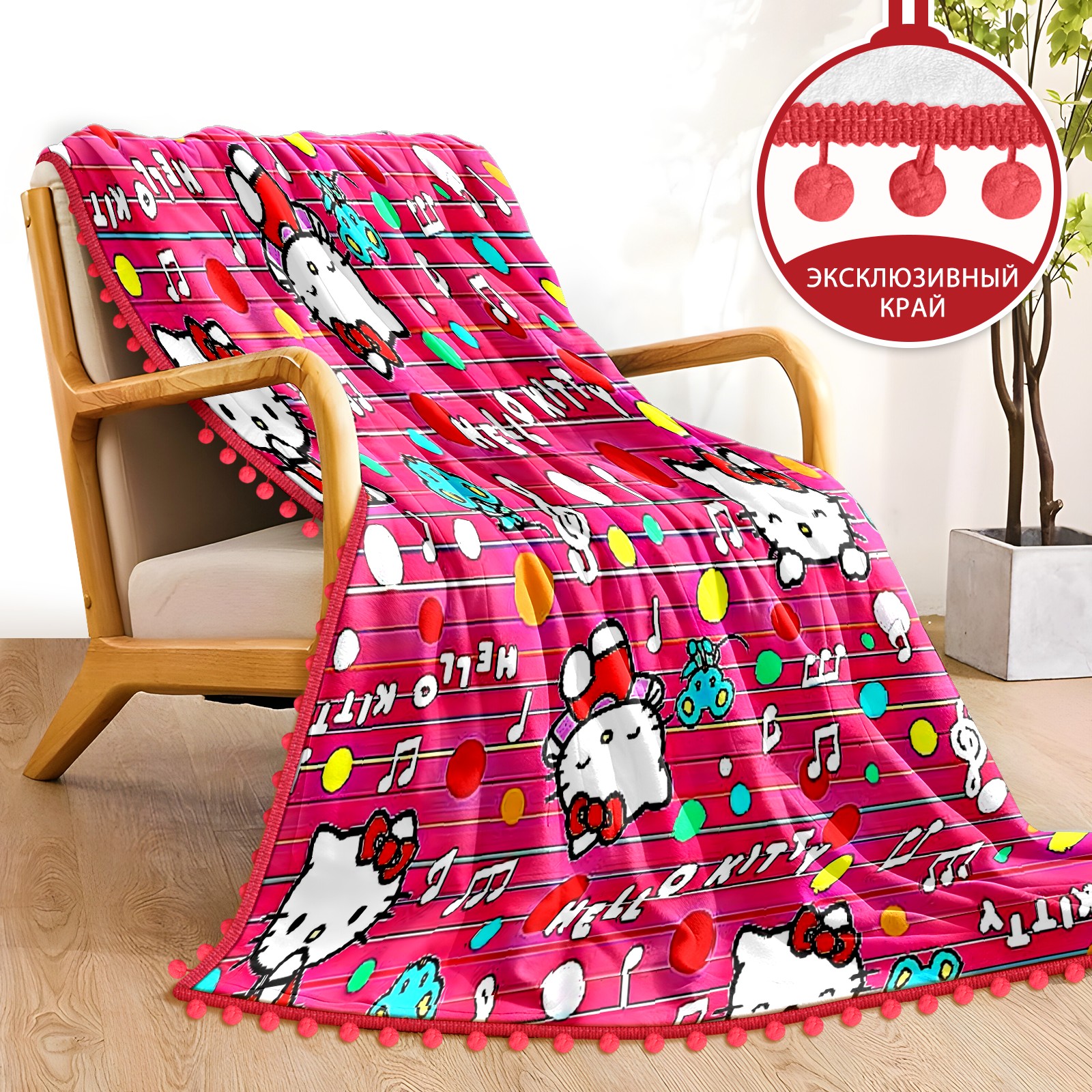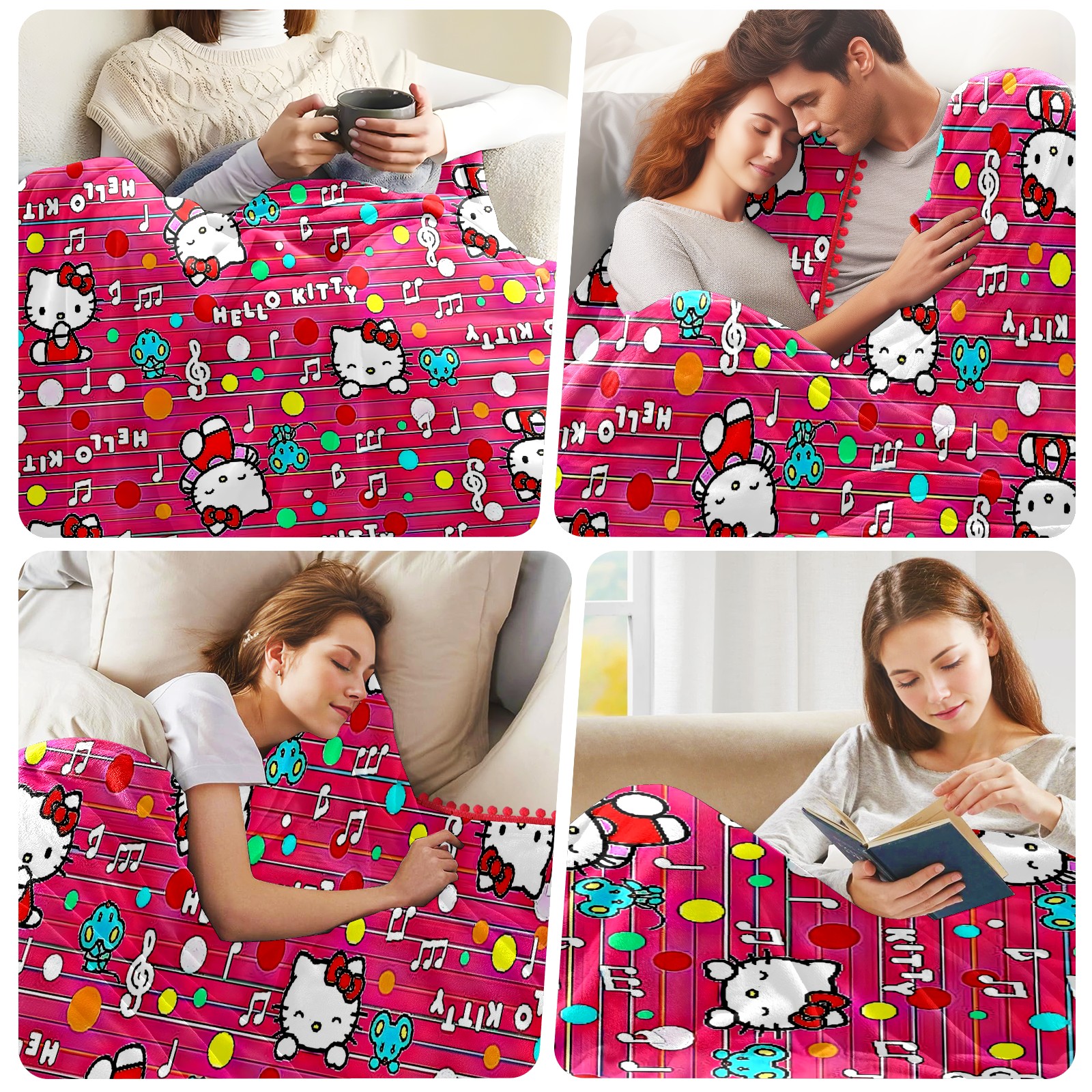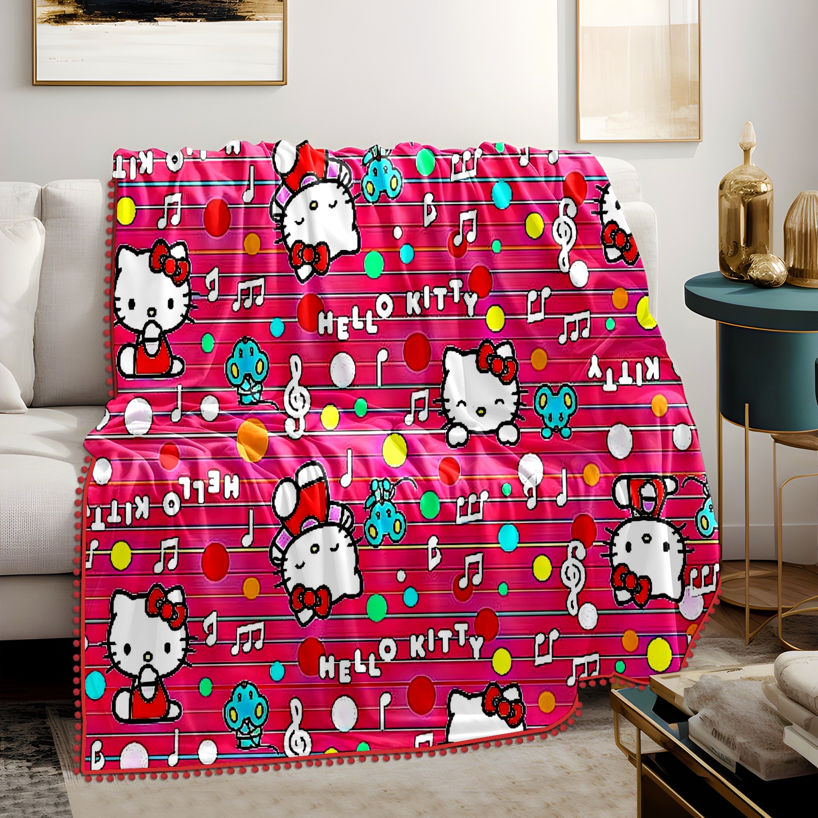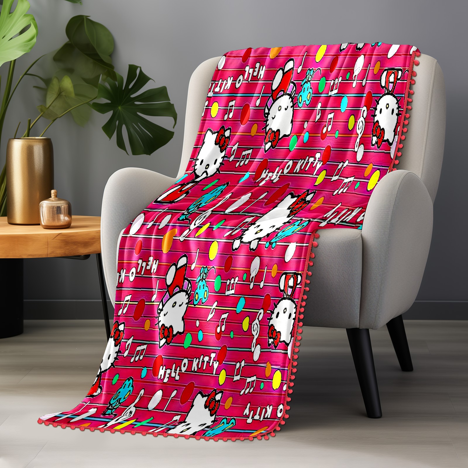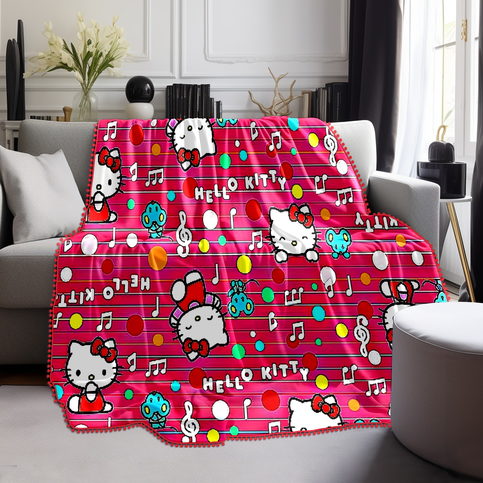 流苏毛毯 Hello Kitty Cat Pink Music Notes Background
