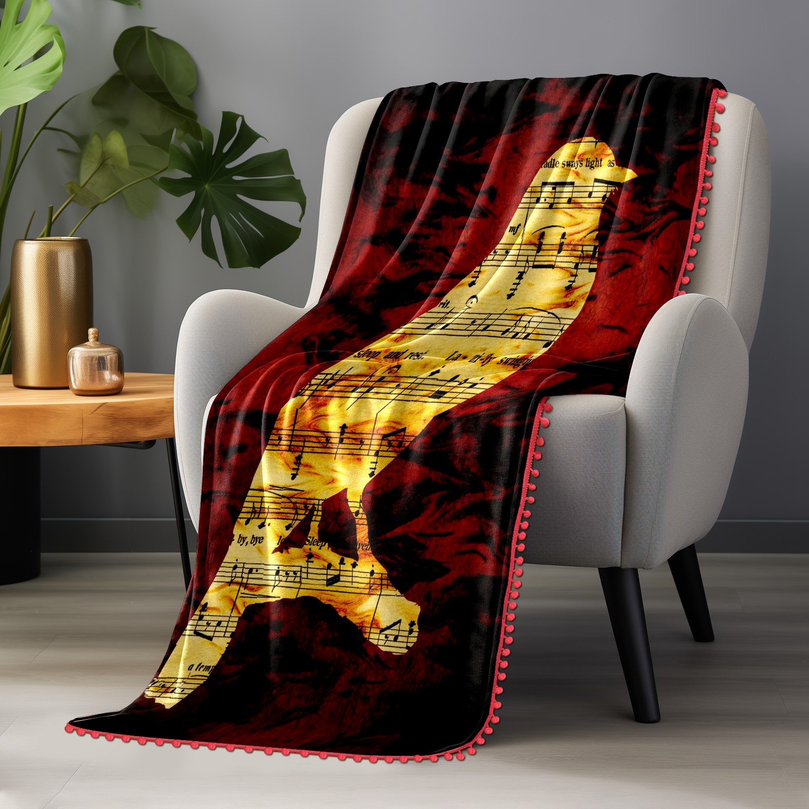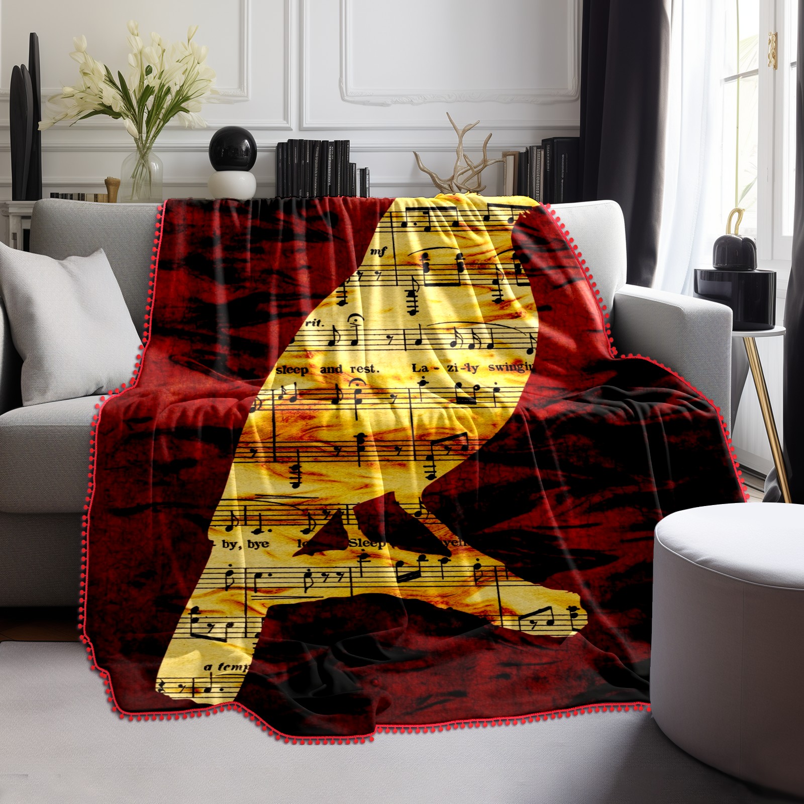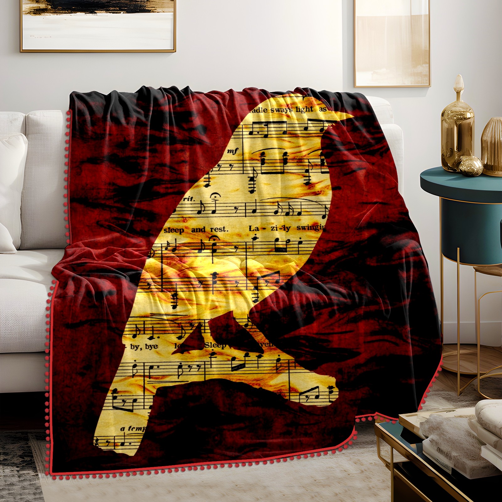 流苏毛毯 Bird Musical Notes Sheet