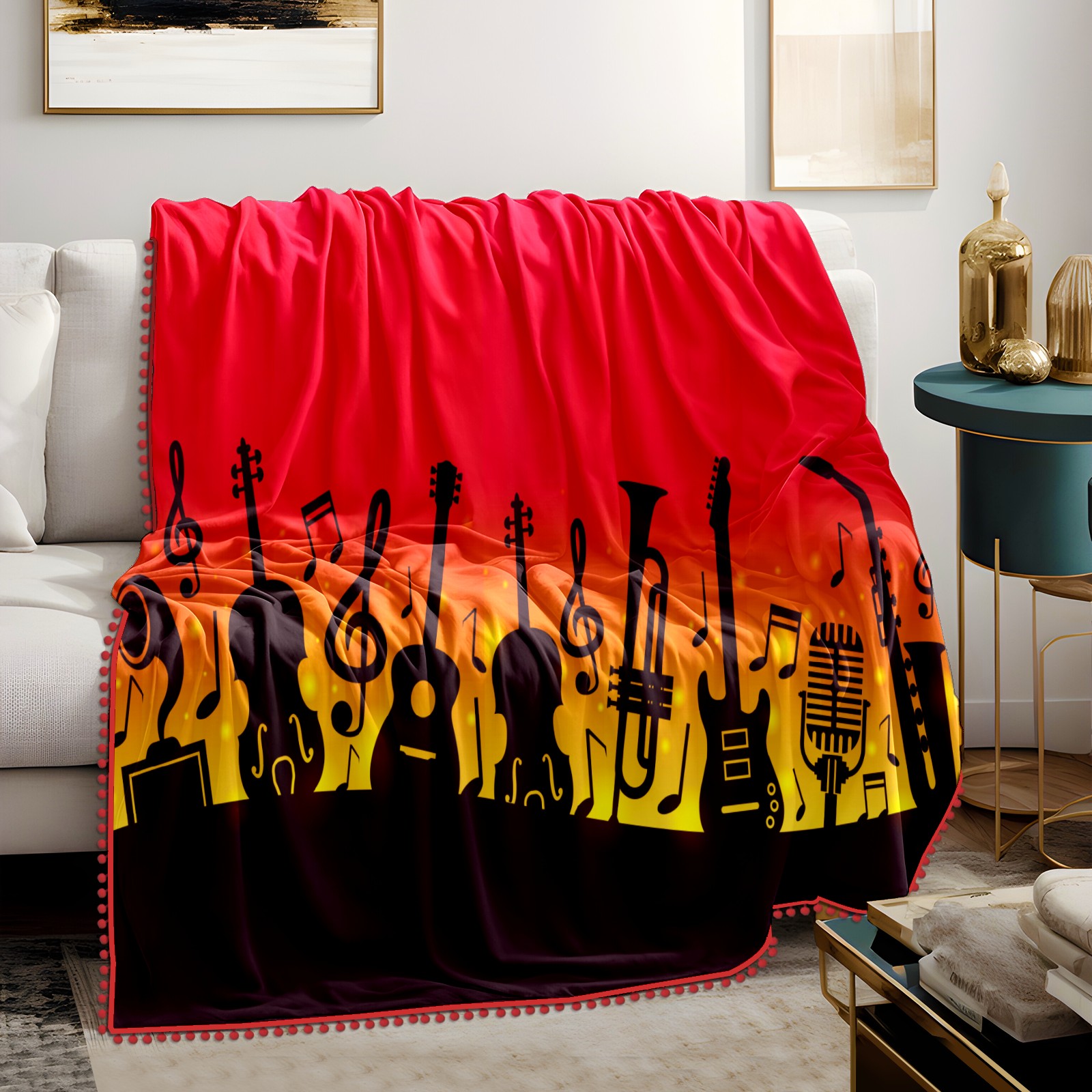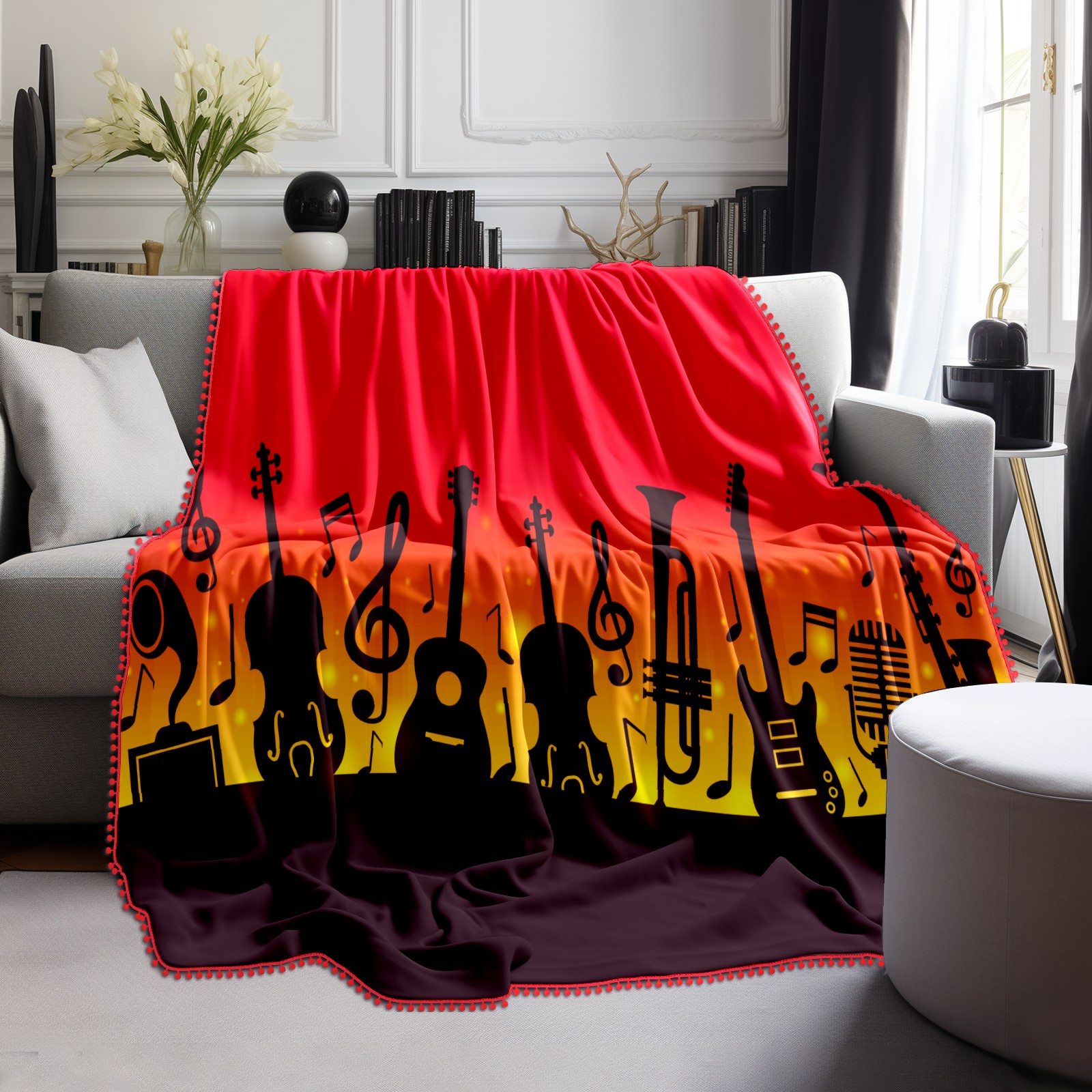 流苏毛毯 Music Festival Musical Notes Saxophone Microphone Violin