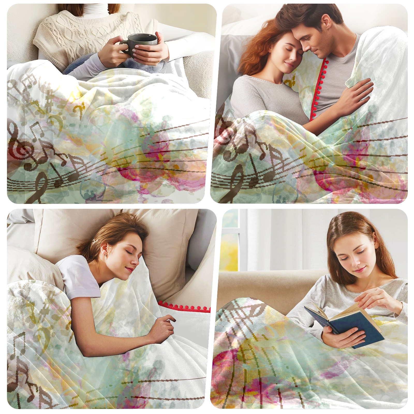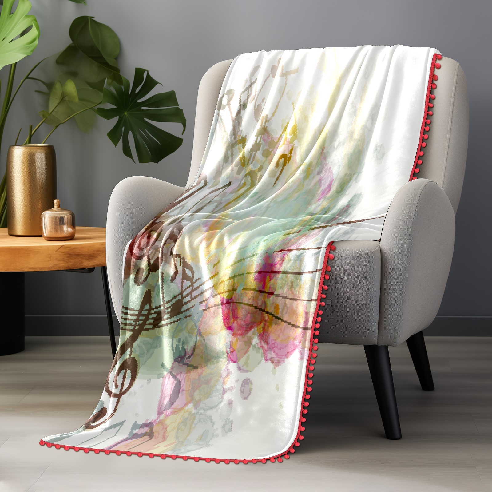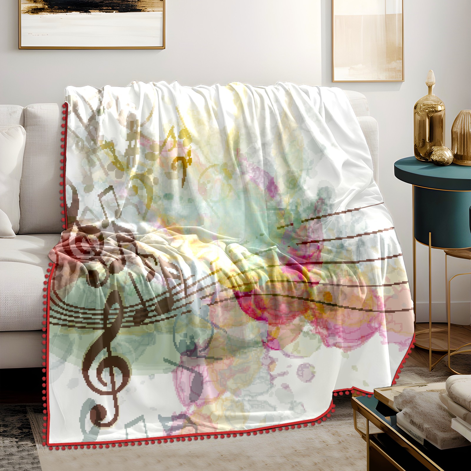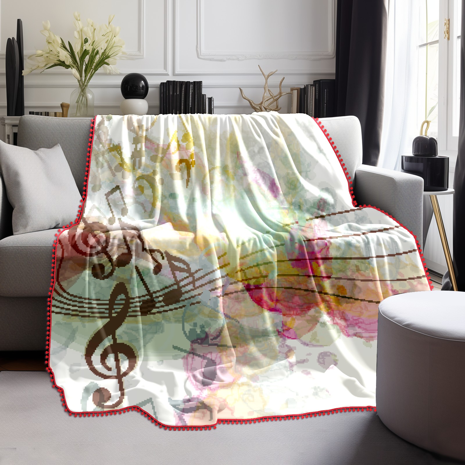 流苏毛毯 Musical Notes Flowers