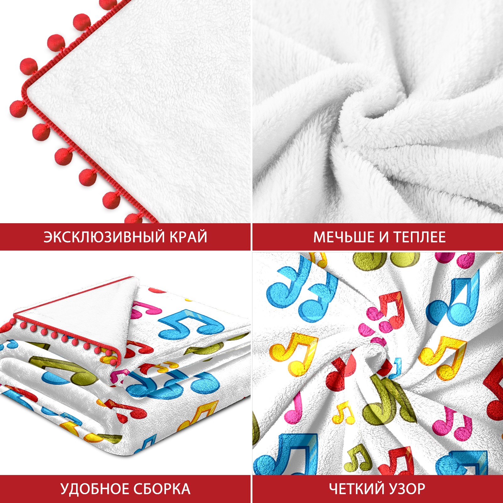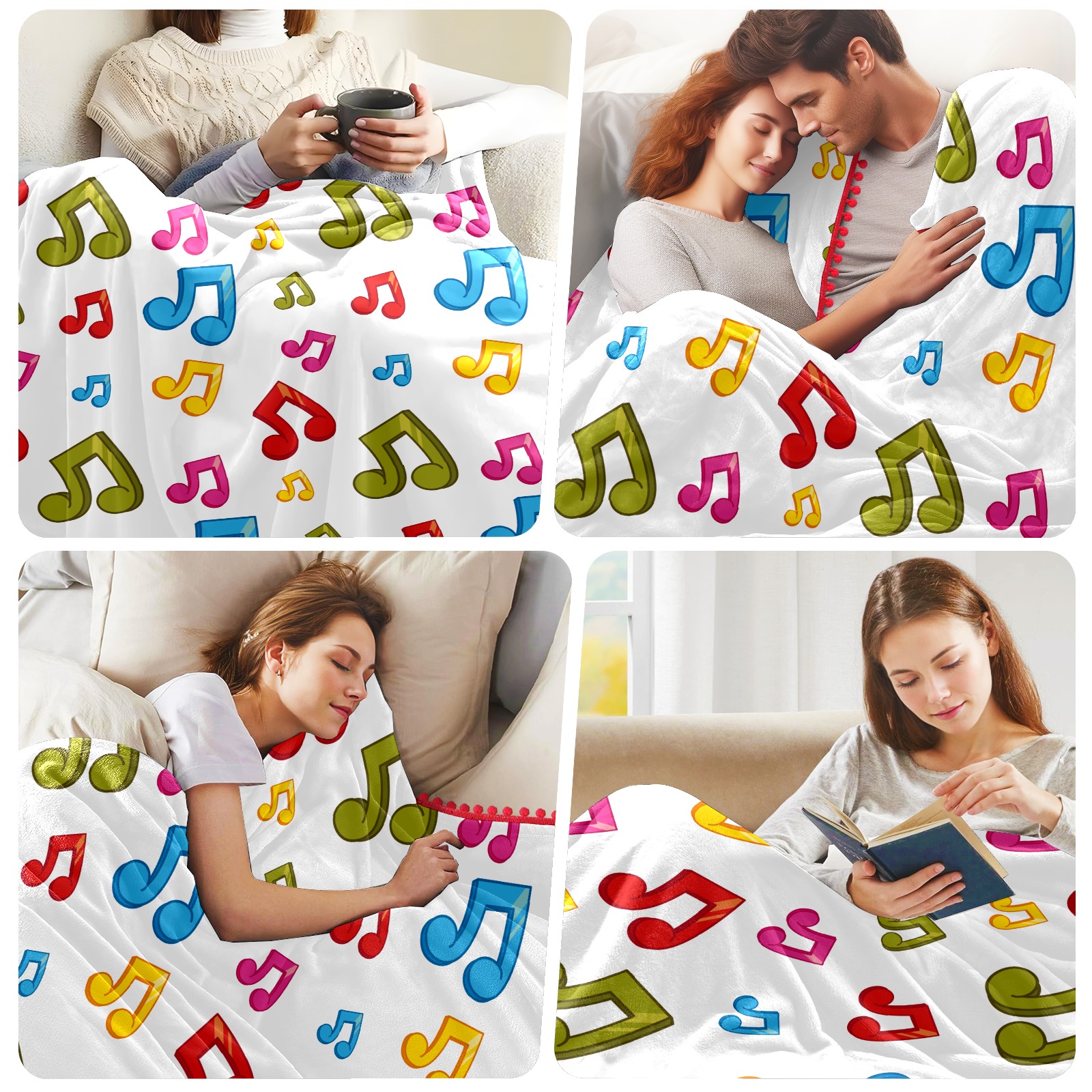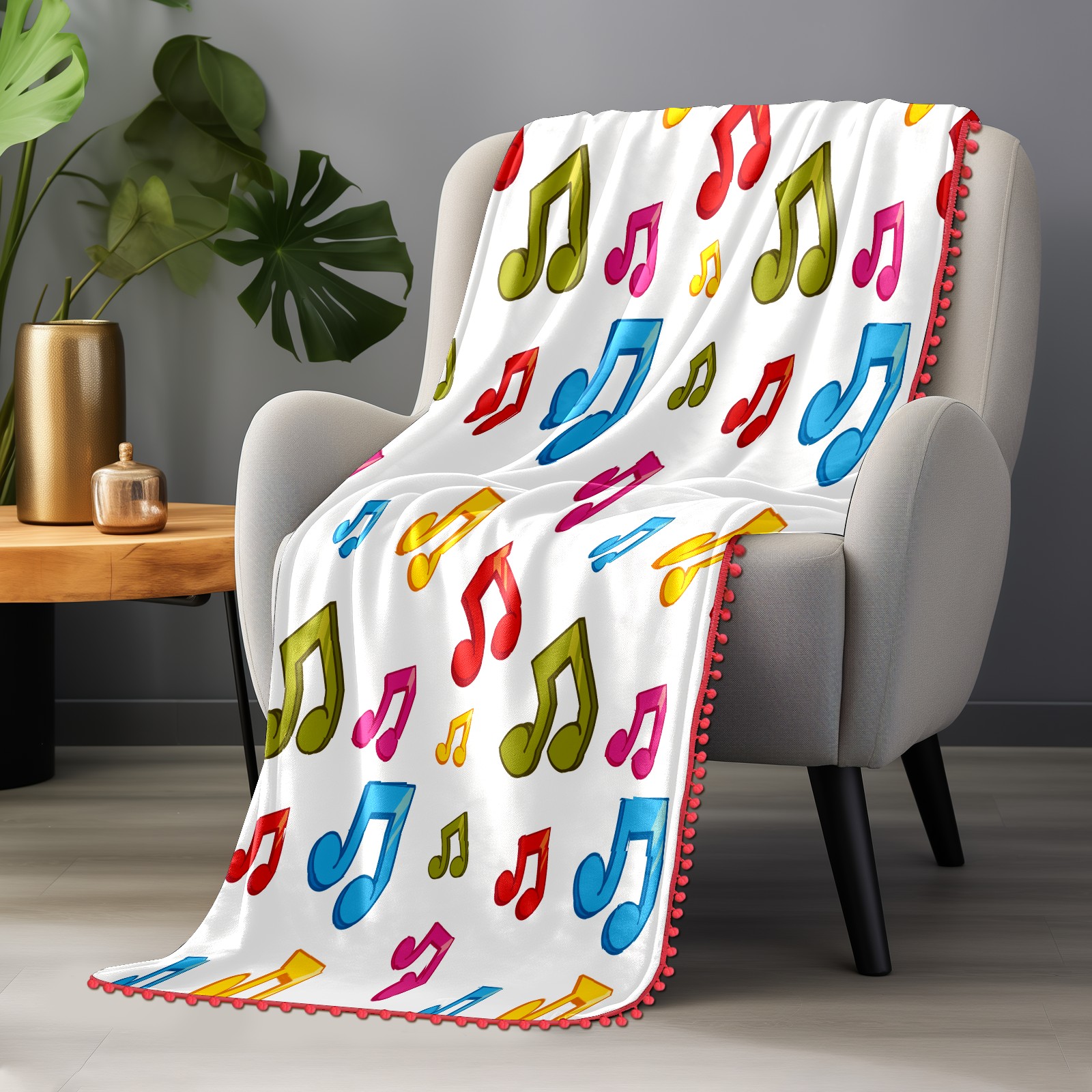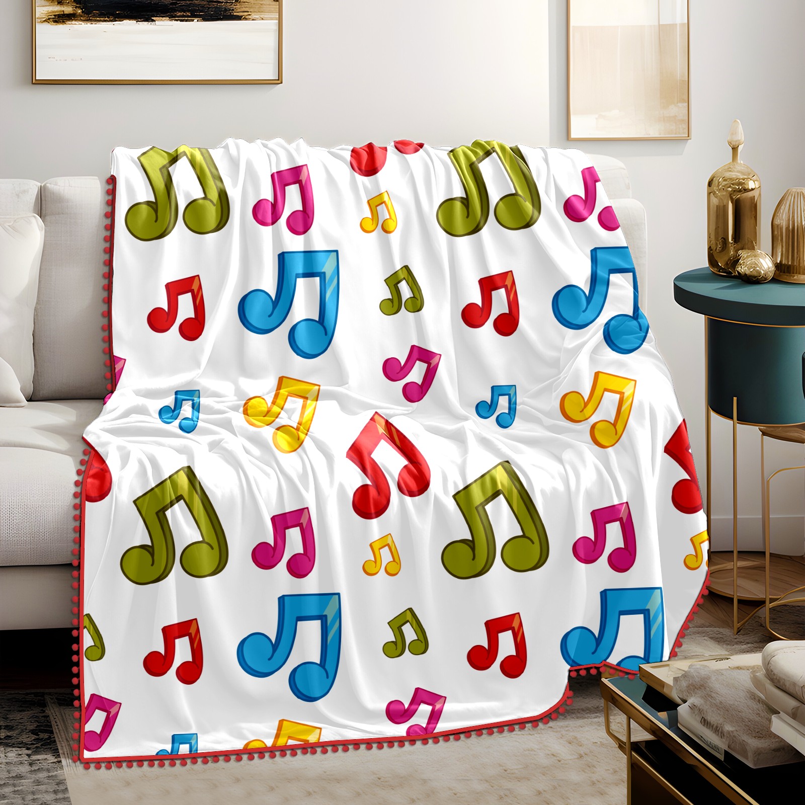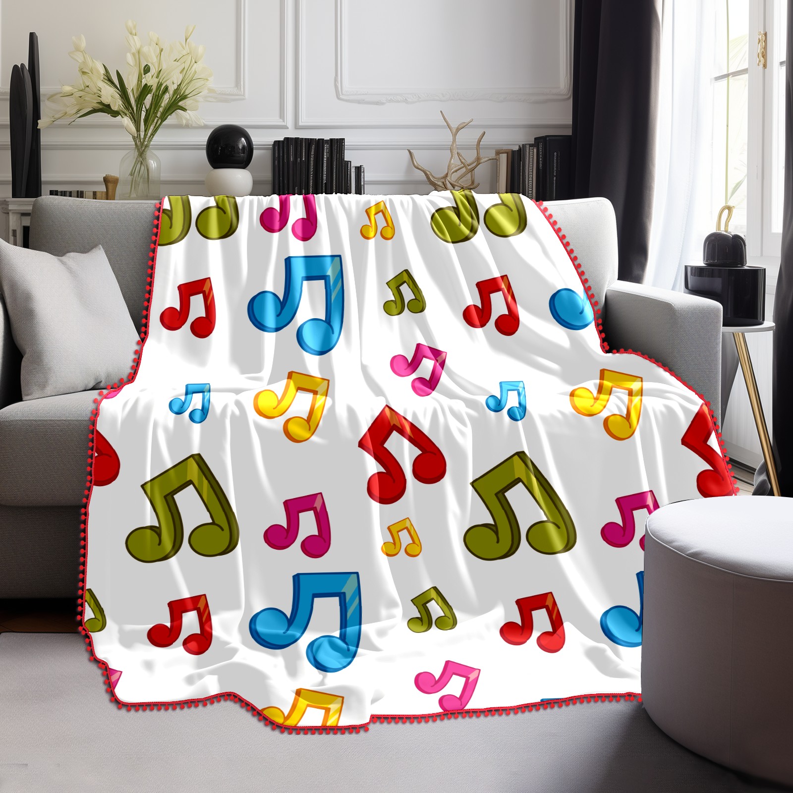 流苏毛毯 Colorful Music Notes Theme