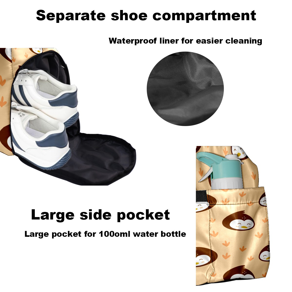• Превосходные характеристики и материалы: Доступен в нескольких размерах: 22 см × 48 см × 35 см / 8,7 дюймов × 18,9 дюймов × 13,8 дюймов. Изготовлен из высококачественной саржевой ткани, легкий, прочный и долговечный. Научно организованное хранение: Просторное основное отделение вмещает одежду и обувь; удобный карман для хранения мелких предметов, таких как наушники и телефоны; вентилируемое отделение для обуви (подходит для обуви 10-го размера) + водонепроницаемый мешок для разделения сухих и влажных вещей и предотвращения запаха. Универсальность: Может использоваться как спортивная сумка, дорожная сумка или повседневная сумка, удовлетворяя различные потребности, такие как игра в пиклбол, поездки на выходные и ночевки в больнице. Идеальная интеграция для фитнеса и поездок на работу: Разработан для активного образа жизни, подходит для всего, от занятий на велотренажерах и силовых тренировок до послешкольных обедов и коротких деловых поездок. Сочетание функциональности и эстетики: оптимизированное расположение карманов уравновешивает практичность и стиль, удовлетворяя как функциональные, так и эстетические потребности.