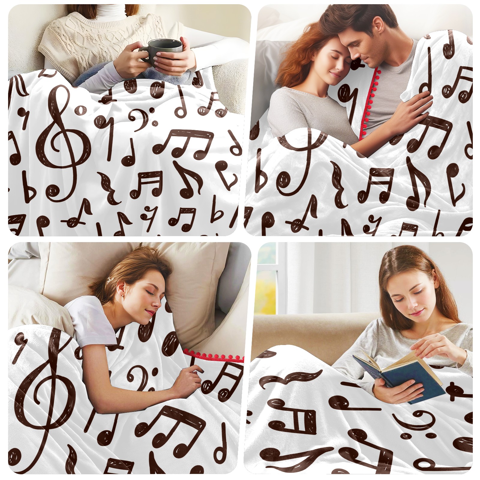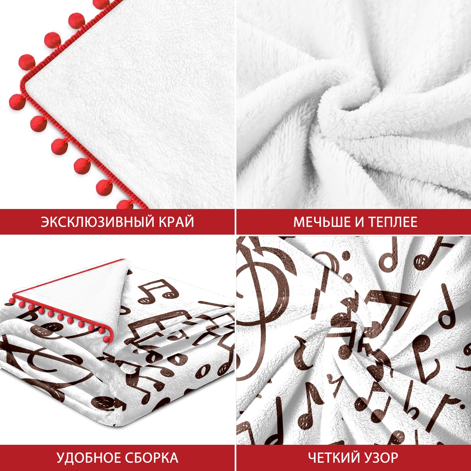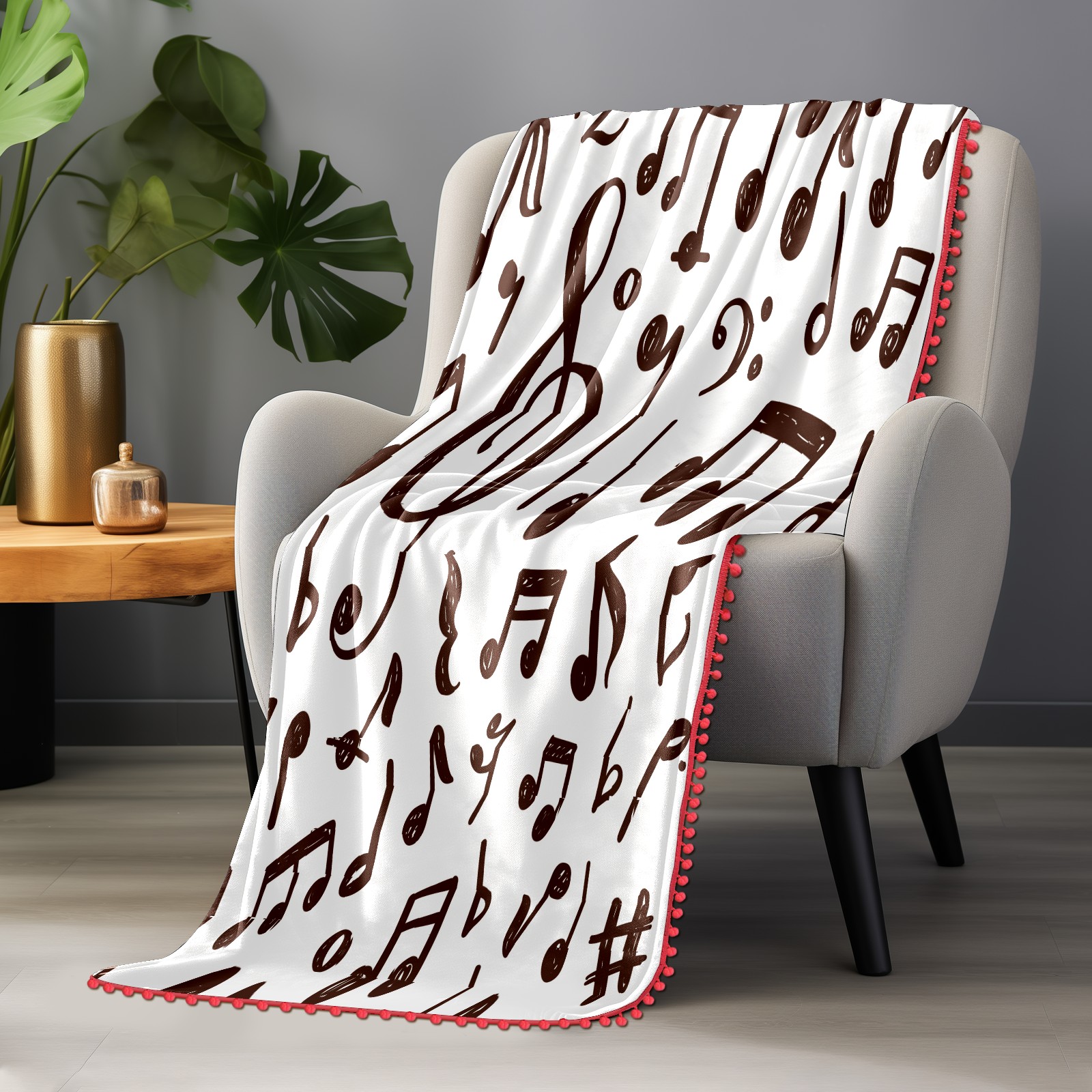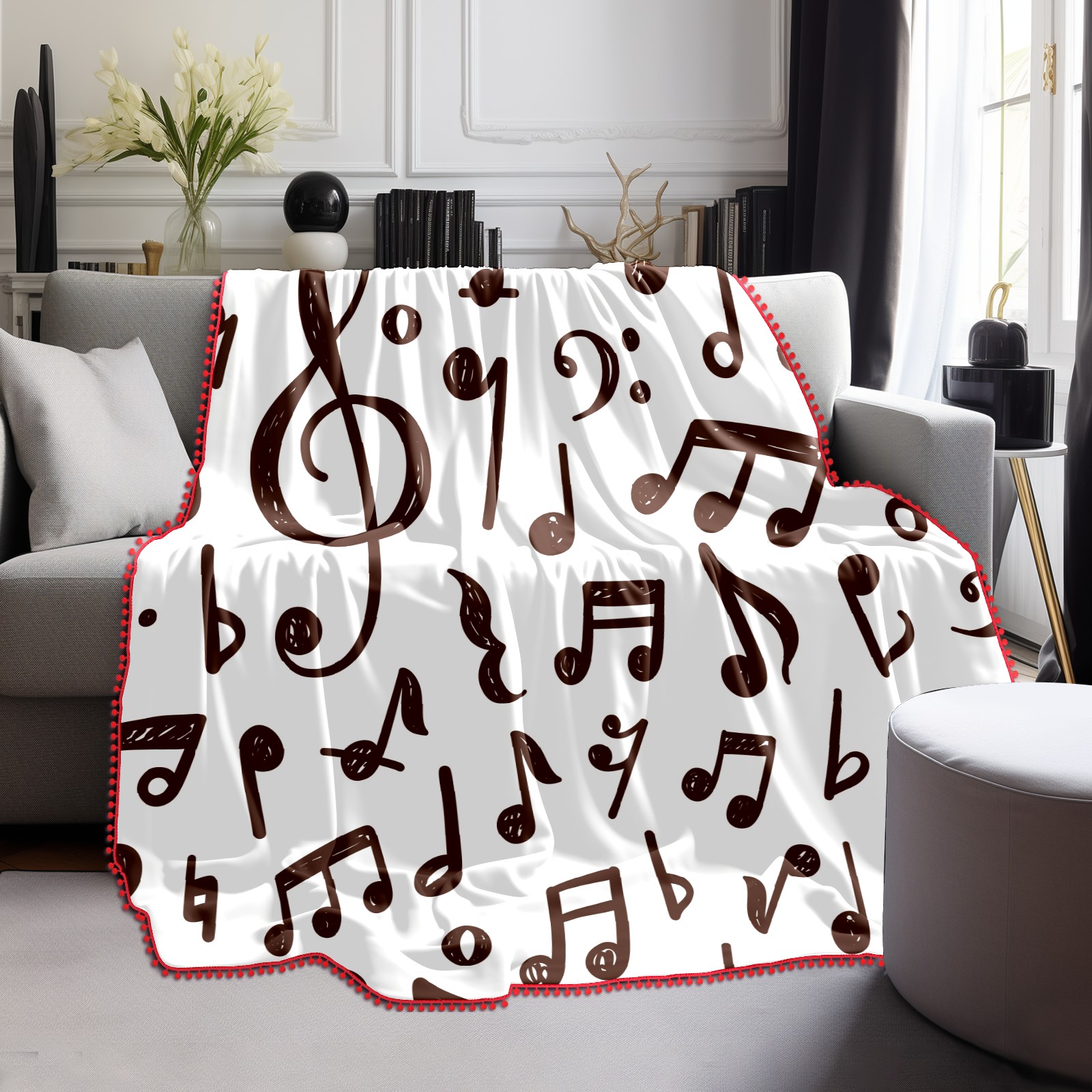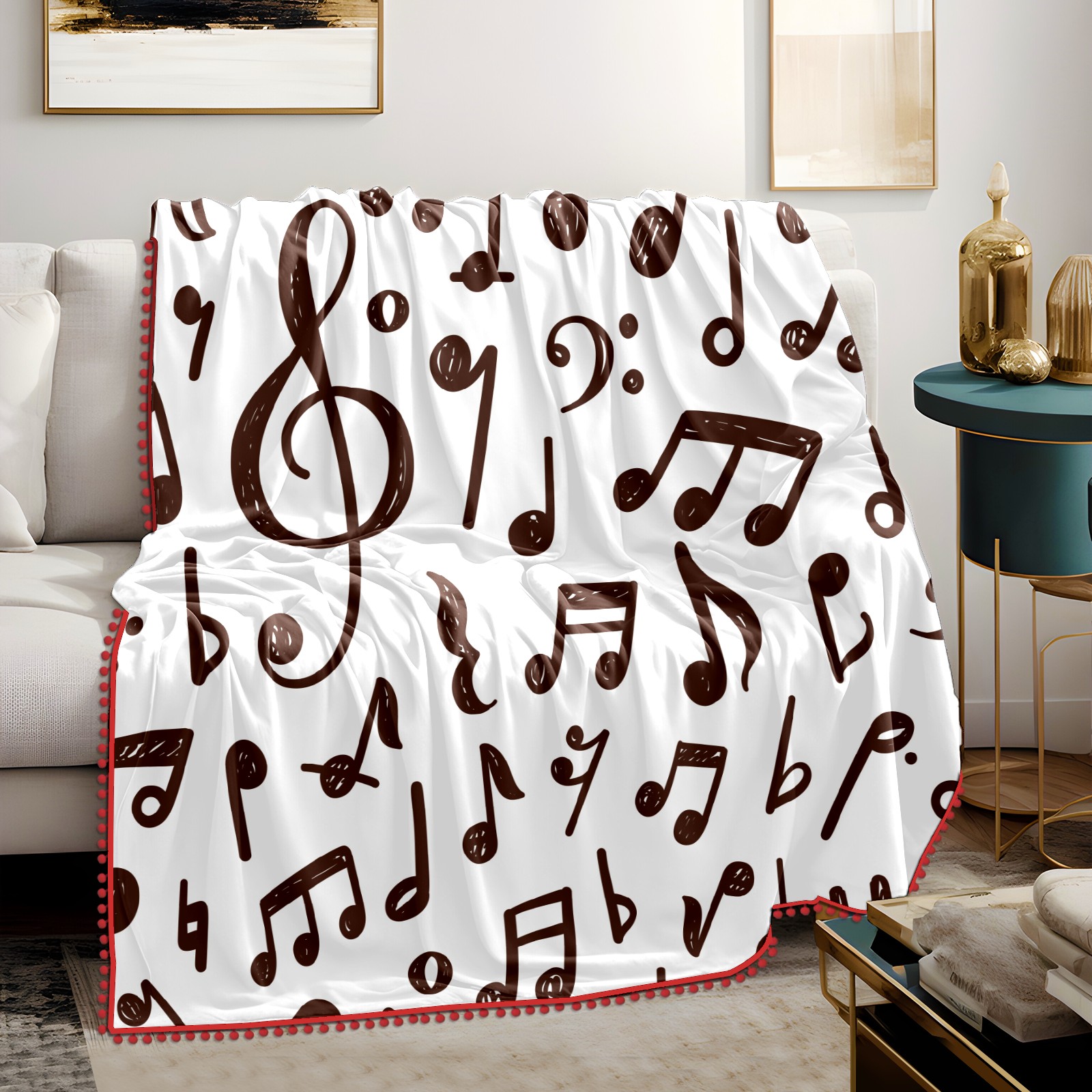 流苏毛毯 Musical Notes Pattern