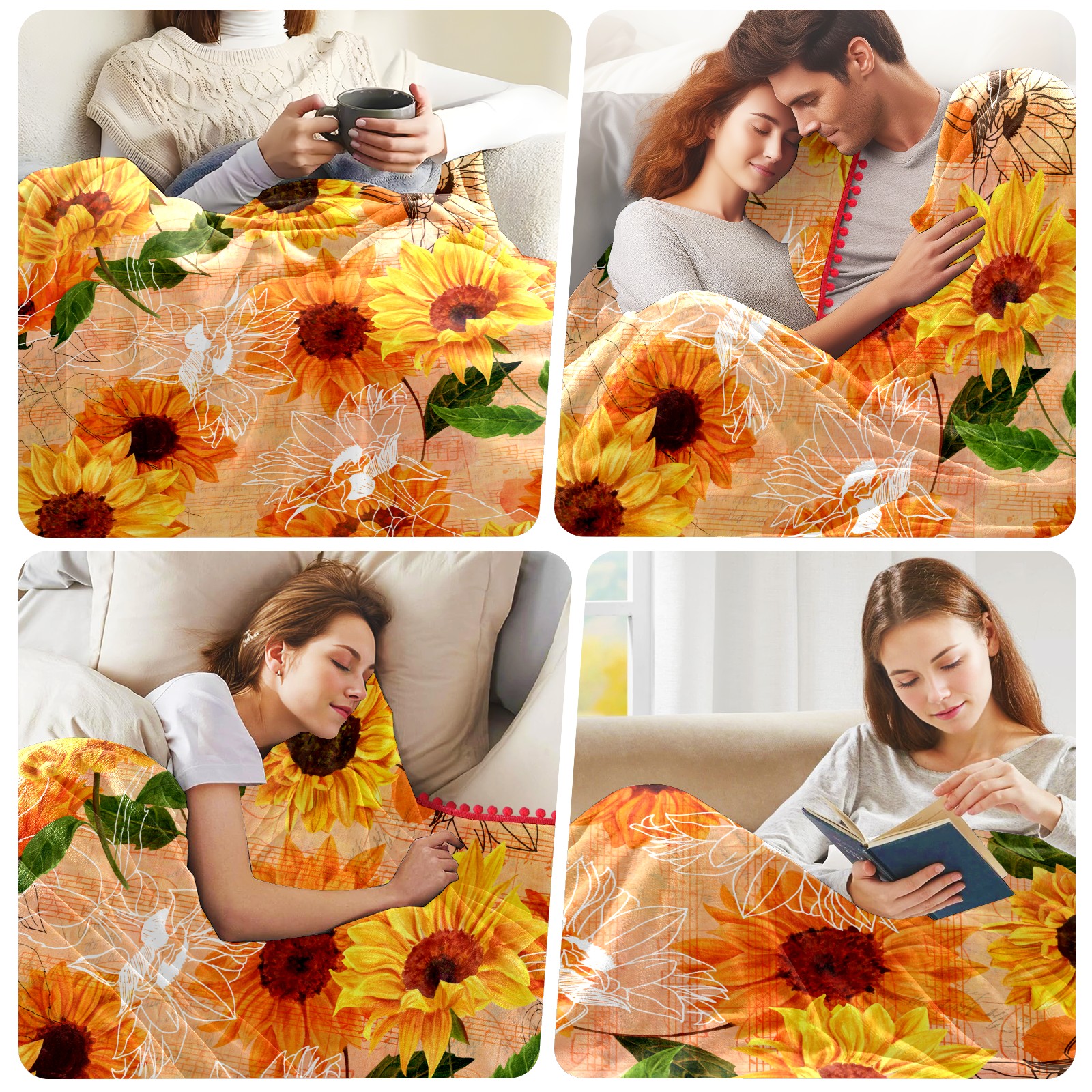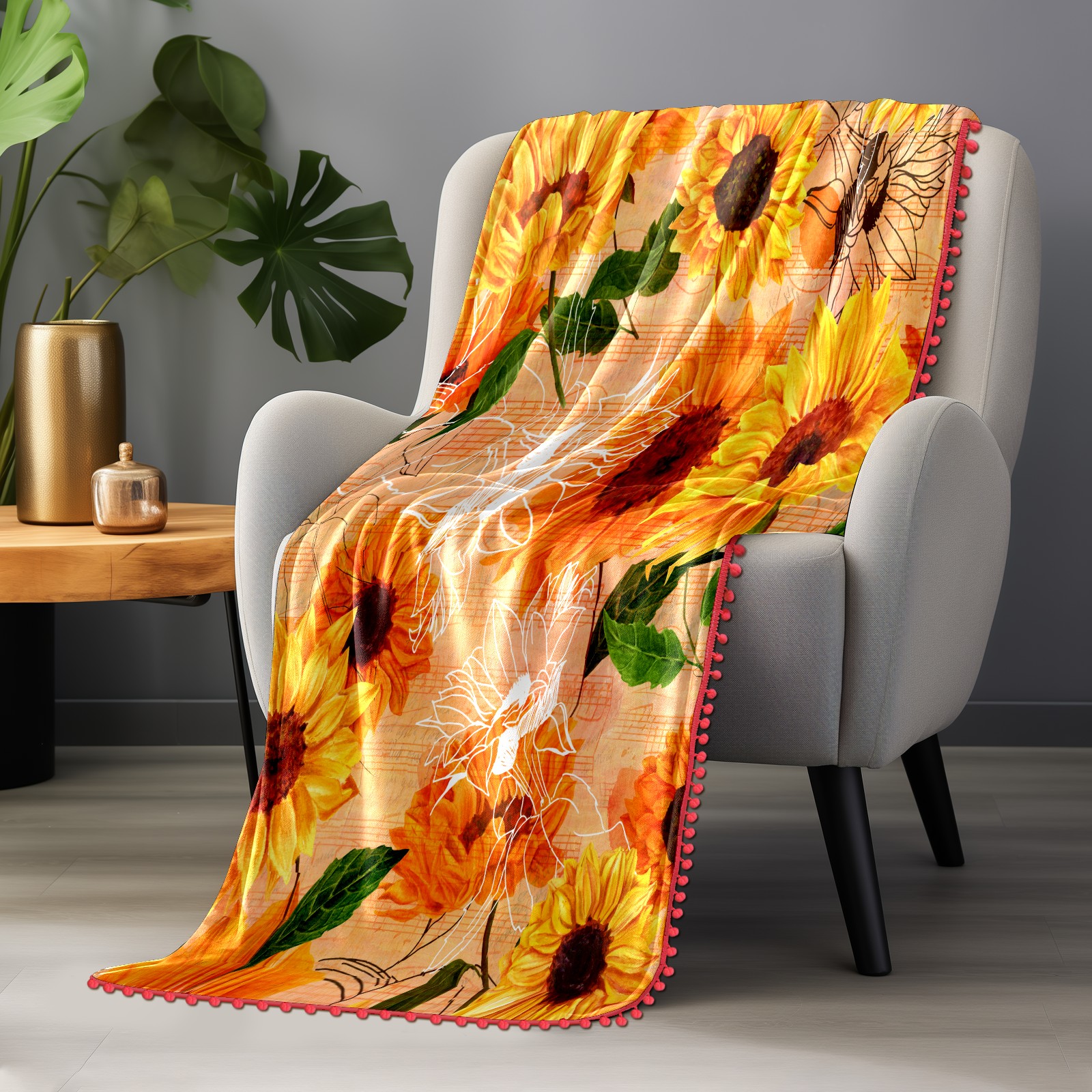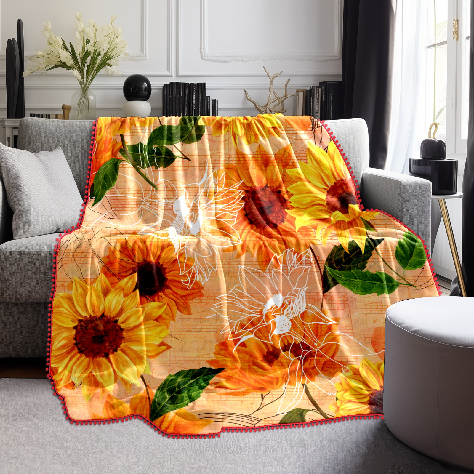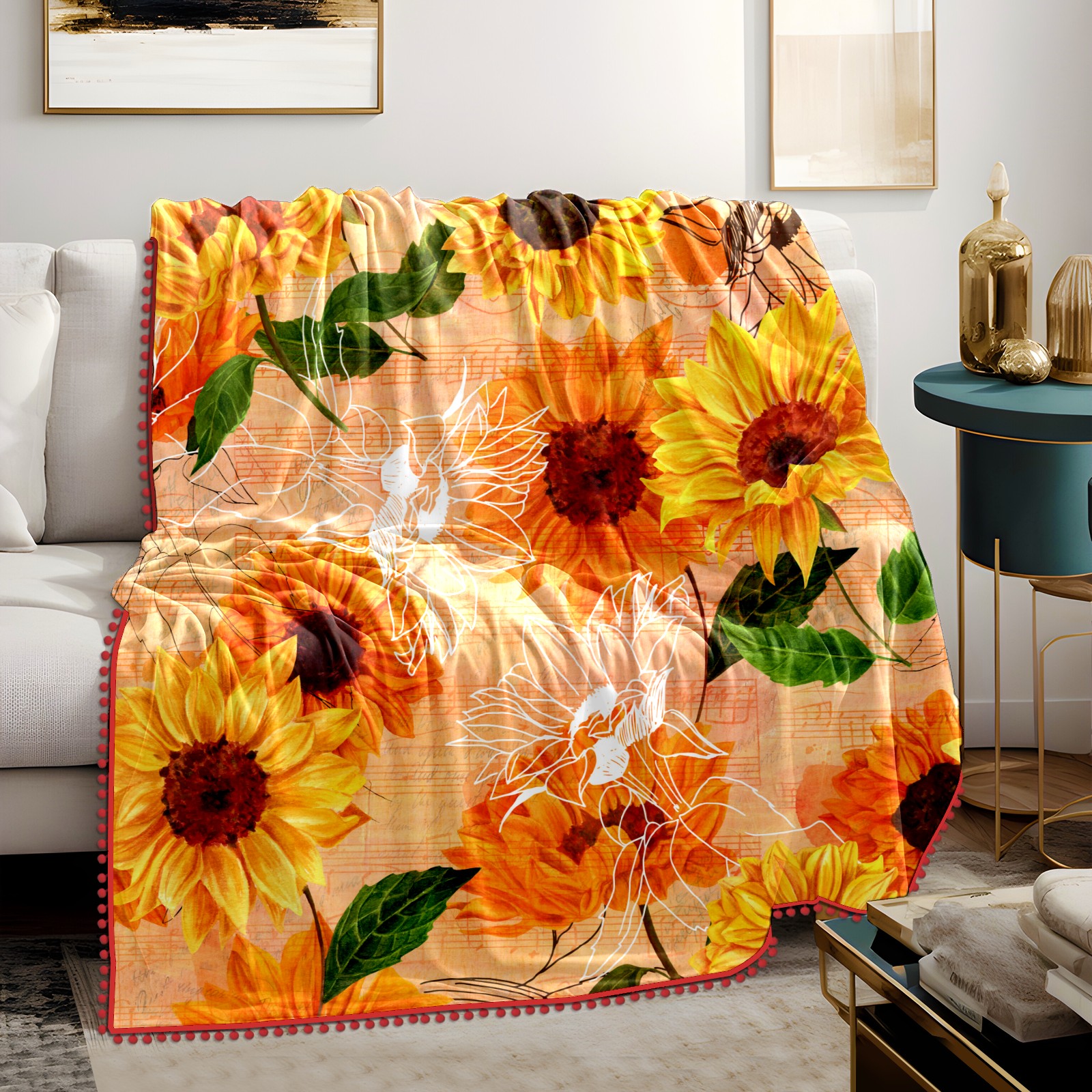 流苏毛毯 Retro Sunflower Blooming Music Notes