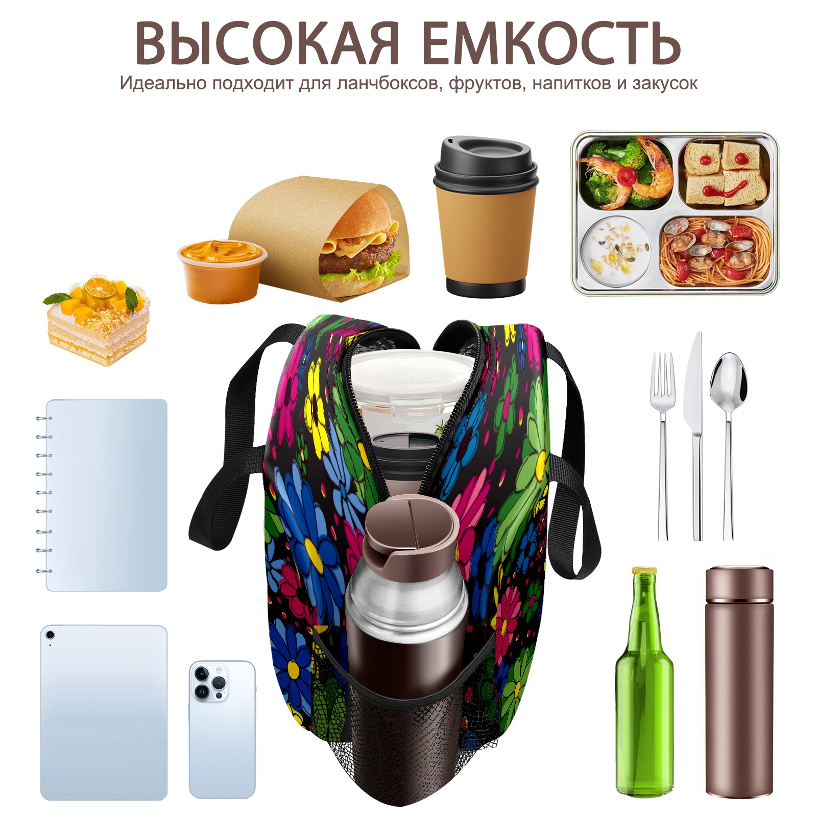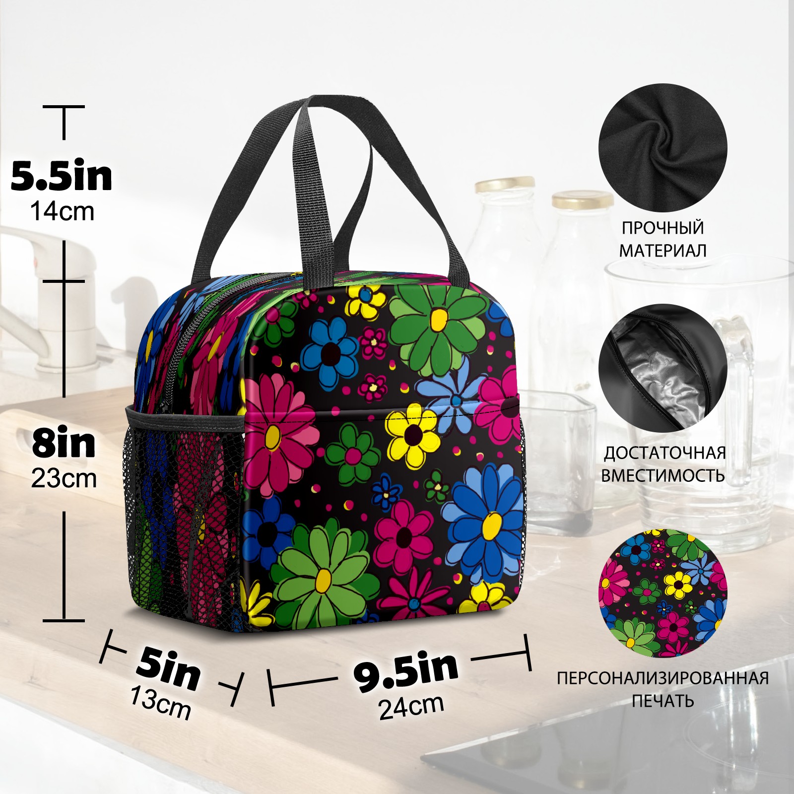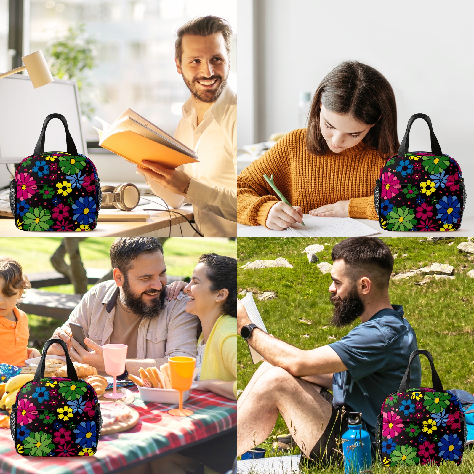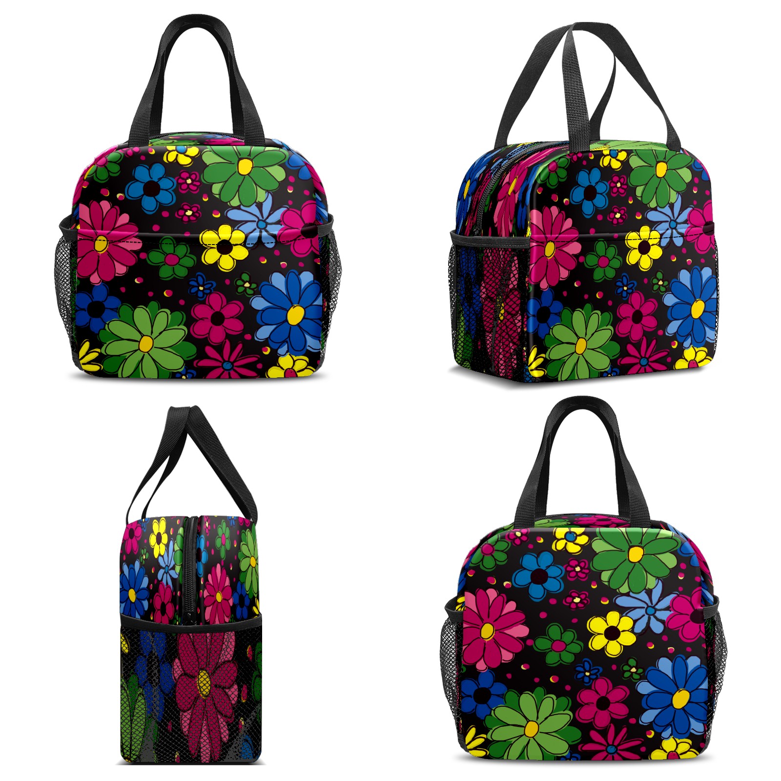 小餐包 Yellow Blue Green Flowers Black