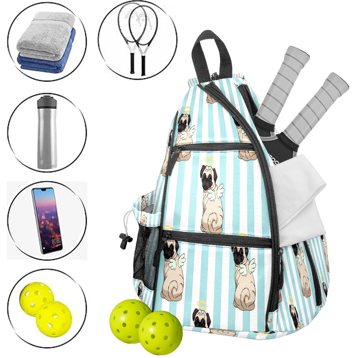 Материал: Прочная нейлоновая ткань + усиленные тканые лямки + дышащий сетчатый карман Размеры: 15×35×45 см / 6×13,8×17,7 дюймов Большая вместимость с множеством отделений – в одной сумке поместится все ваше снаряжение для пикбола: ракетки, мячи, защитная экипировка и бутылка с водой! Разработана для комфортной переноски – утолщенная мягкая спинка в сочетании с регулируемыми дышащими сетчатыми плечевыми ремнями эффективно распределяет вес, снимая боль в плечах и спине, а также мышечное напряжение. Ткань сумки гладкая и приятная на ощупь, деликатная и мягкая, что делает ежедневное использование более комфортным. Гибкие варианты переноски: плечевые лямки имеют съемную молнию, позволяющую свободно регулировать стиль ношения. Идеально подходит в качестве портативной сумки через плечо для ежедневных поездок на работу, отдыха на природе и спортивных мероприятий, а также в качестве практичного и продуманного подарка для друзей, семьи и других игроков в пикбол.
