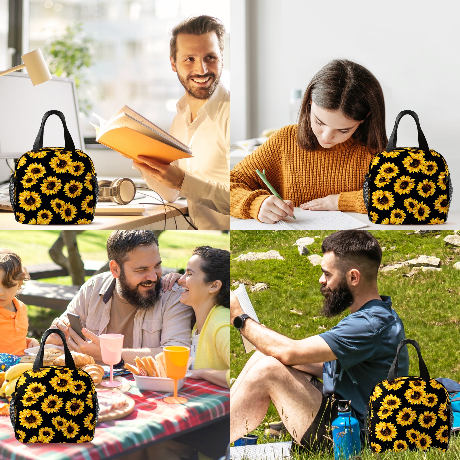 小餐包 Sunflower Flowers Pattern Oil Painting Black Background