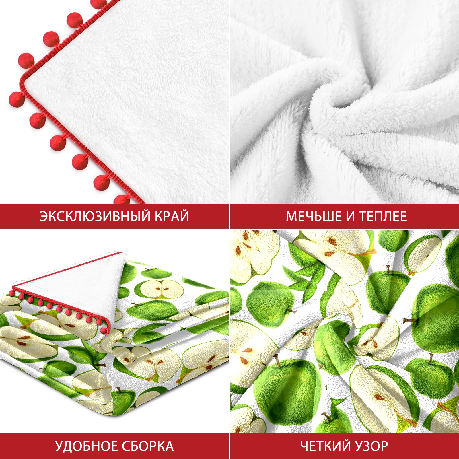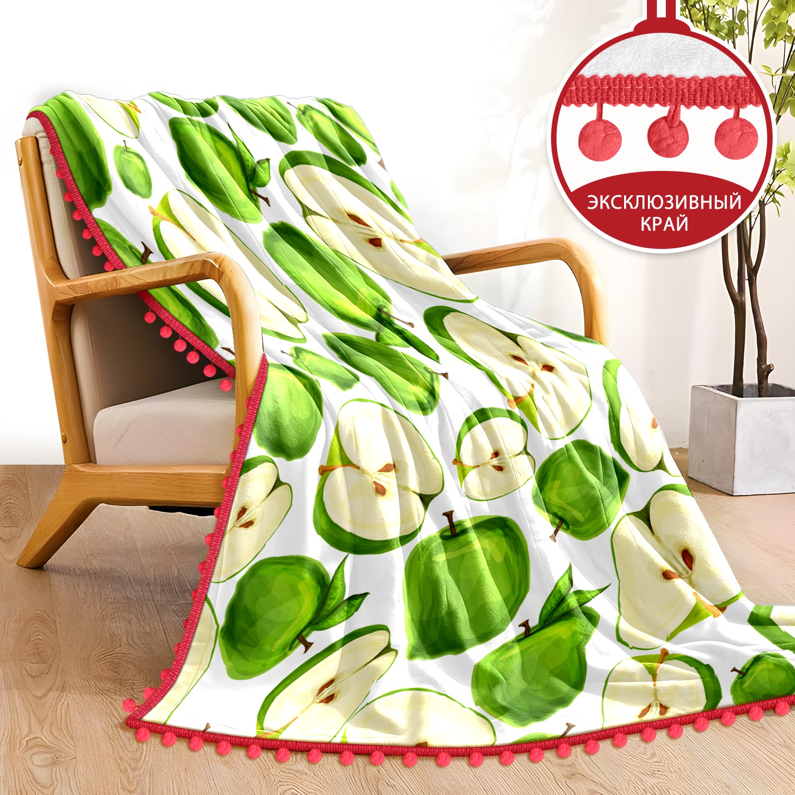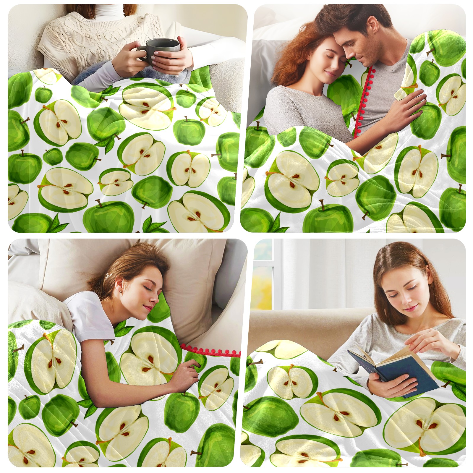 流苏毛毯 Green Apples Fruit Sliced Leaves