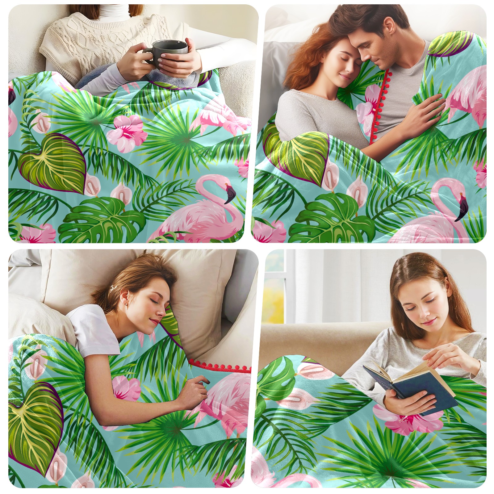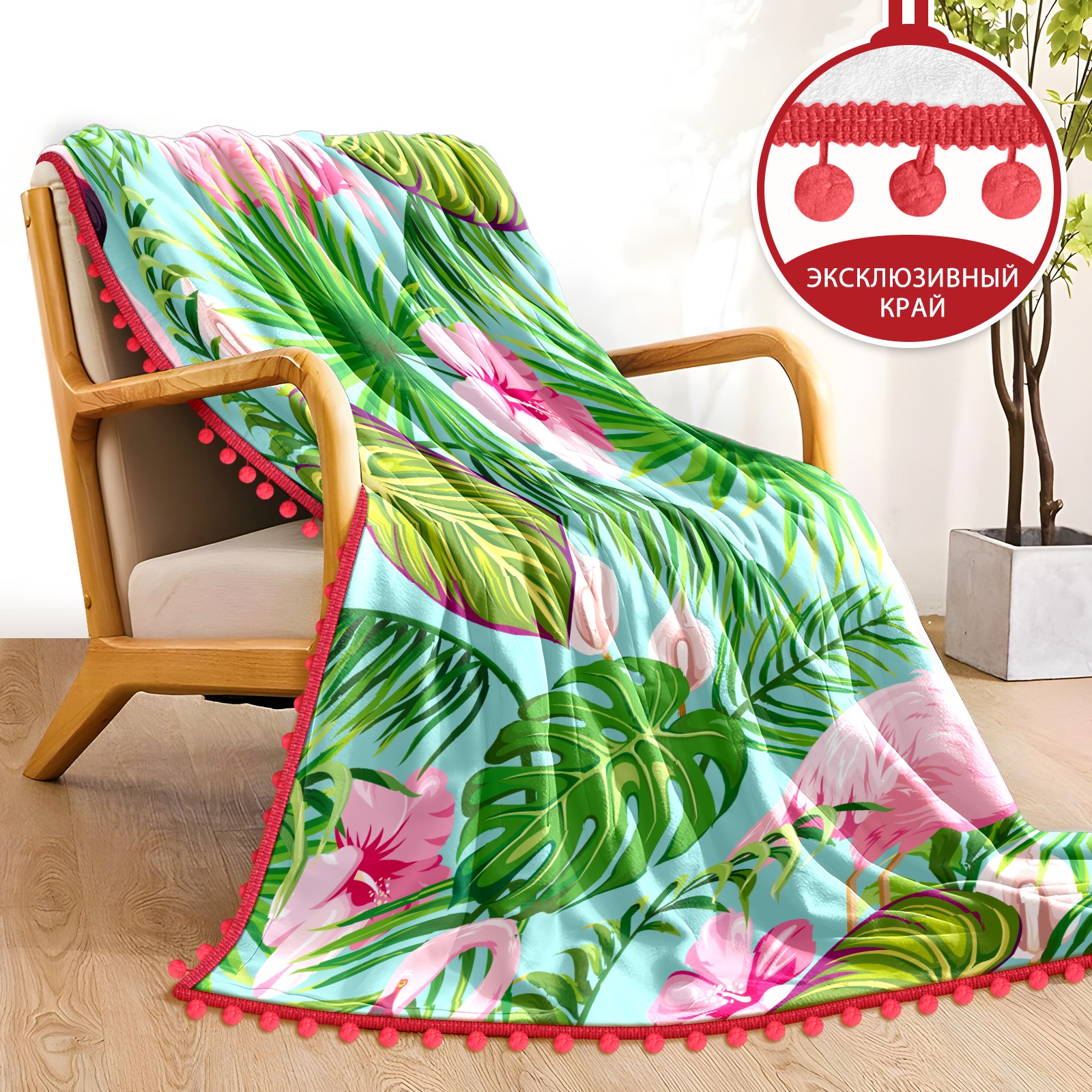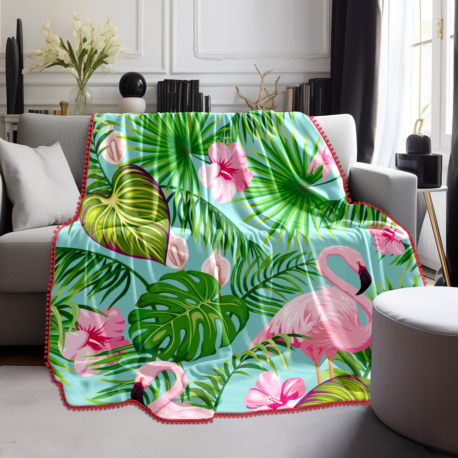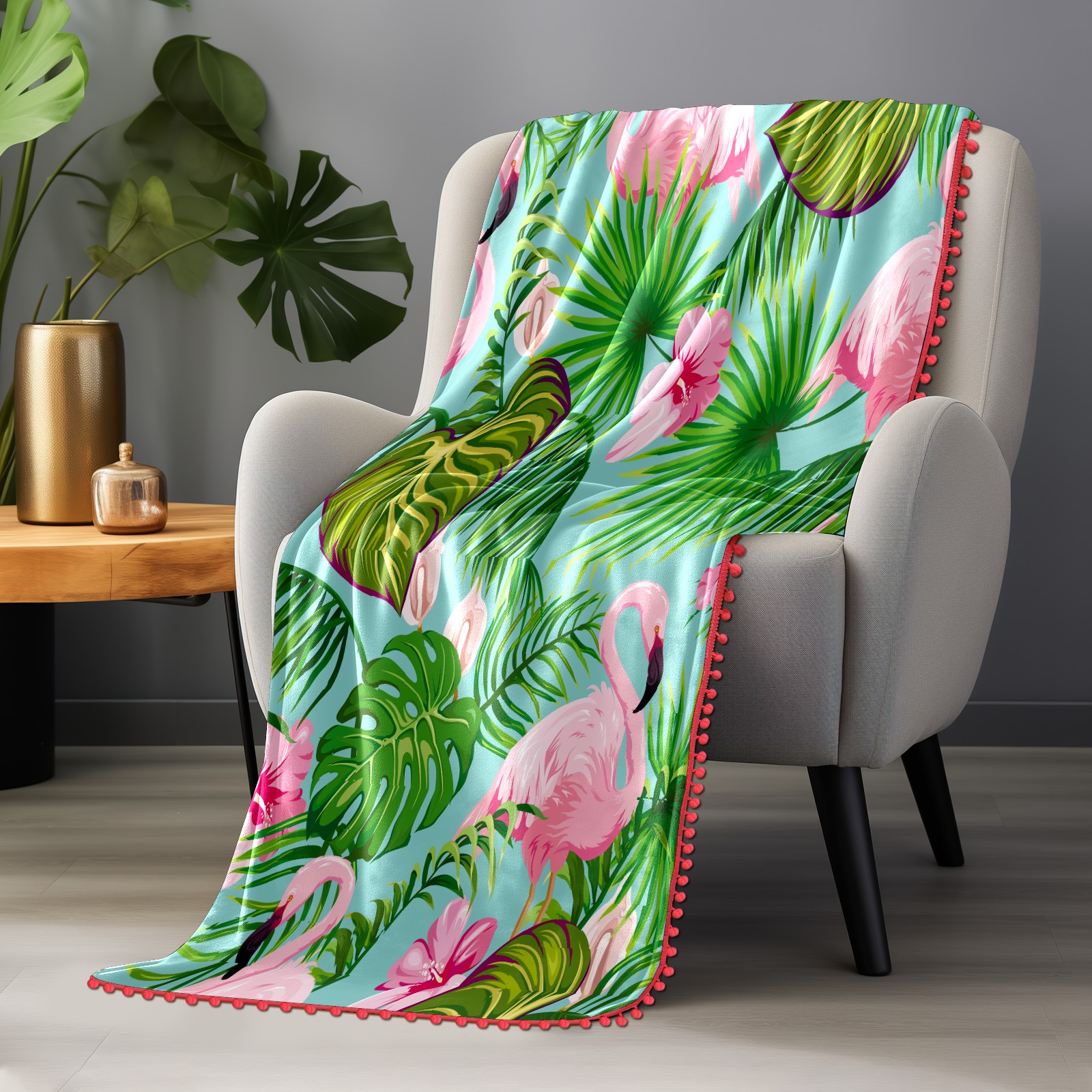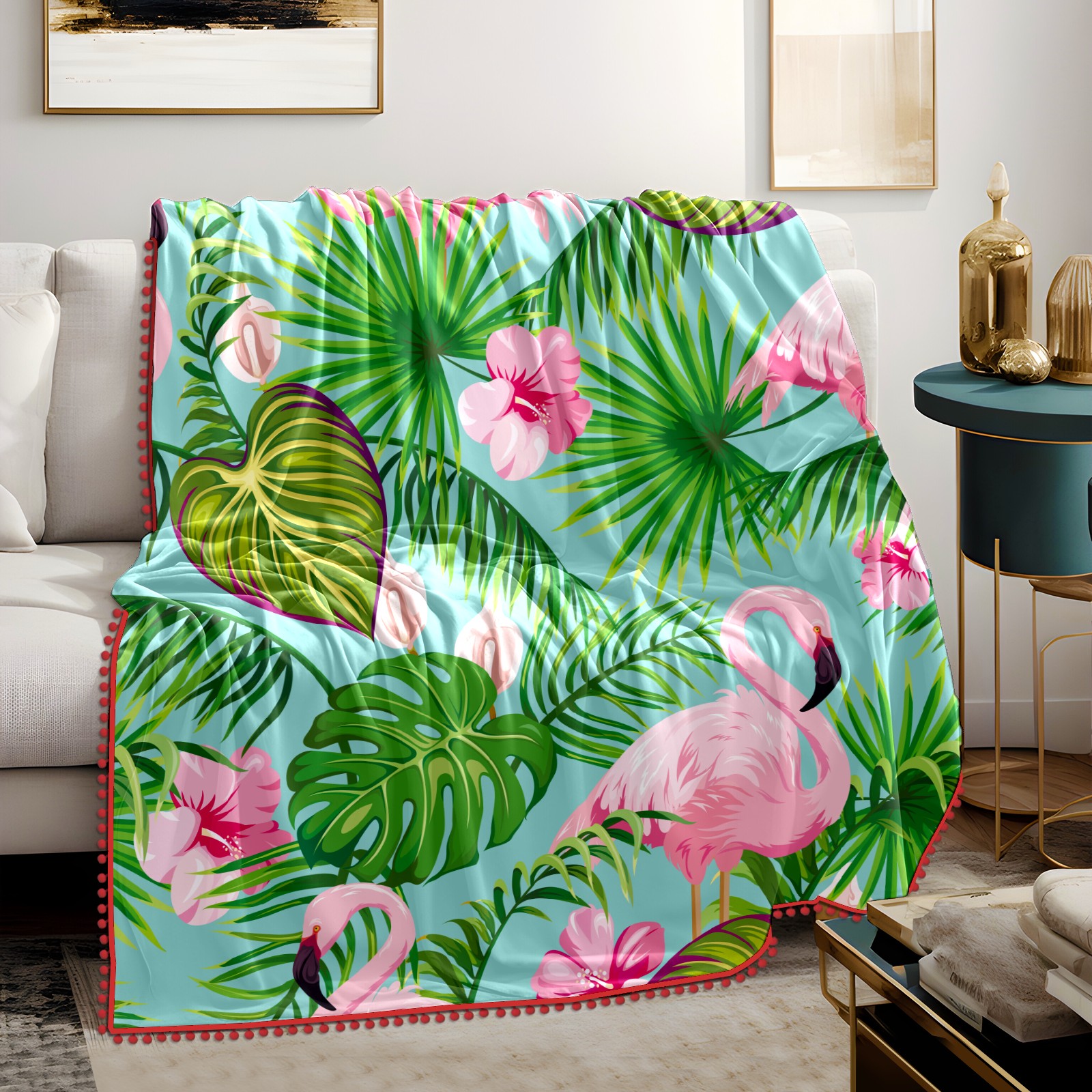 流苏毛毯 Flamingo Green Forest Leaves