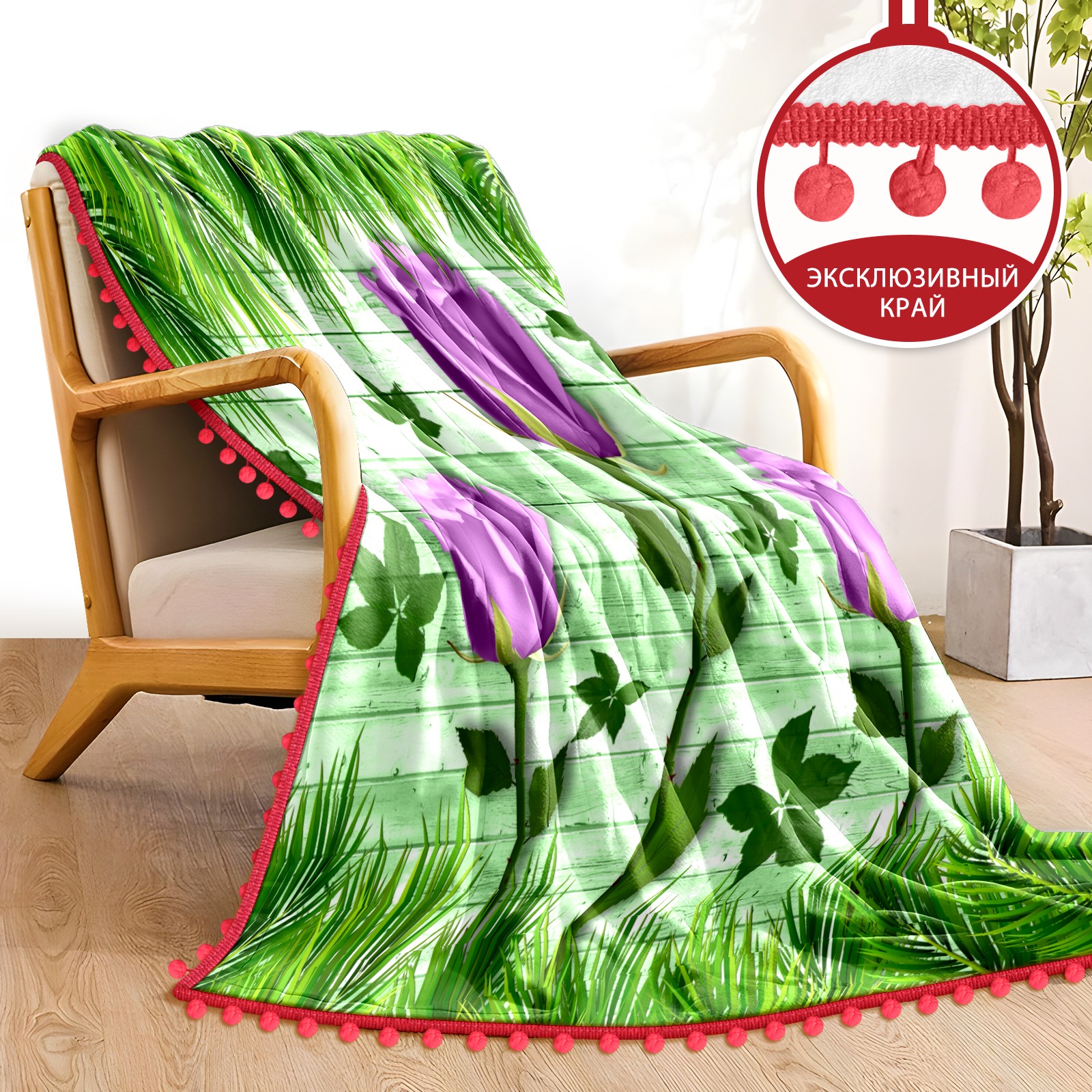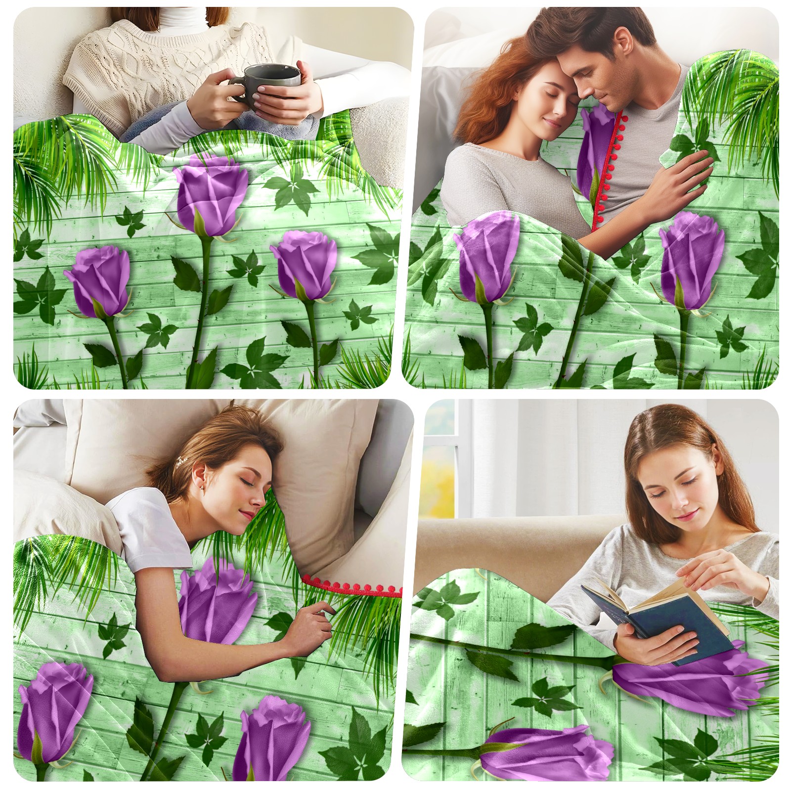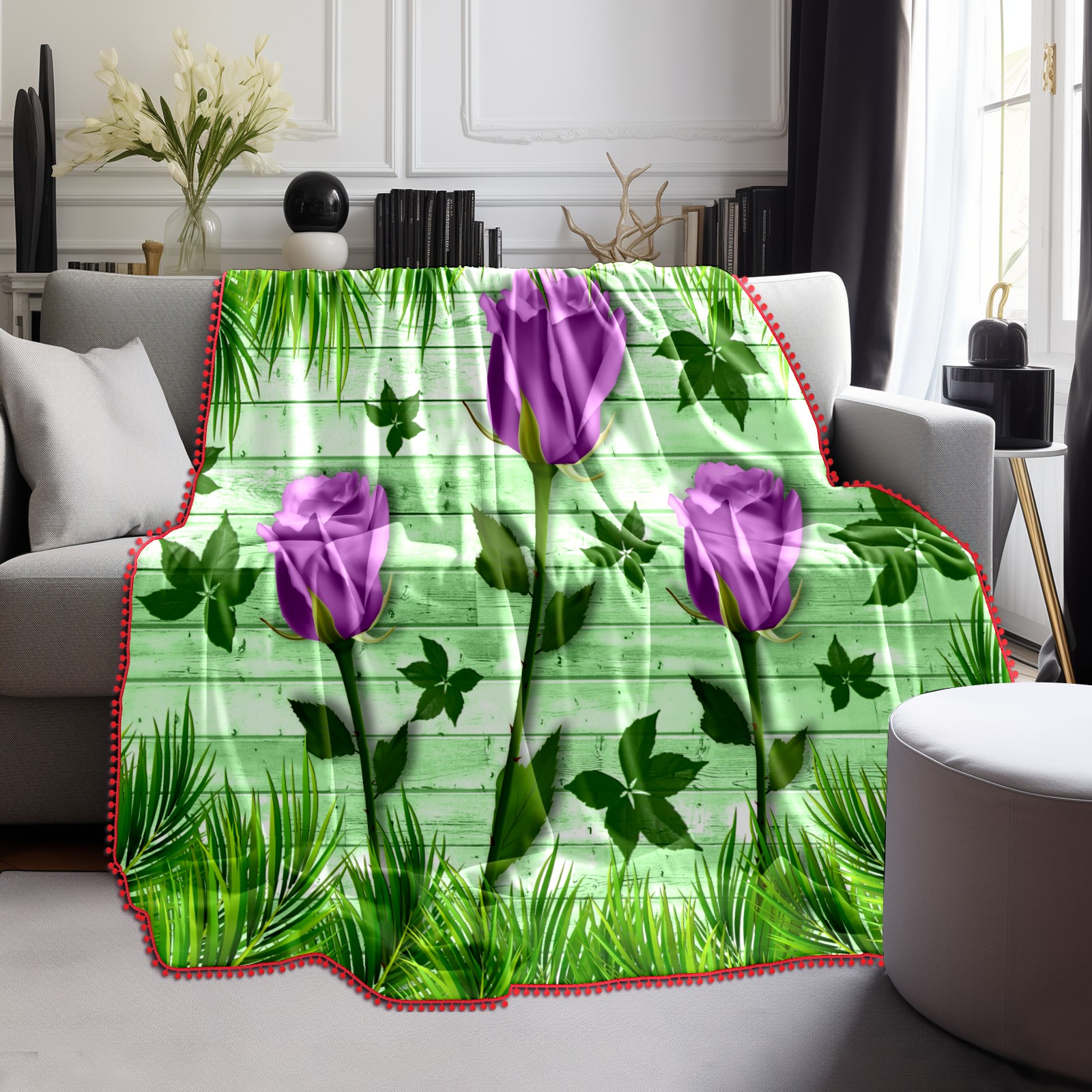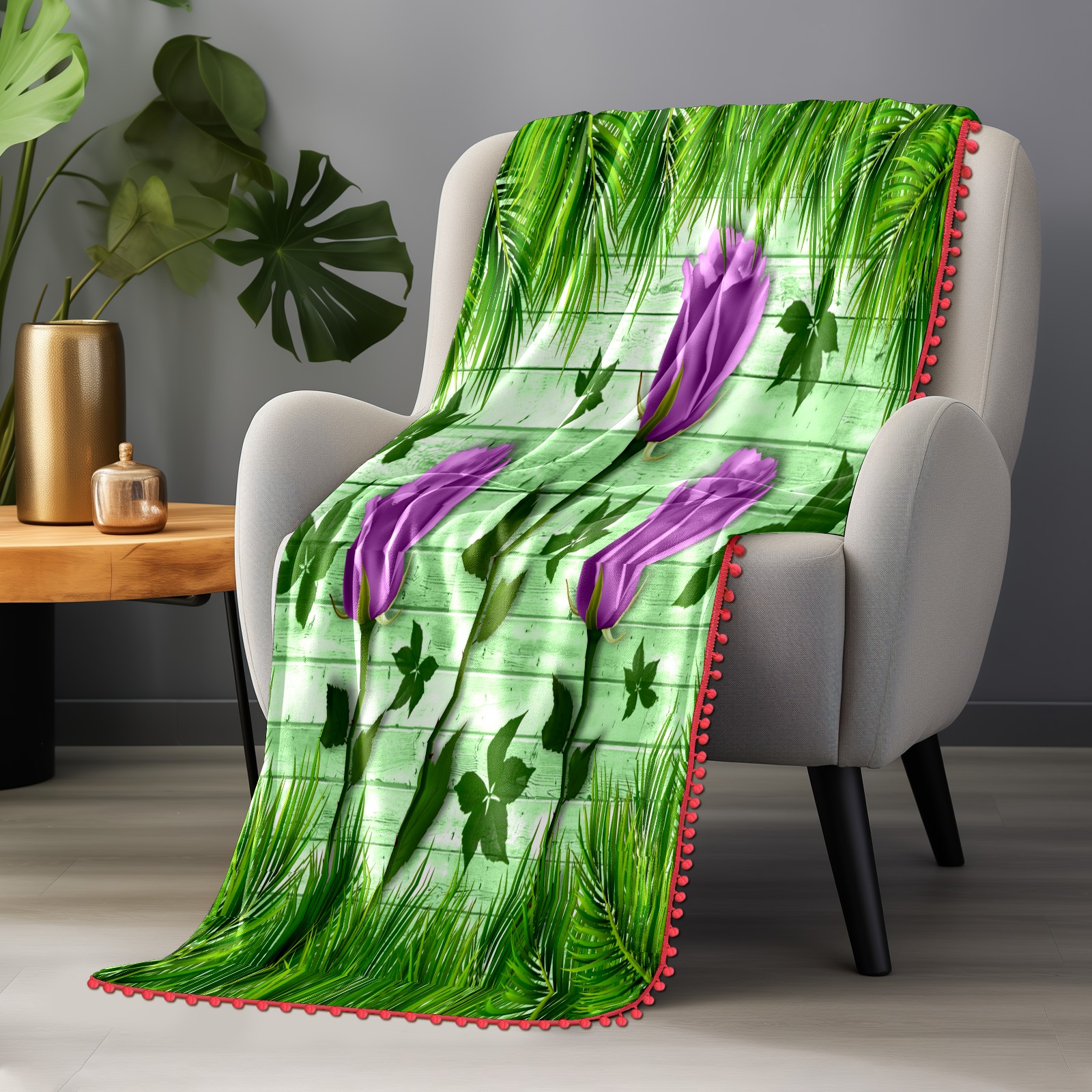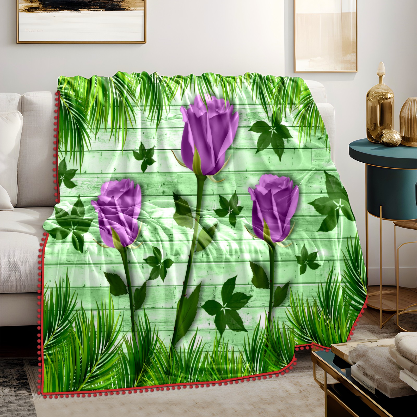 流苏毛毯 Purple Tulip Flower Green Leaves